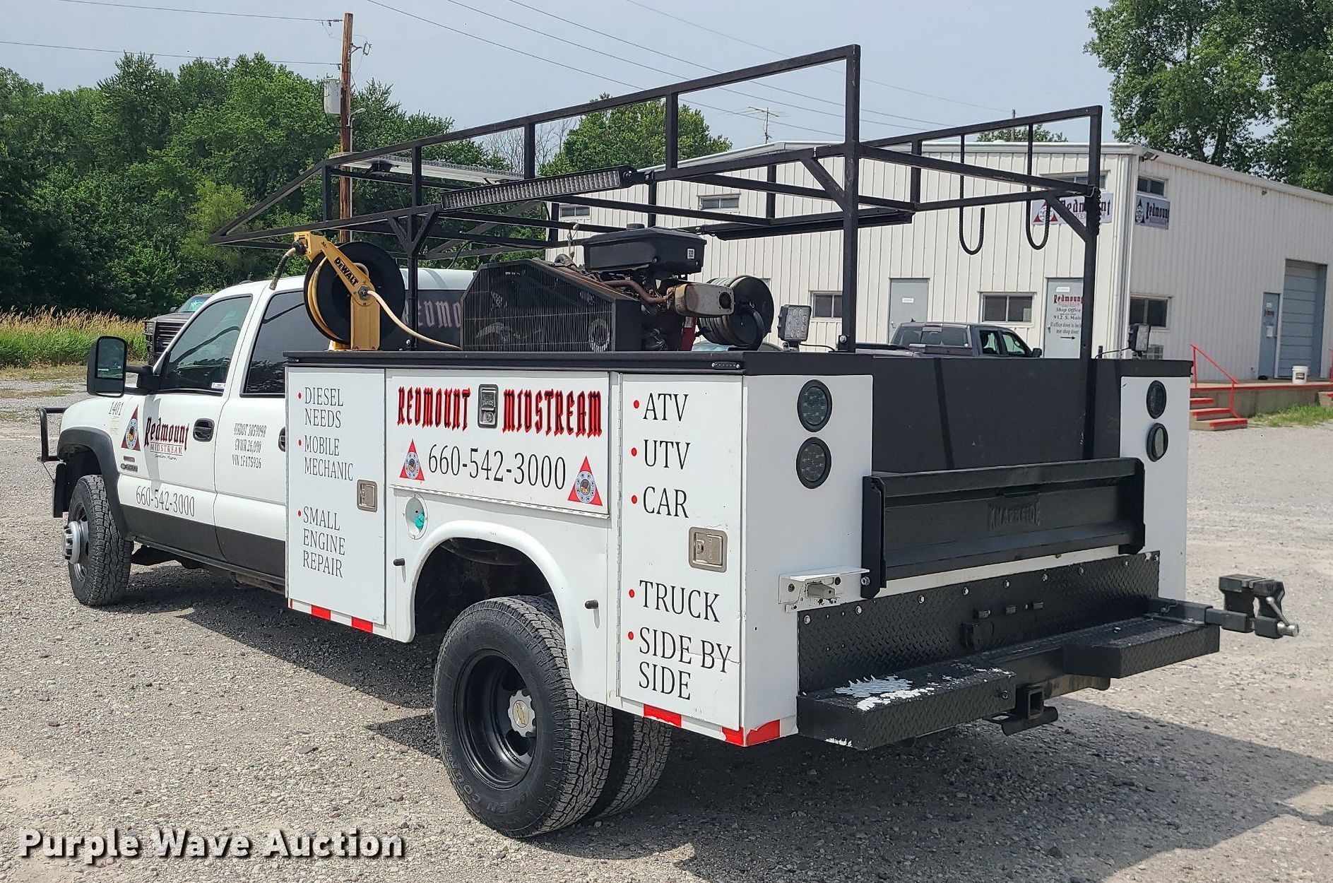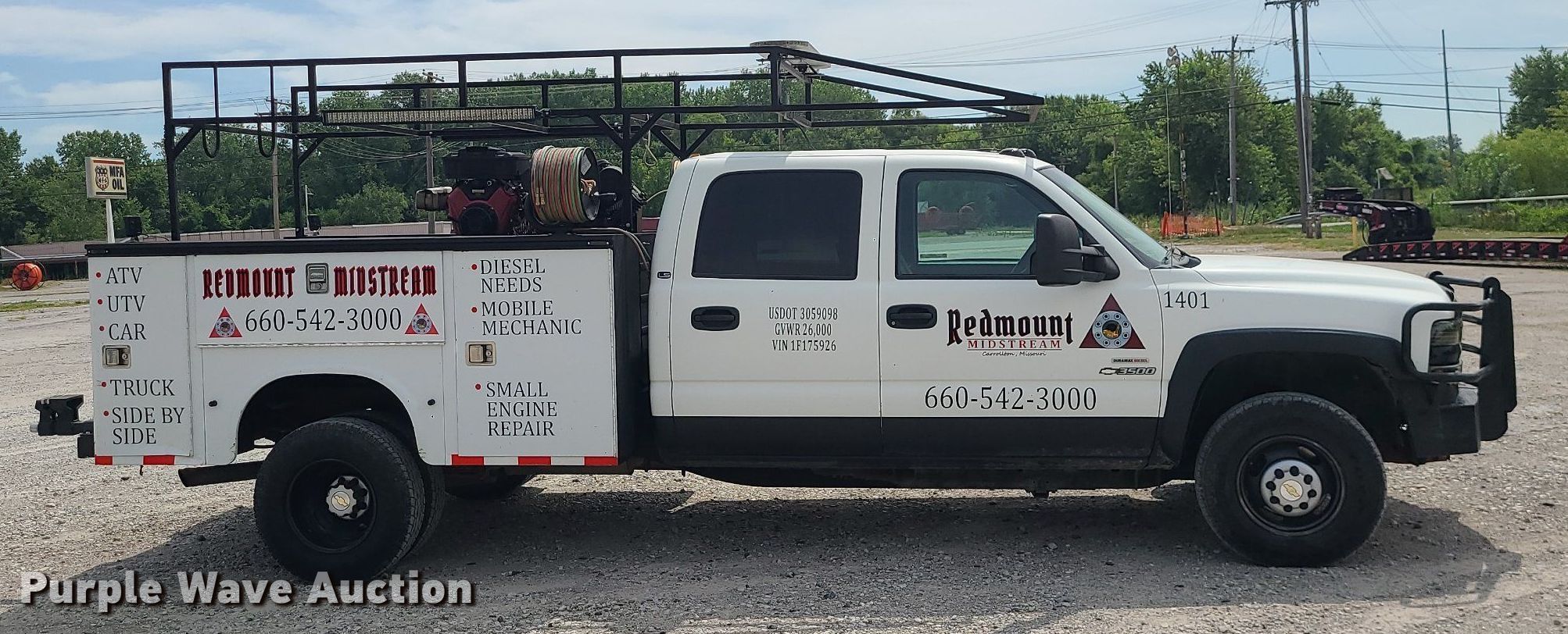 2001 Chevrolet Silverado 3500 Crew Cab utility bed pickup truck. Miles: 345,682 on odometer, VIN: 1GCJC33151F175926. Engine Displacement: 6.6L V8 OHV, Cylinders: 8, Fuel type: Diesel. Transmission Automatic. Interior AC, Heat, Power windows, Power locks, Cruise control. Features Utility bed 8' 1" L x 95" W. Tires Size: 215/85R16. Notes Windshield chipped or cracked. Missouri title. Title distribution may be delayed up to 14 days from verification of funds. Redmount Midstream llc.. 912 South Main Street. Carrollton, MO 64633