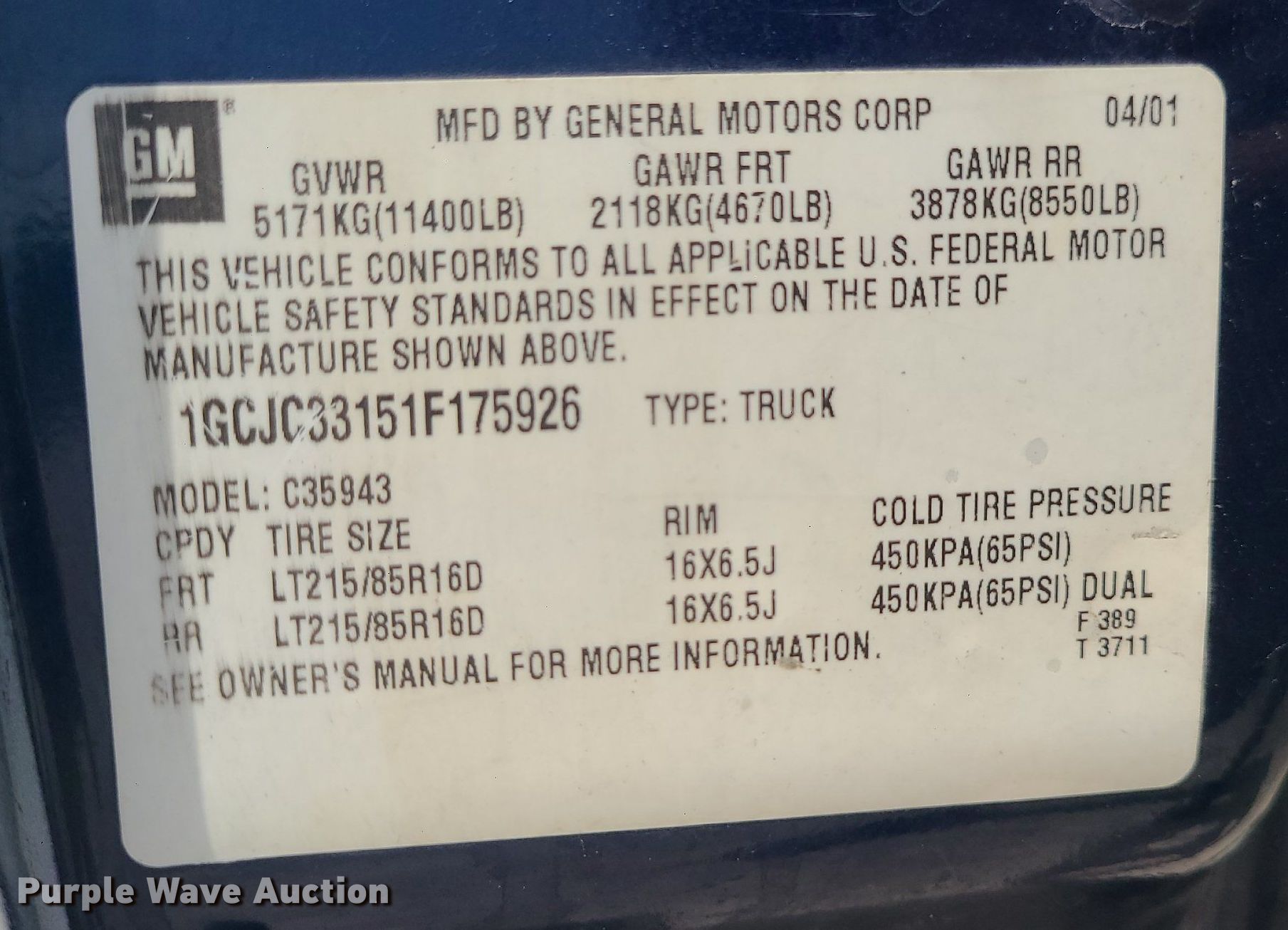 Purple Wave is selling a used 3/4 or 1 Ton Pickup or Van in Missouri. This item is a 2001 Chevrolet Silverado 3500 Crew Cab utility bed pickup truck with the following: Miles: 345,682 on odometer, VIN: 1GCJC33151F175926