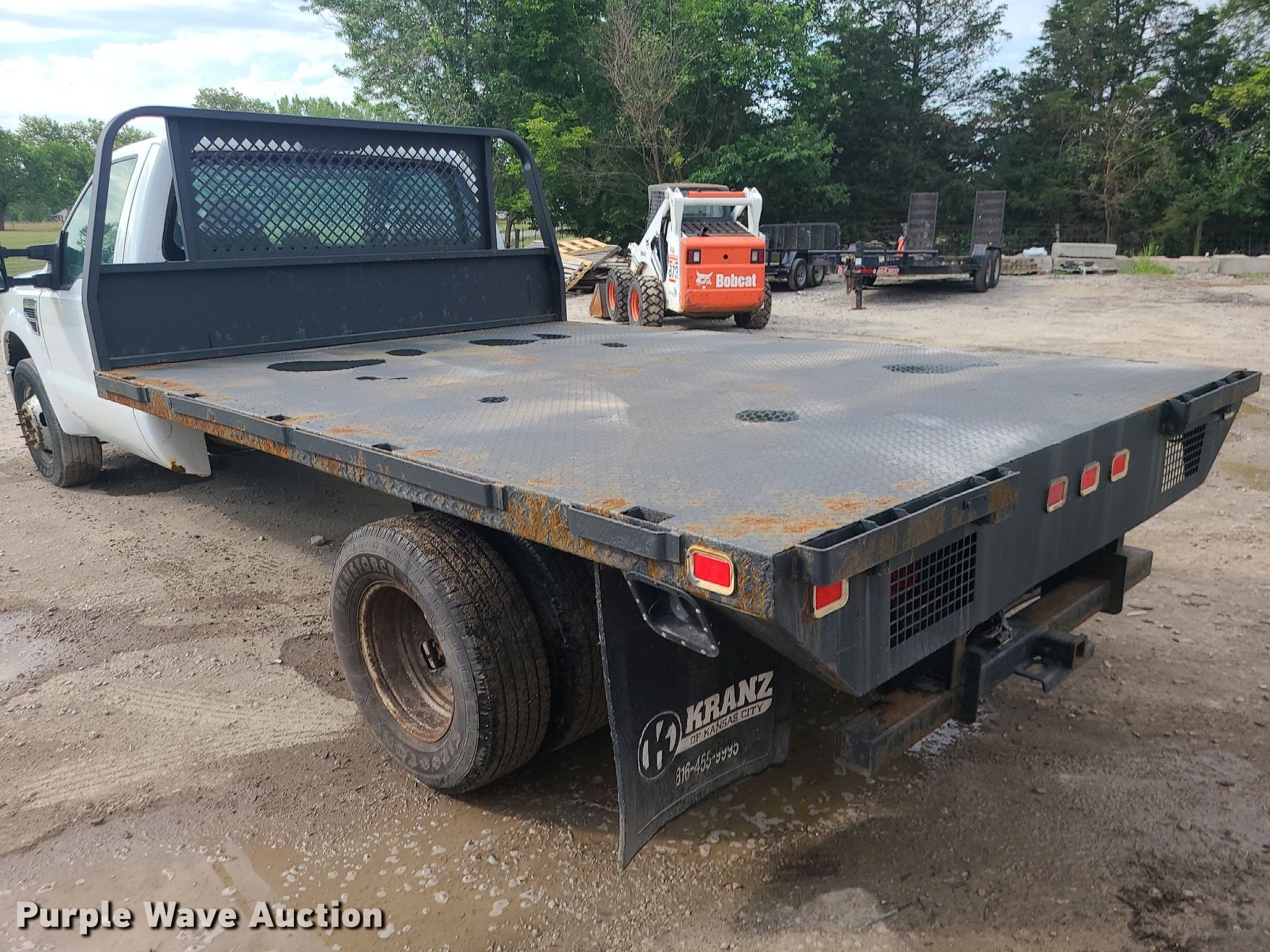 2008 Ford F350 Super Duty flatbed pickup truck. Miles: 153,679 on odometer, VIN: 1FDWF36Y38EE47441. Engine Displacement: 6.8L V10 SOHC, Cylinders: 10, Fuel type: Gas. Transmission Automatic. Interior AC, Heat, Power windows, Power locks, Cruise control. Features Flatbed 11' L x 96' W. Tires Size: 245/75R17. Notes Windshield chipped or cracked, Non-operational AC. Missouri title. Title distribution may be delayed up to 14 days from verification of funds. Royal Lawn Service, LLC. Grain Valley, MO 64029