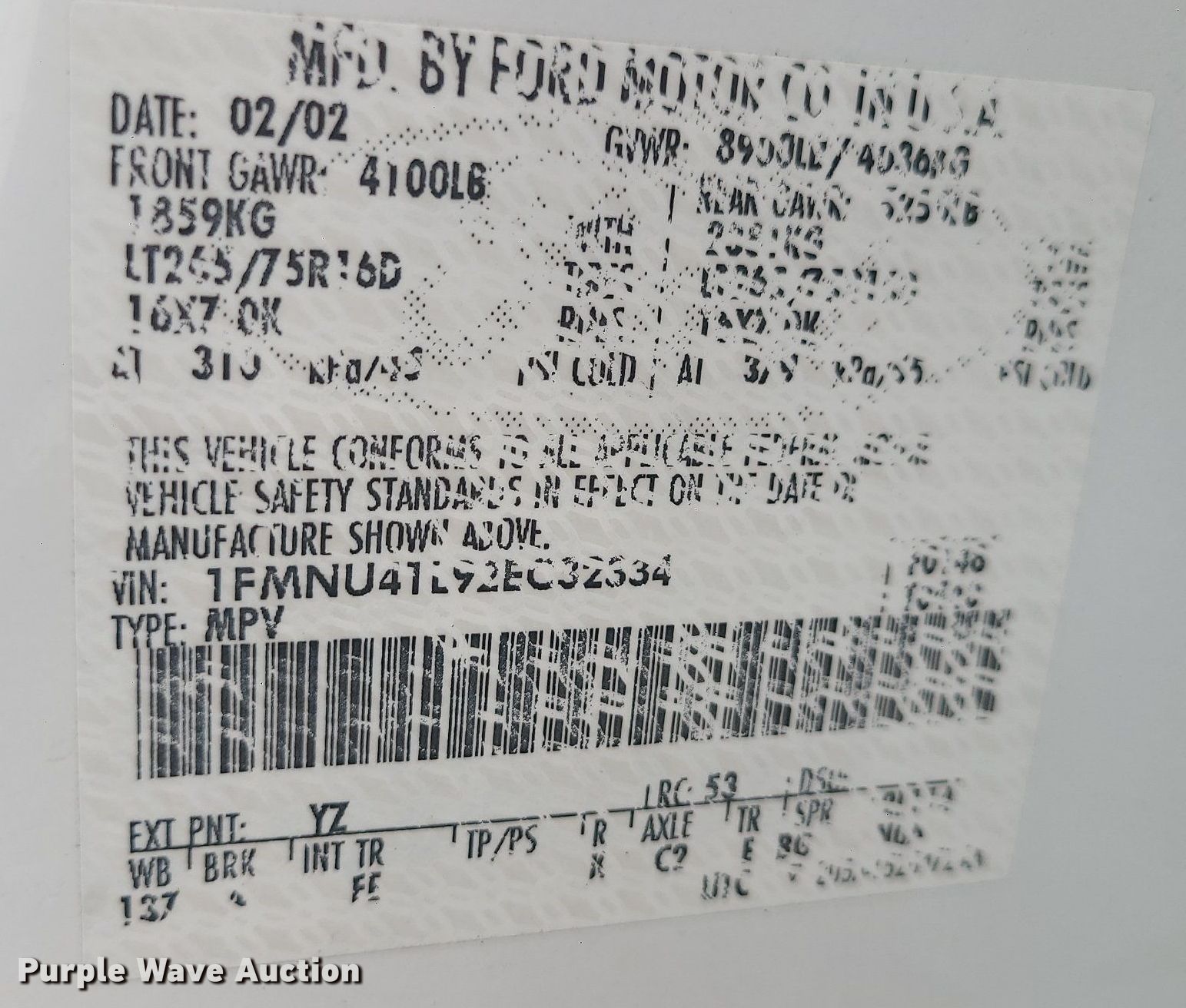 Purple Wave is selling a used Passenger Vehicle in Missouri. This item is a 2002 Ford Excursion SUV with the following: Miles: 101,343 on odometer, VIN: 1FMNU41L92EC32334