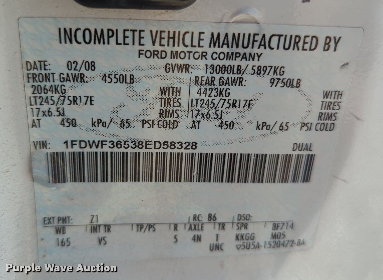 - VIN: 1FDWF36538ED58328