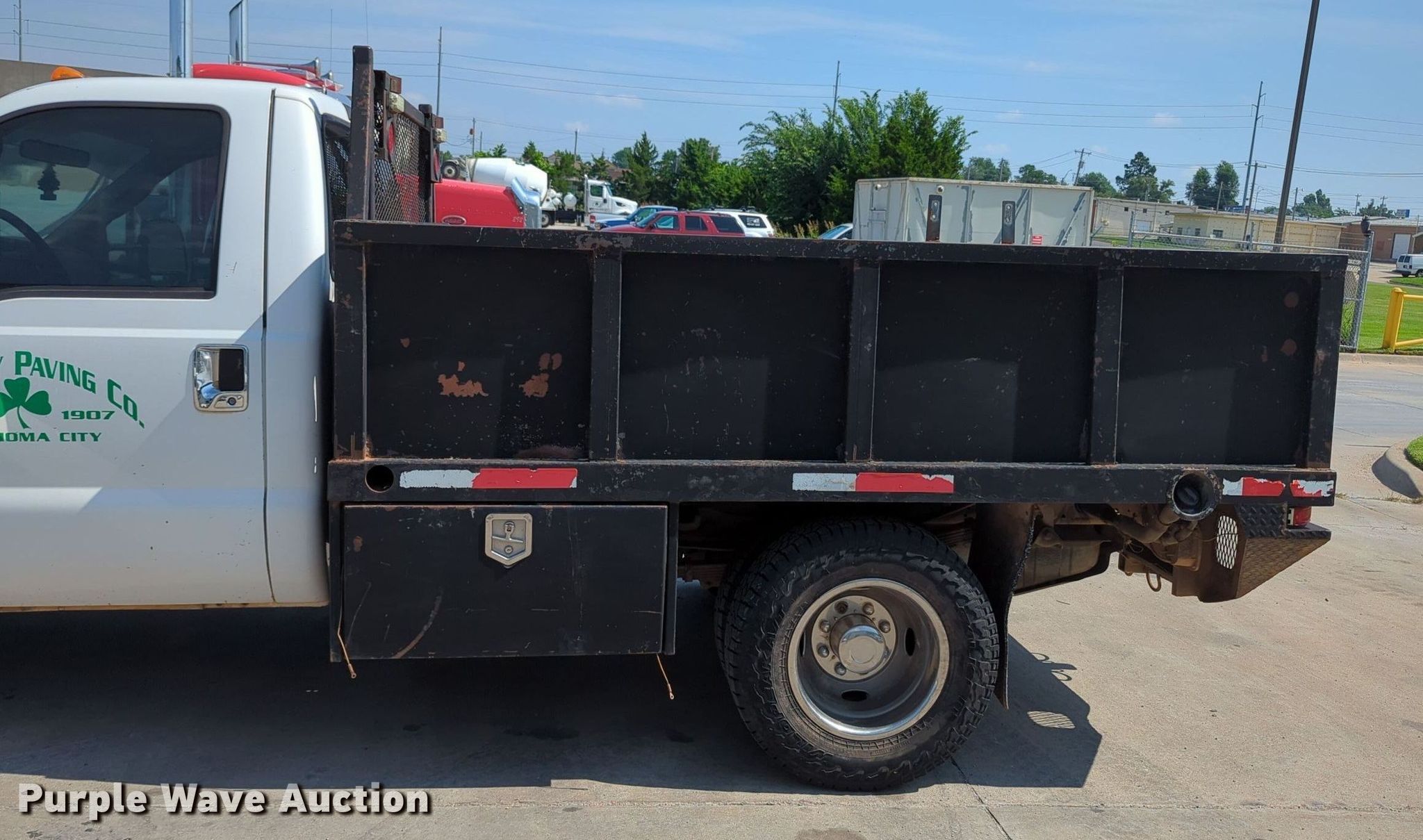 2005 Ford F350 Super Duty flatbed pickup truck. Miles: 229,185 on odometer, VIN: 1FDWF36P95EC81333. Engine Displacement: 6.0L V8 OHV, Cylinders: 8, Fuel type: Diesel. Transmission Automatic. Interior AC, Heat, Cruise control. Features Flatbed 9' L x 90" W. Tires Size: 245/75R17. Notes Dash warning indicator: Check engine, Windshield chipped or cracked. Oklahoma title. Title distribution may be delayed up to 30 days from verification of funds. Connelly Paving & Ready-Mix. 917 North Tulsa Avenue. Oklahoma City, OK 73107