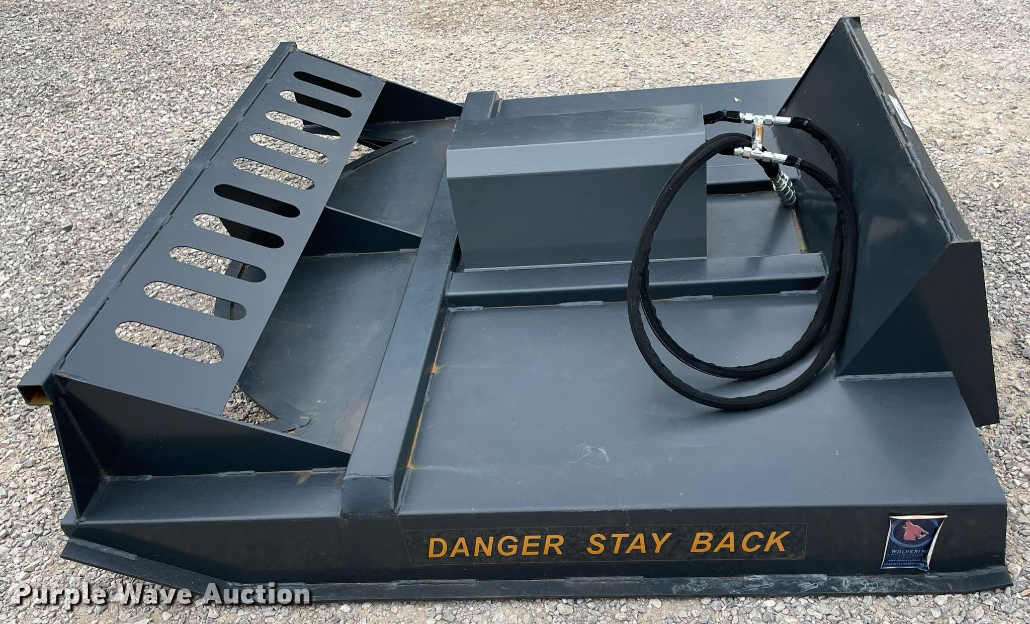 Purple Wave is selling a used Skid Steer Attach. in Oklahoma. This item is a Wolverine skid steer rotary mower with the following: Width: 72"