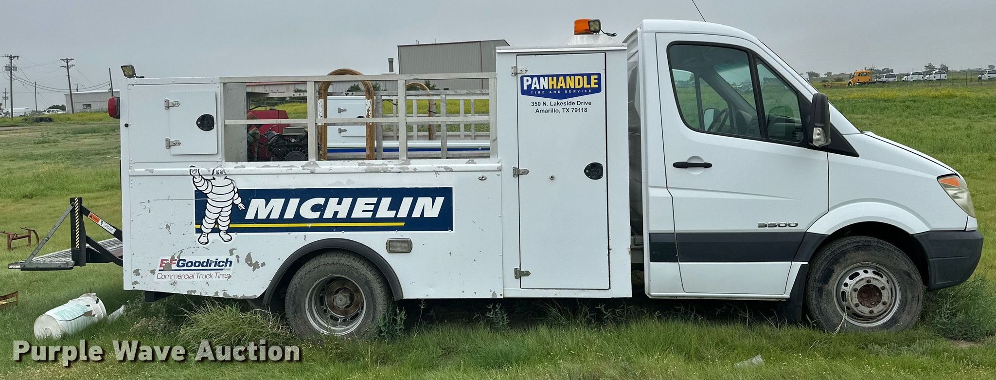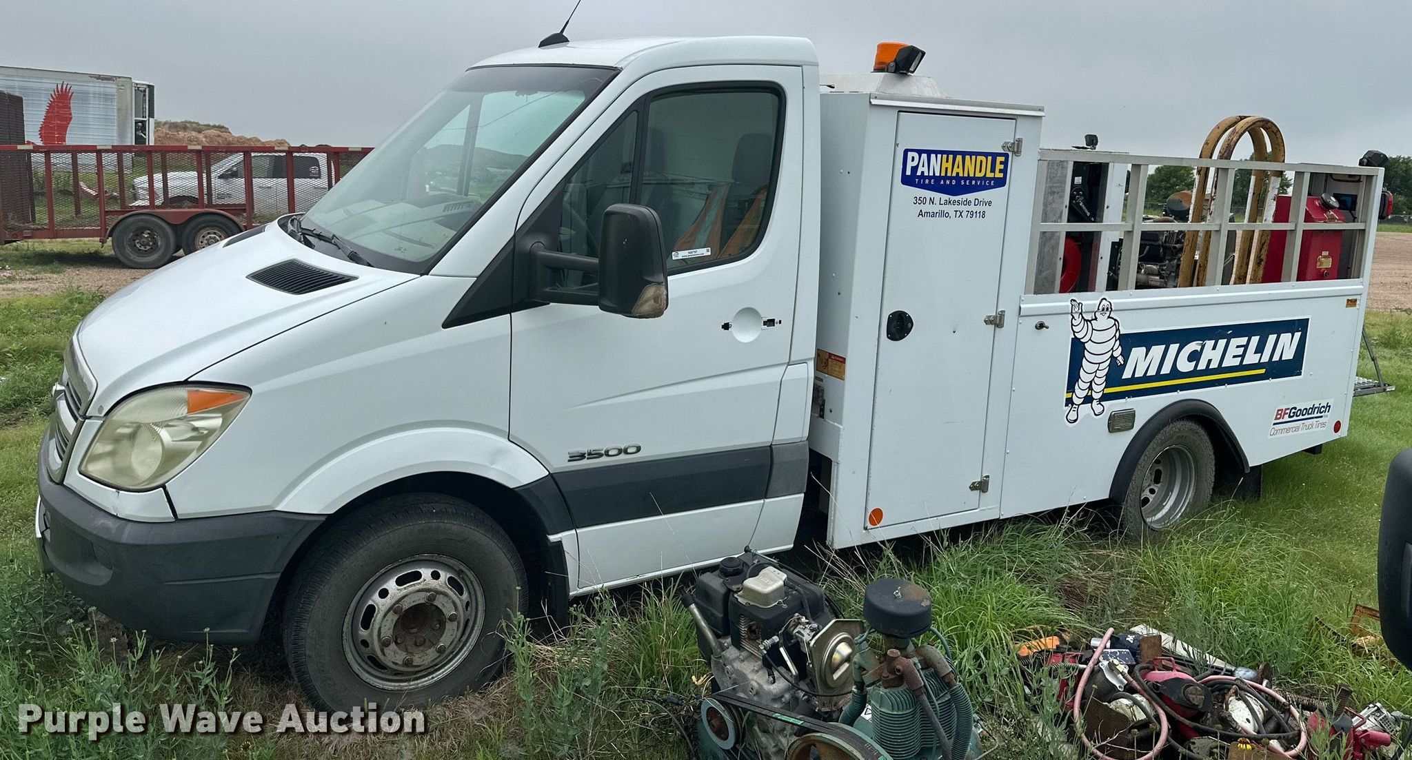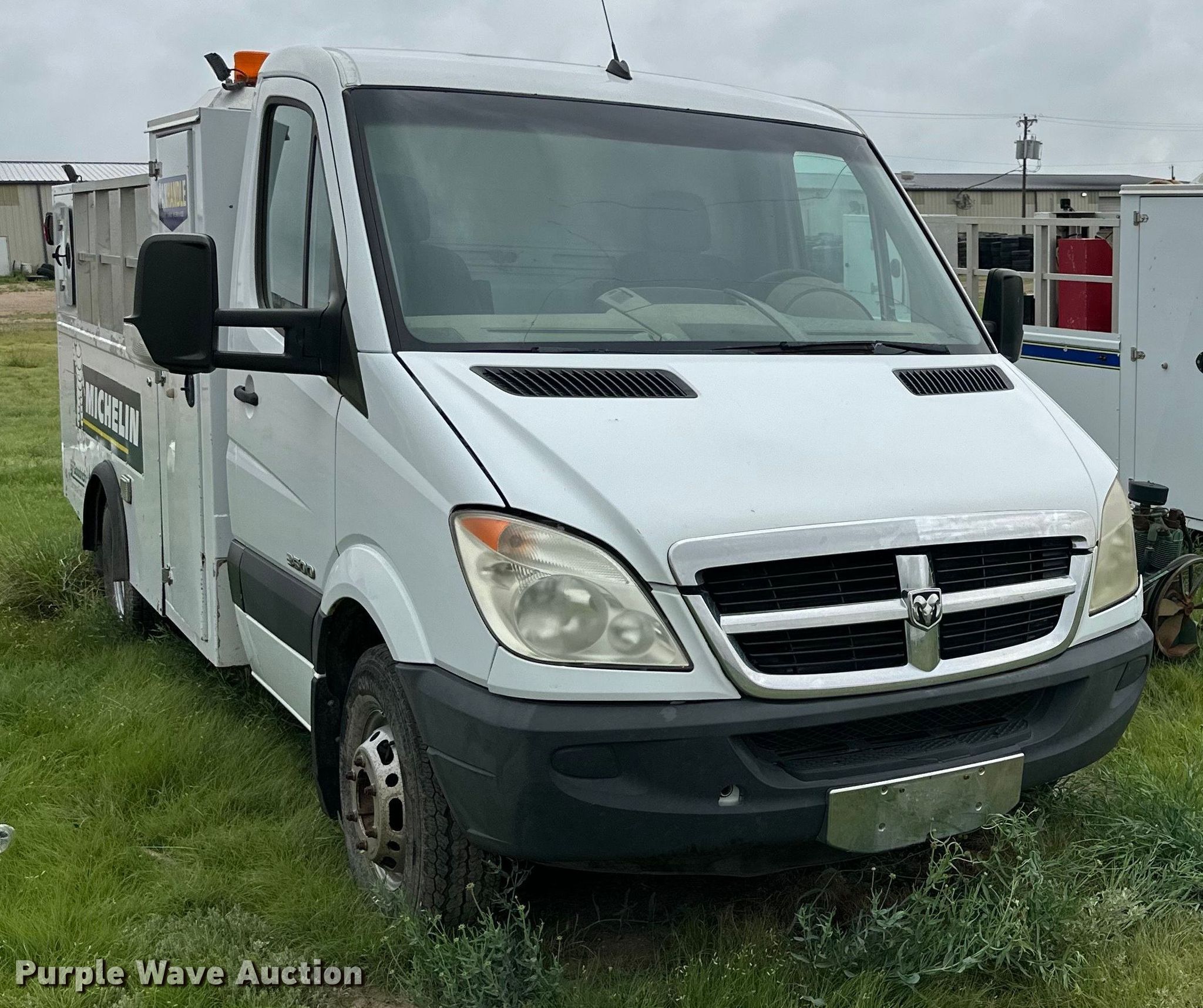 (2) Utility vans. 2007 Dodge 3500 Sprinter. Kilometers: 251,018 on odometer, VIN: WDXPF345479341078. Engine Mercedes-Benz, Displacement: 3.0L , Cylinders: 6, Fuel type: Diesel. Transmission Automatic. Chassis Axles: Single, Suspension: Spring, Brakes: Hydraulic. Interior AC, Heat, Power windows, Cruise control, Auxiliary controls. Features Bed Stellar, 12' L x 80" W, Air compressor Champion, Hose reels, Lift gate, Auxiliary fuel tank. Tires Size: 225/75R16. Notes Windshield chipped or cracked, Unknown operating condition of air compressor, Non-operational unit. 2006 Dodge 2500 Sprinter Miles: 108,140 on odometer, VIN: WDXPD844X65896519. Engine Mercedes-Benz OM647, Displacement: 2.7L , Cylinders: 5, Fuel type: Diesel. Transmission Automatic. Chassis Axles: Single, Suspension: Air, Brakes: Hydraulic. Interior AC, Heat, Cruise control, Auxiliary controls. Features Bed Stellar 1280SE, 12' L x 80" W, Air compressor Champion, Kohler CH680, Hose reels, Lift gate, Auxiliary fuel tank. Tires Front: 225/75R16, Rear: 215/85R16. Notes Windshield chipped or cracked, Unknown operating condition of air compressor, Non-operational unit. Texas title. Title distribution may be delayed up to 14 days from verification of funds. KansasLand Tire and Service. 350 North Lakeside Drive. Amarillo, TX 79118