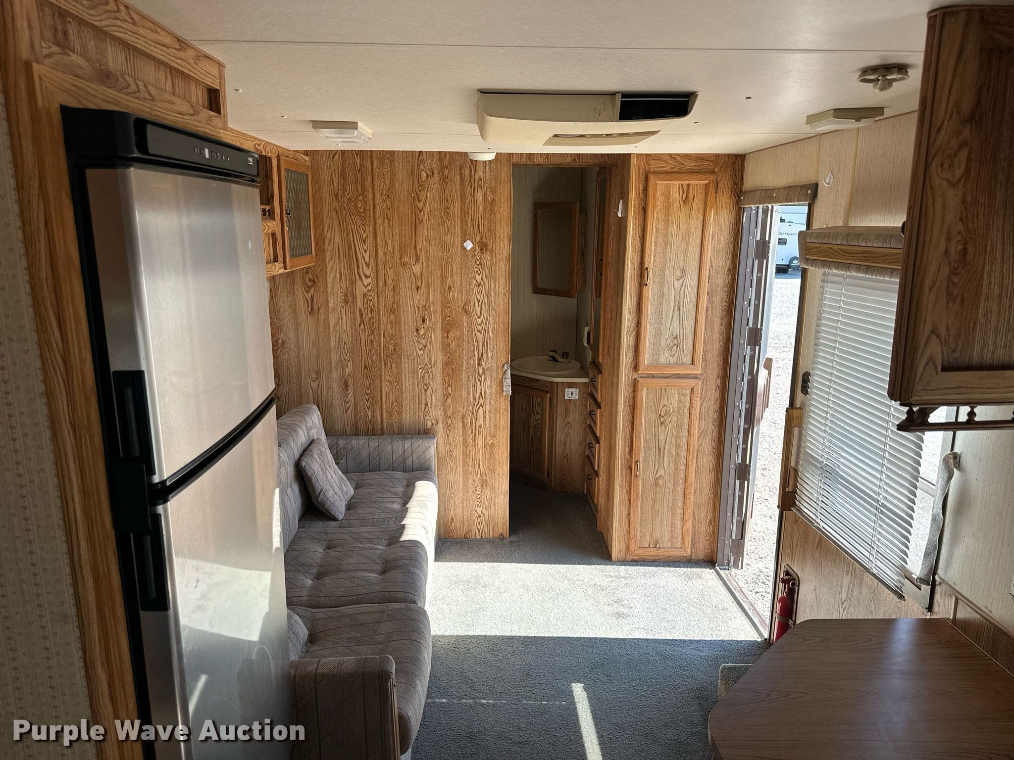 1989 Excell camper. Camper length: 28', VIN: 1P9RV0K28KA090168. Chassis Axles: Tandem, Suspension: Spring, Brakes: Electric. Interior Kitchen: Sink, Refrigerator, Freezer, Microwave, Oven, Stove: Gas, Living room: Table, Couch, Pull out couch, Bathroom, Beds: 3 Bed type: Queen, Sound system, Heater, AC units: 1. Features Awnings: 1 Awning type: Manual, Rear hitch. Tires Size: 235/75R15. Notes Huskey fifth wheel plate included , Step damaged, may need welded, Pump leaks. View repairs. Nebraska title. Holdrege, NE 68949