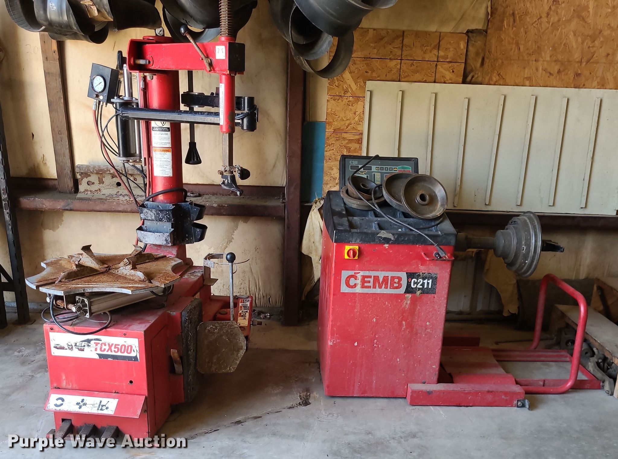 Purple Wave is selling a used Tools in Kansas. This item is a Tools with the following: Cemb C211 tire balancer, Serial: 069014707365, Volts: 110, Phase: Single, Hunter TCX500 tire changer, Serial: IEH008458, Volts: 115, Phase: Single, Non-operational units