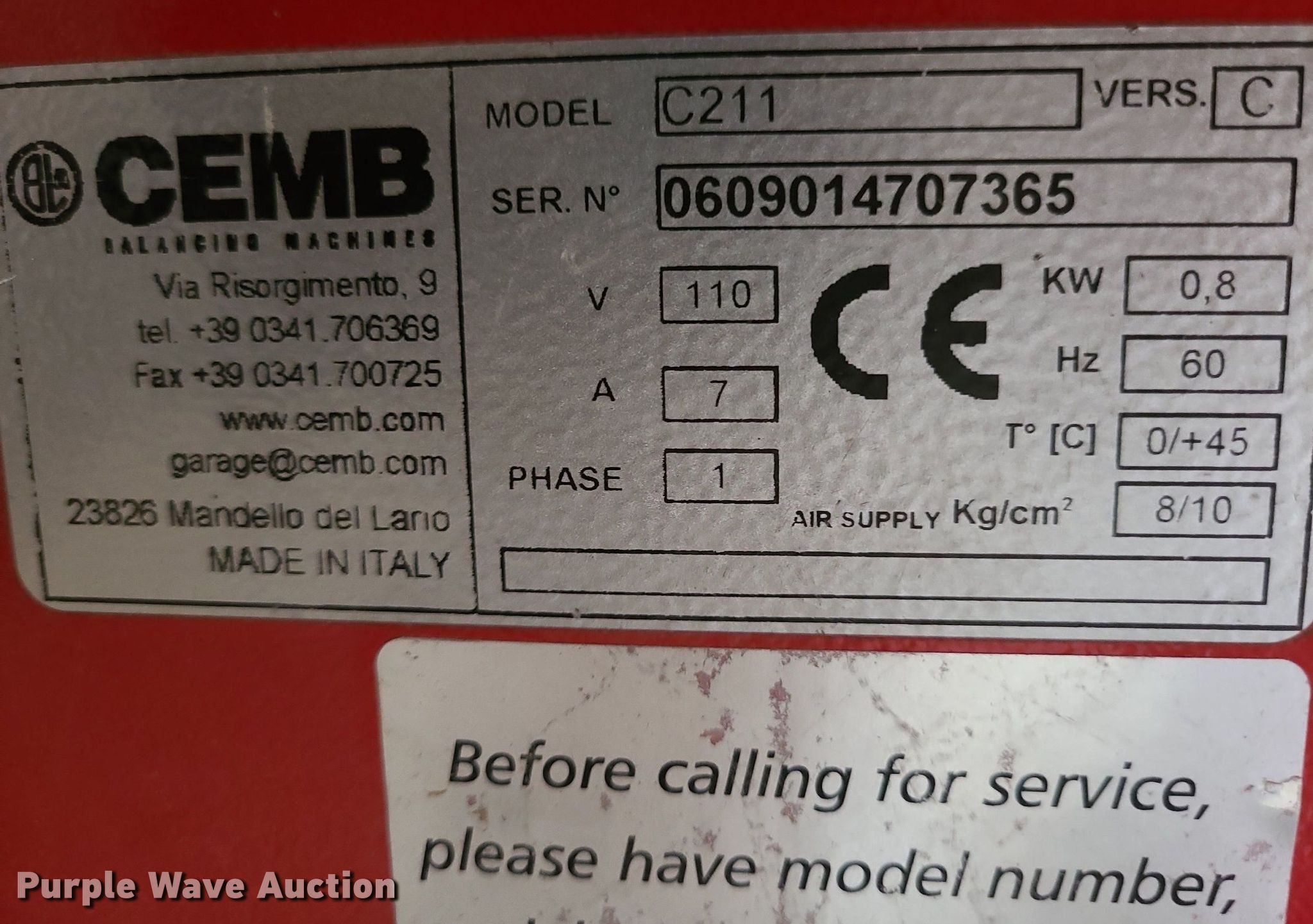 - Cemb C211 tire balancer