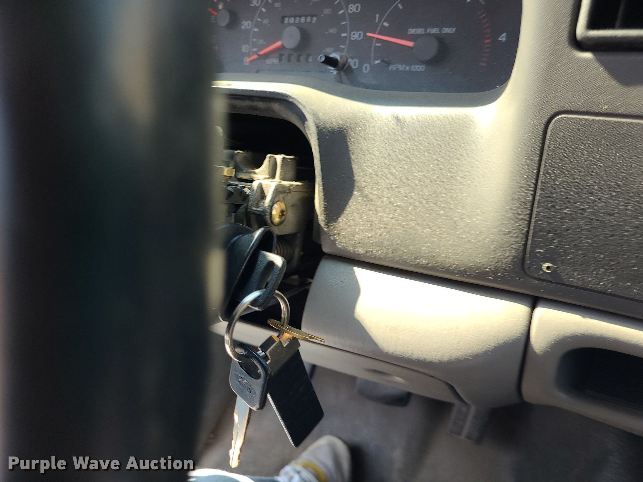 2000 Ford F350 Super Duty XLT SuperCab flatbed pickup truck. Miles: 202,882 on odometer, VIN: 1FDWX36F7YEC95904, Unit #: 31. Engine Displacement: 7.3L V8 OHV, Cylinders: 8, Fuel type: Diesel. Transmission Manual, Speed: 6. Interior AC, Heat, Power windows, Power locks. Features Flatbed Hillsboro, 9' L x 8' W, Hitch: Gooseneck. Tires Size: 235/85R16. Notes Shifter knob missing, Steering column cover missing. Kansas title. Topeka, KS 66616