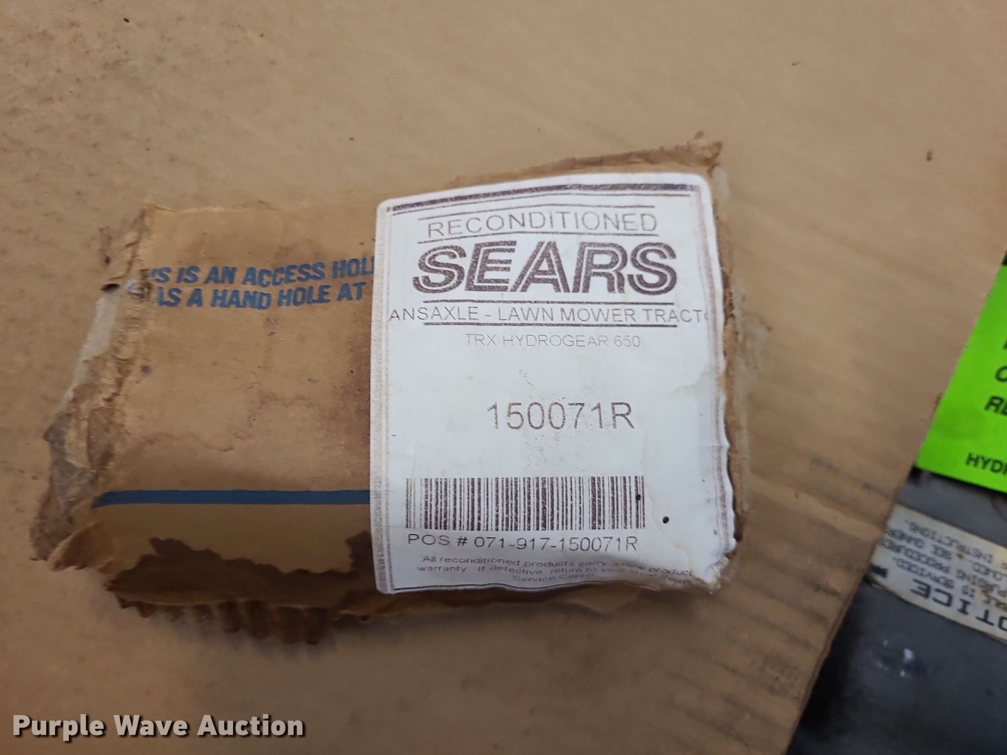 Purple Wave is selling a used Lawn and Garden in Kansas. This item is a Sears Craftsman lawn mower transmission with the following: Unused since recondition, Serial: 150071R