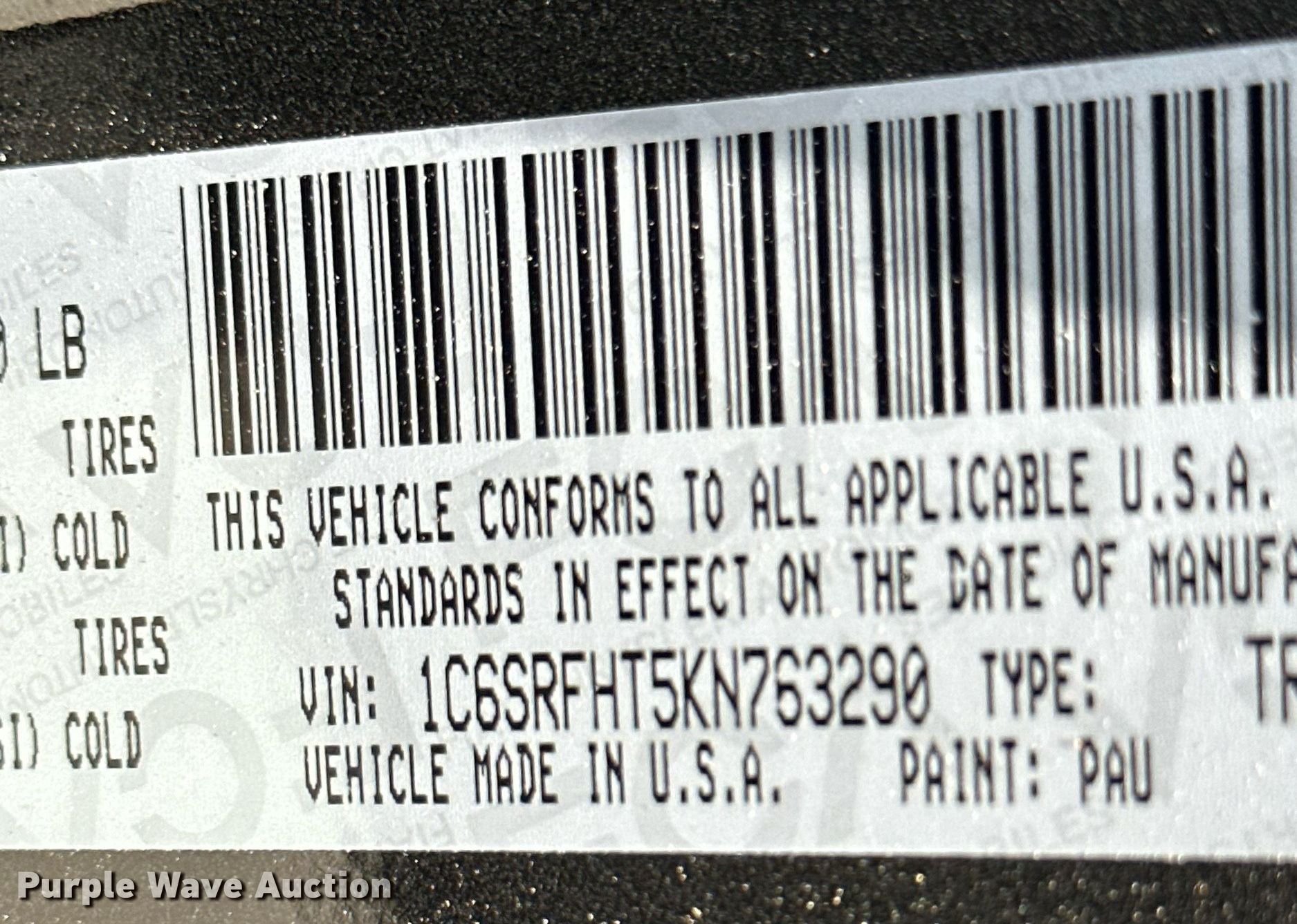 Purple Wave is selling a used 1/2 Ton Pickup or Van in Kansas. This item is a 2019 Dodge Ram 1500 Limited Crew Cab pickup truck with the following: Miles: 28,390 on odometer, VIN: 1C6SRFHT5KN763290