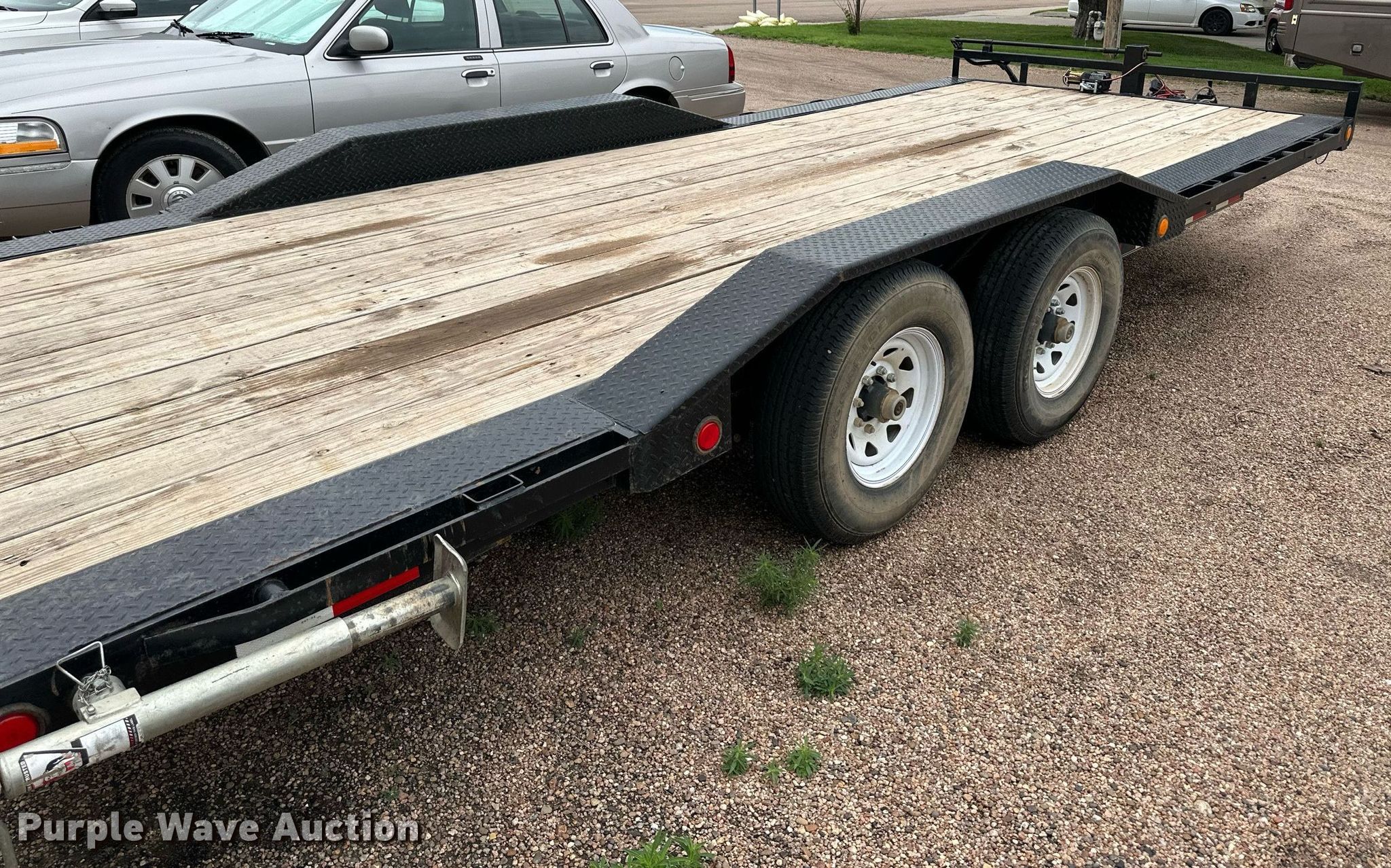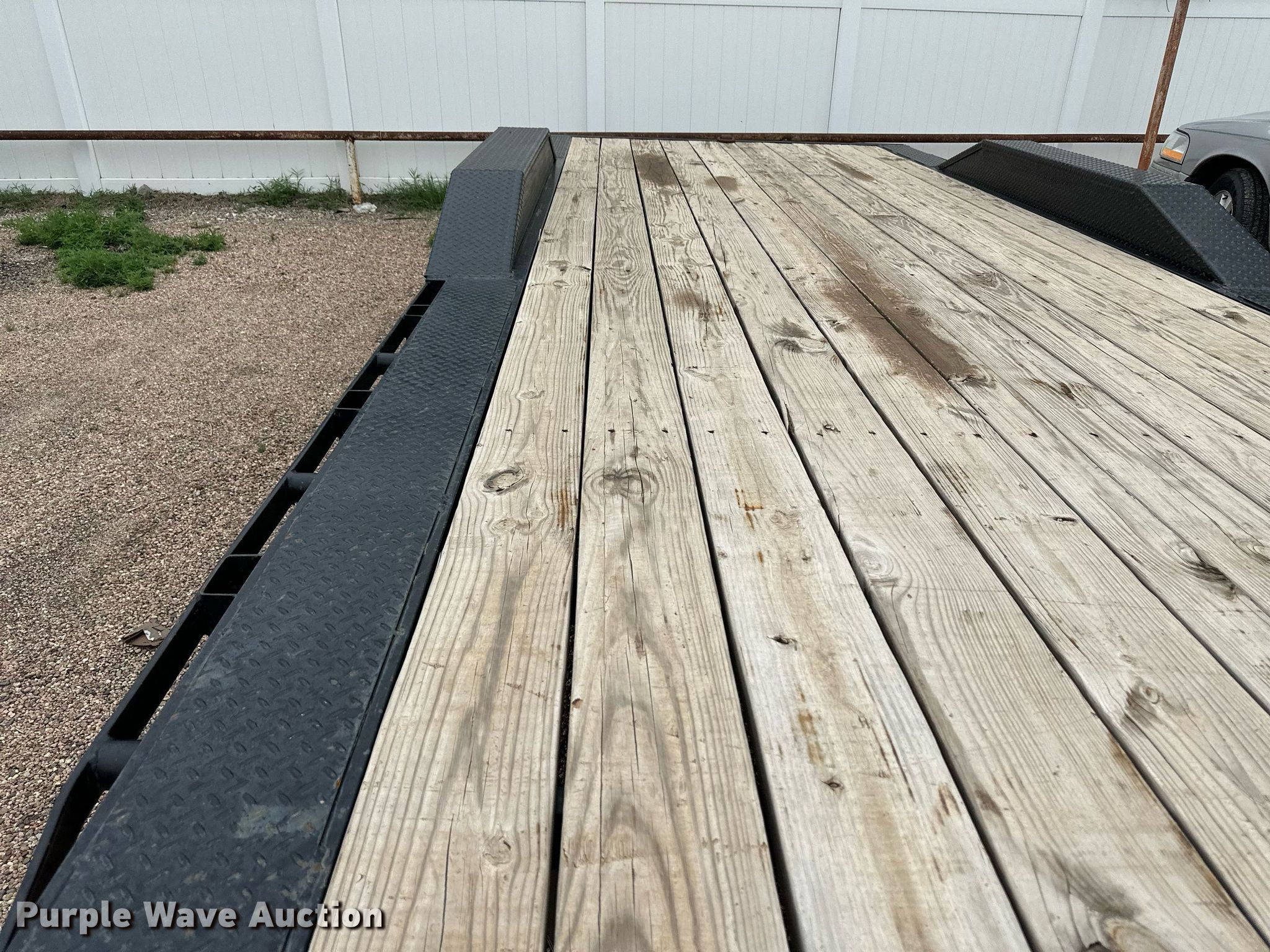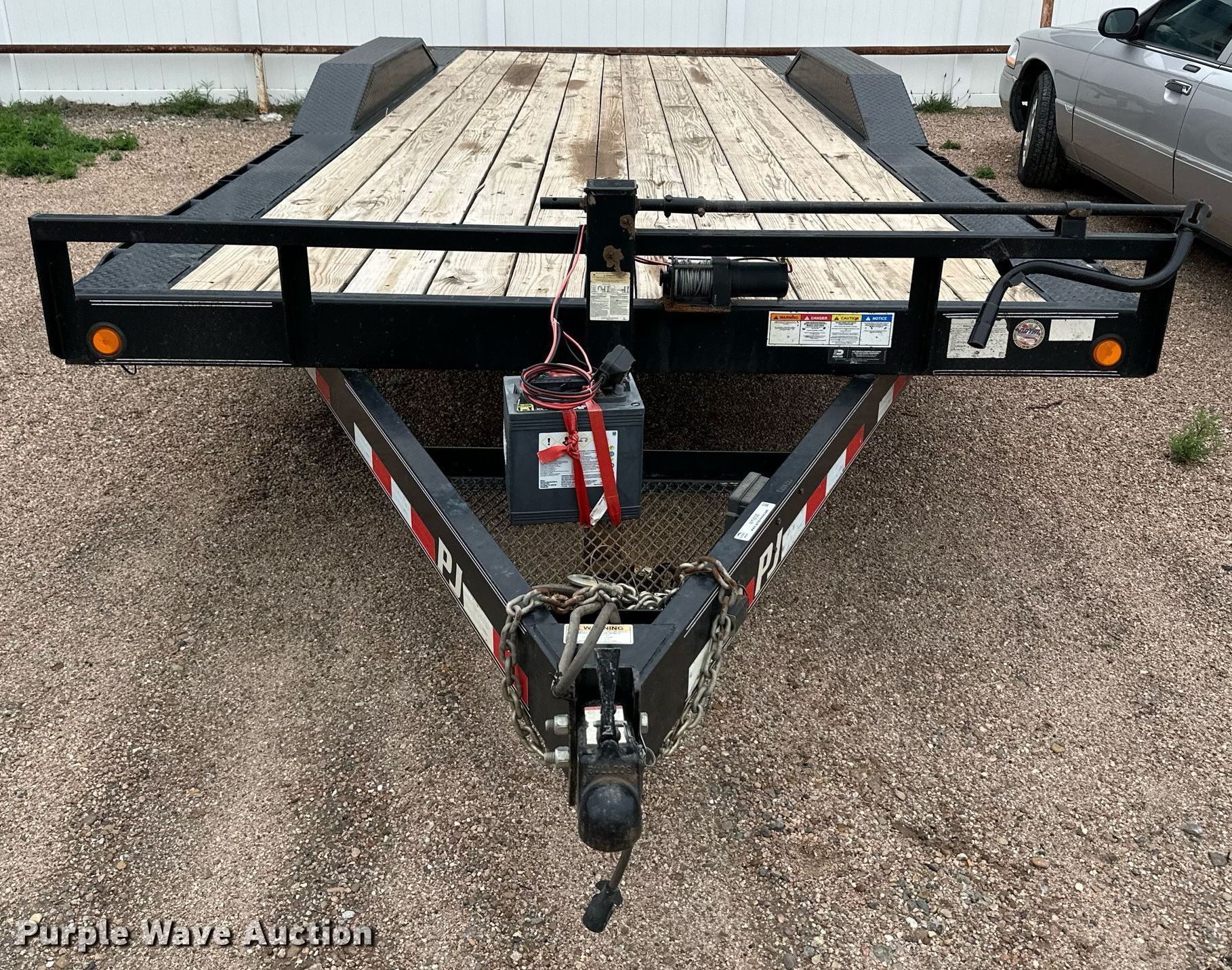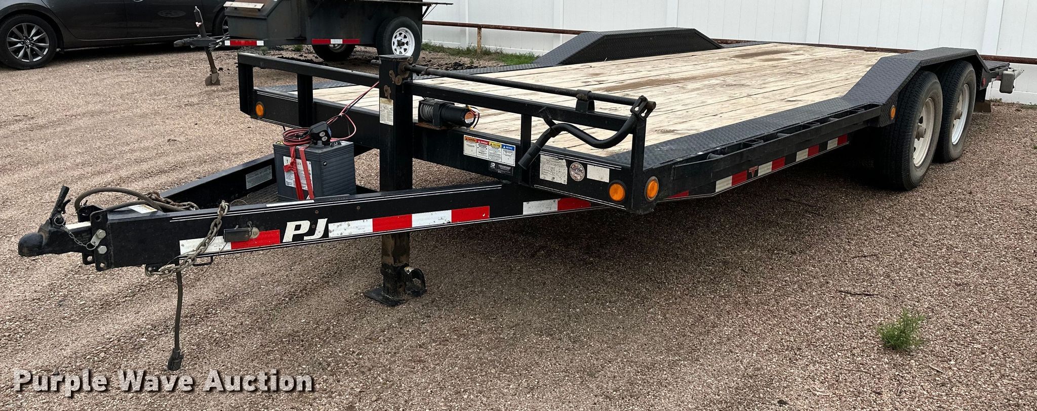 2019 PJ B6202-Carhauler equipment trailer. VIN: 4P5B62020K1303223. Dimensions Overall: 24' 8" L x 102" W, Deck: 20' L x 82" W, Deck height: 24". Features Deck type: Wood, Winch Champion, Capacity: 2,000 lbs. Chassis Ball hitch: 2 5/16", Landing gear: Single, Suspension: Spring, Brakes: Electric, Axles: Tandem, GVWR: 14,000 lbs, GAWR: 7,000 lbs. Tires Steel wheels, Size: 235/80R16. Kansas title. First National Bank. 501 Main Street. Scott City, KS 67871