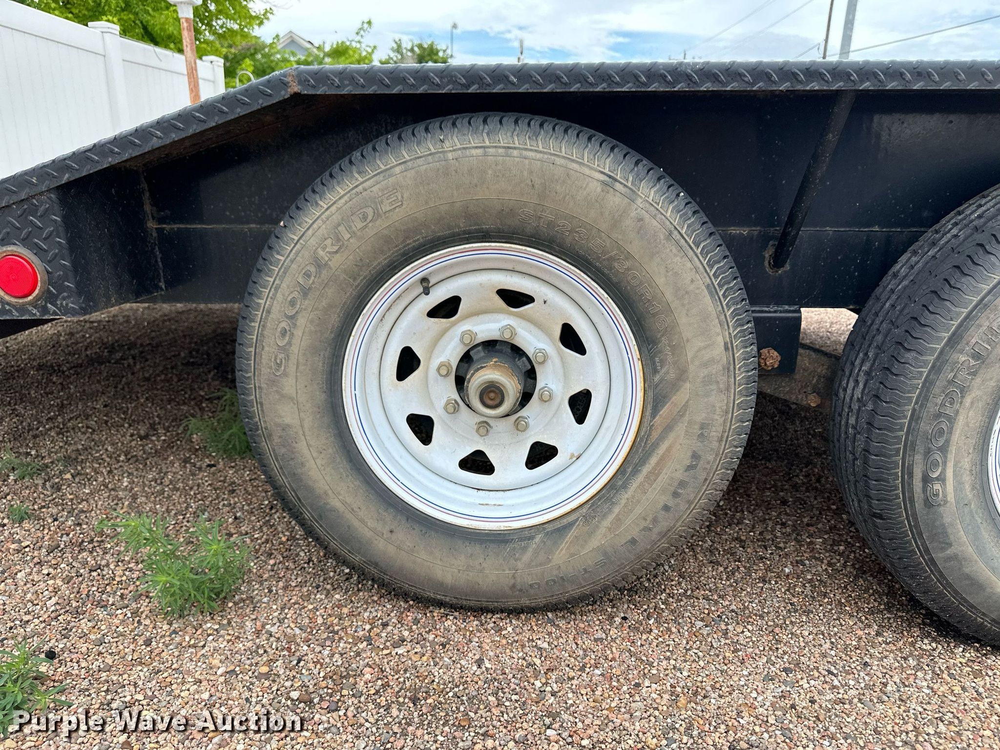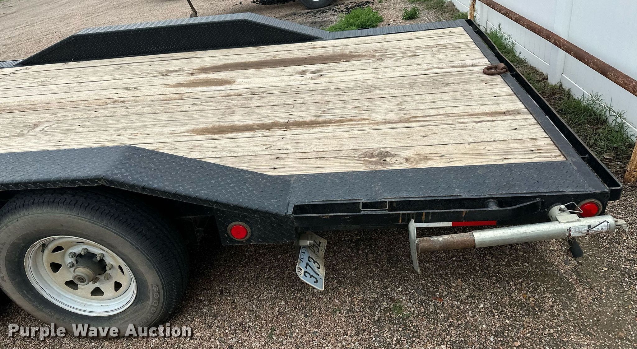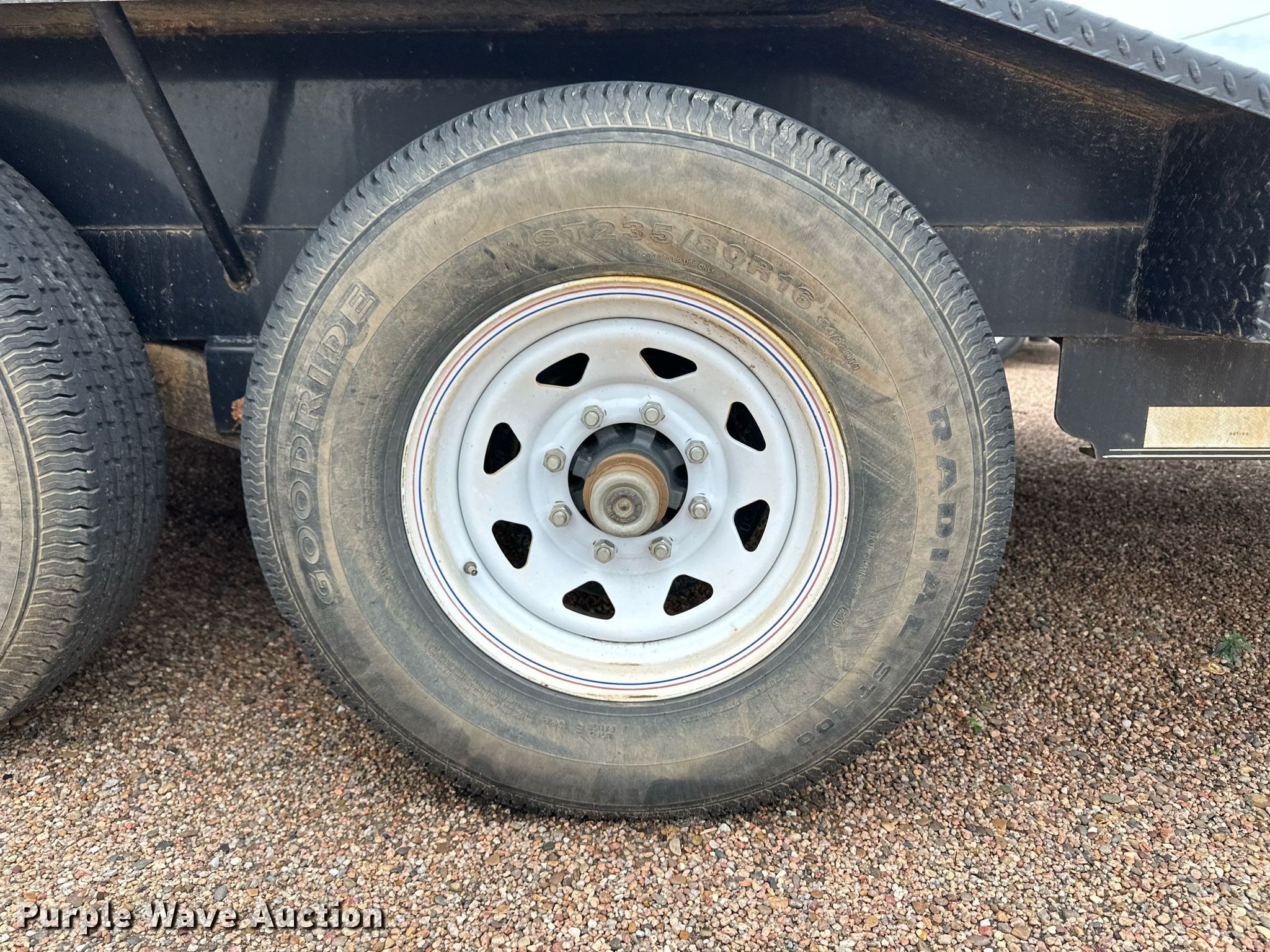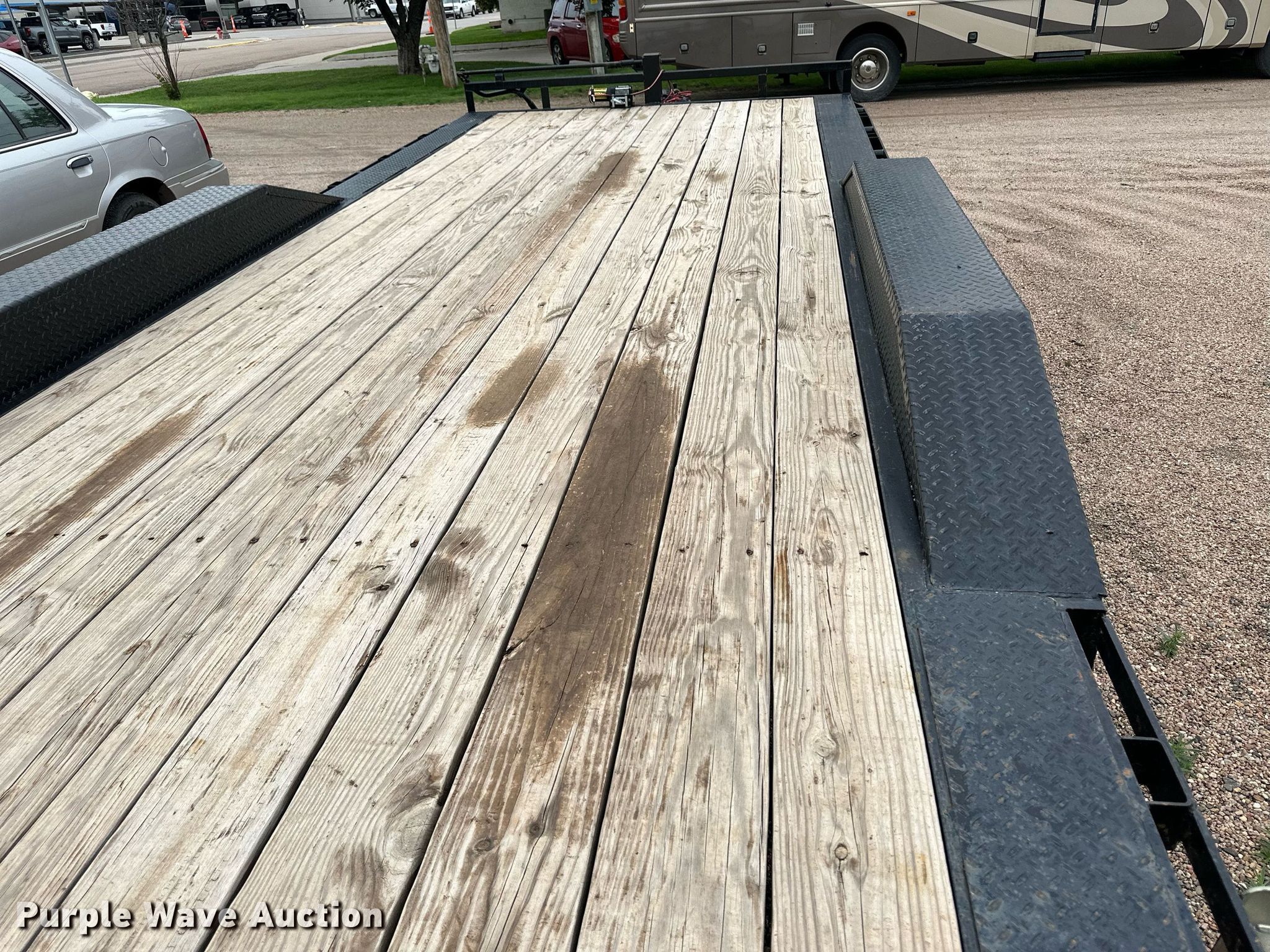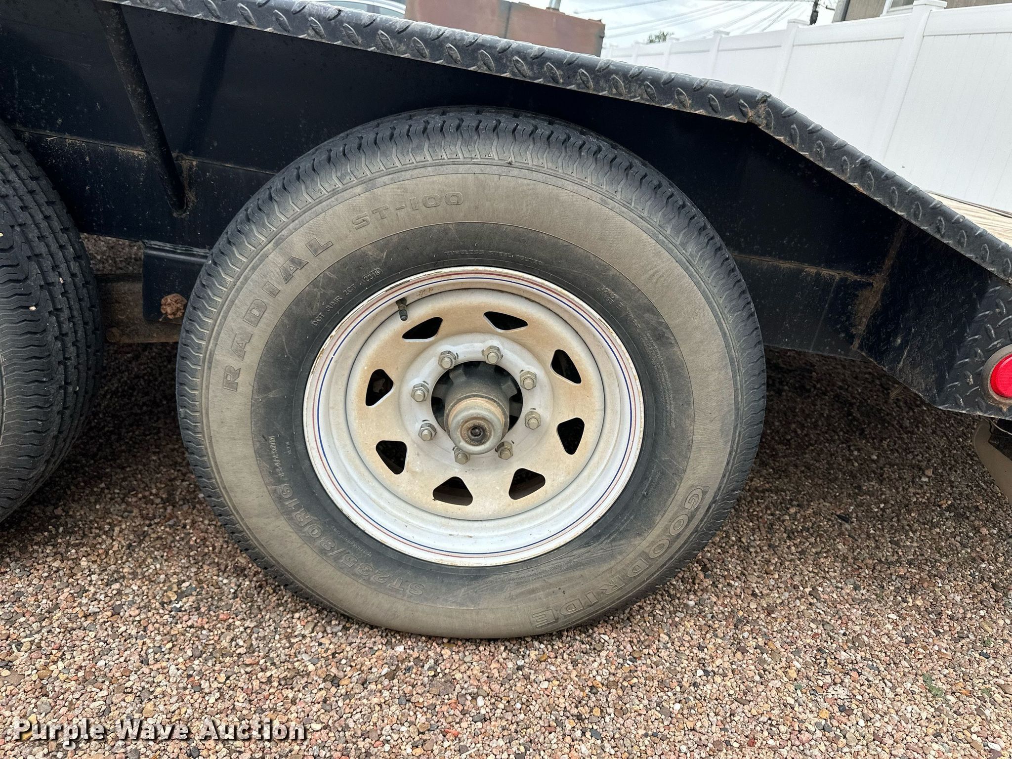 2019 PJ B6202-Carhauler equipment trailer. VIN: 4P5B62020K1303223. Dimensions Overall: 24' 8" L x 102" W, Deck: 20' L x 82" W, Deck height: 24". Features Deck type: Wood, Winch Champion, Capacity: 2,000 lbs. Chassis Ball hitch: 2 5/16", Landing gear: Single, Suspension: Spring, Brakes: Electric, Axles: Tandem, GVWR: 14,000 lbs, GAWR: 7,000 lbs. Tires Steel wheels, Size: 235/80R16. Kansas title. First National Bank. 501 Main Street. Scott City, KS 67871