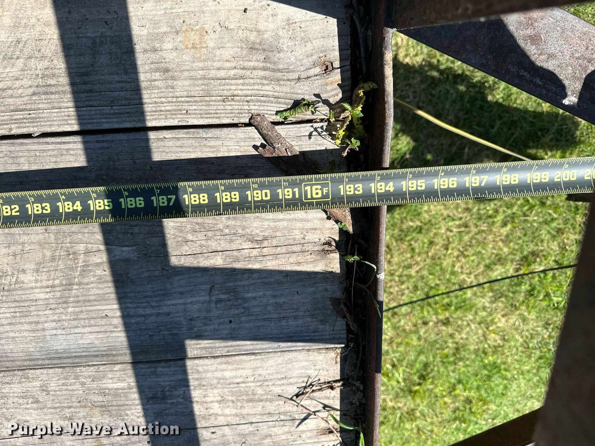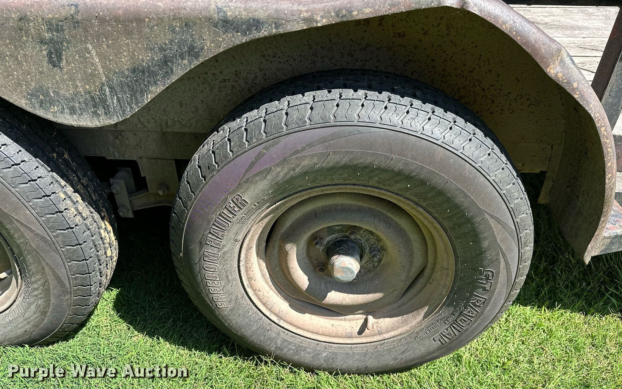 Shop built utility trailer. Dimensions. Overall: 19' 4" L x 96" W, Deck: 16' 2" L x 75" W. Features Deck type: Wood. Chassis Ball hitch: 2", Landing gear: Single, Suspension: Spring, Axles: Tandem. Tires Steel wheels, Size: 225/75R15. Transfer of ownership documentation will be a bill of sale. 619 West Grand Avenue. Tonkawa, OK 74653