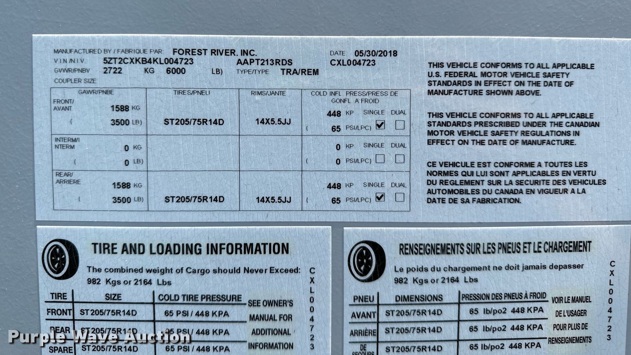 Purple Wave is selling a used RV or Camper in Oklahoma. This item is a 2019 Forest River Apex Nano camper with the following: Camper length: 25' 6", VIN: 5ZT2CXKB4KL004723, Claim #: 3-805426