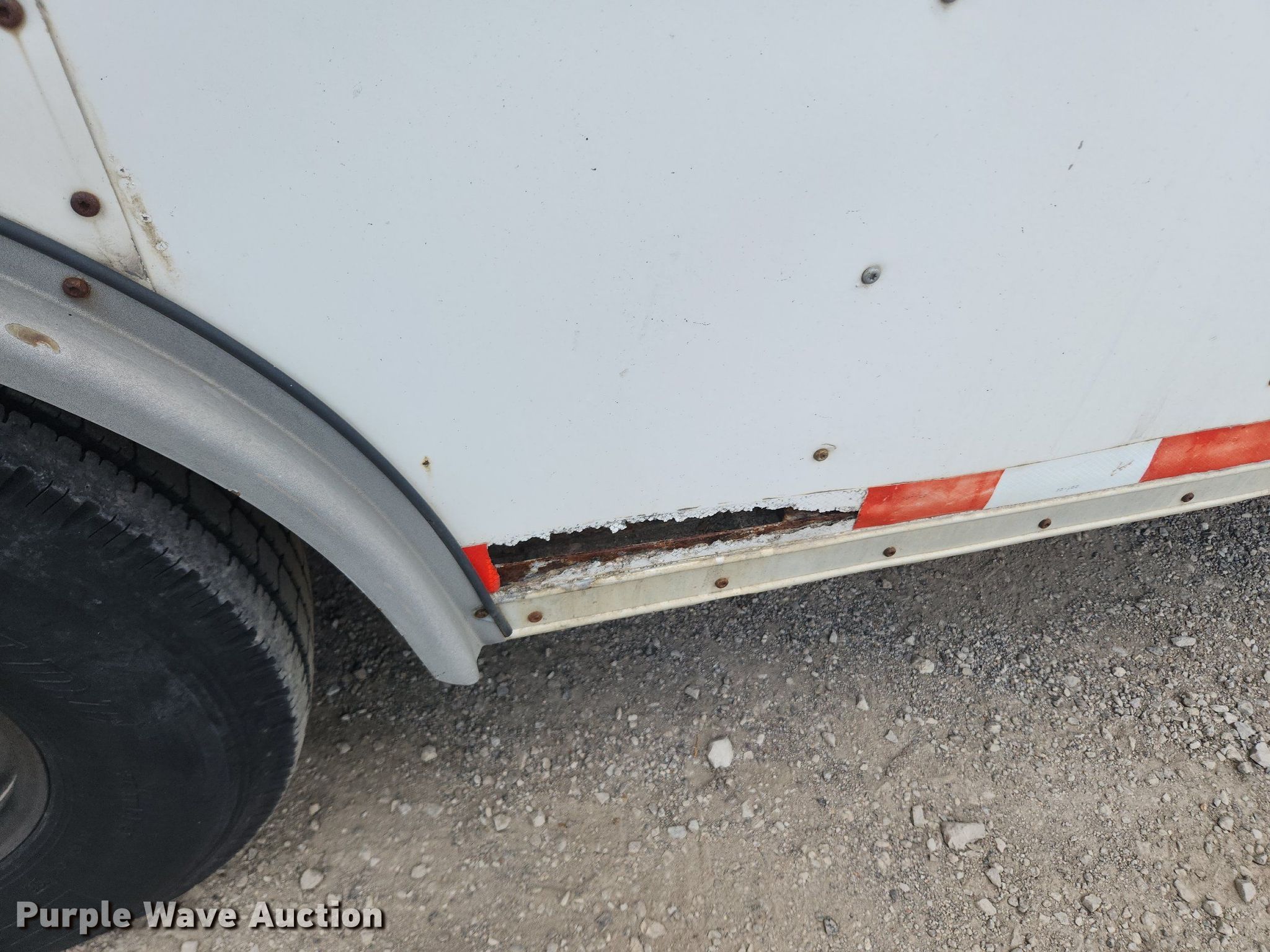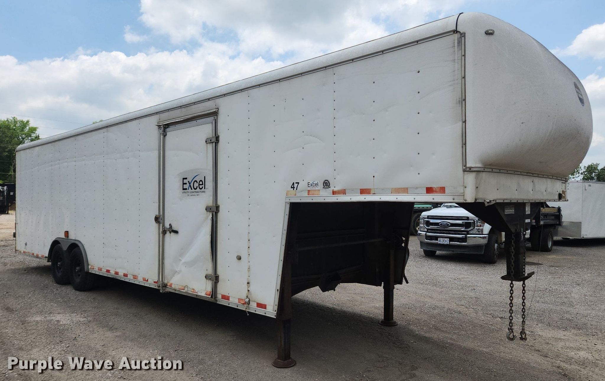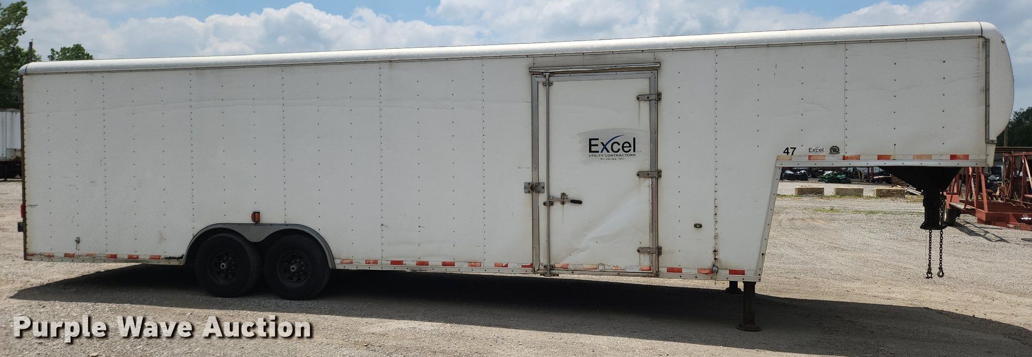 2003 Wells Cargo CVC3625 enclosed cargo trailer. VIN: 1WC200R2433049747. Dimensions Overall: 39' L x 94" W, Body: 31' L x 89" W. Features Deck type: Wood, E-track rail system. Chassis Hitch: Gooseneck, Landing gear: Dual, Suspension: Spring, Brakes: Electric, Axles: Tandem, GVWR: 14,700 lbs. Tires Steel wheels, Size: 235/85R16. Notes Hole in floor. Missouri title. Title distribution may be delayed up to 14 days from verification of funds. Excel Utility Contractors, LLC. Pacific, MO 63069
