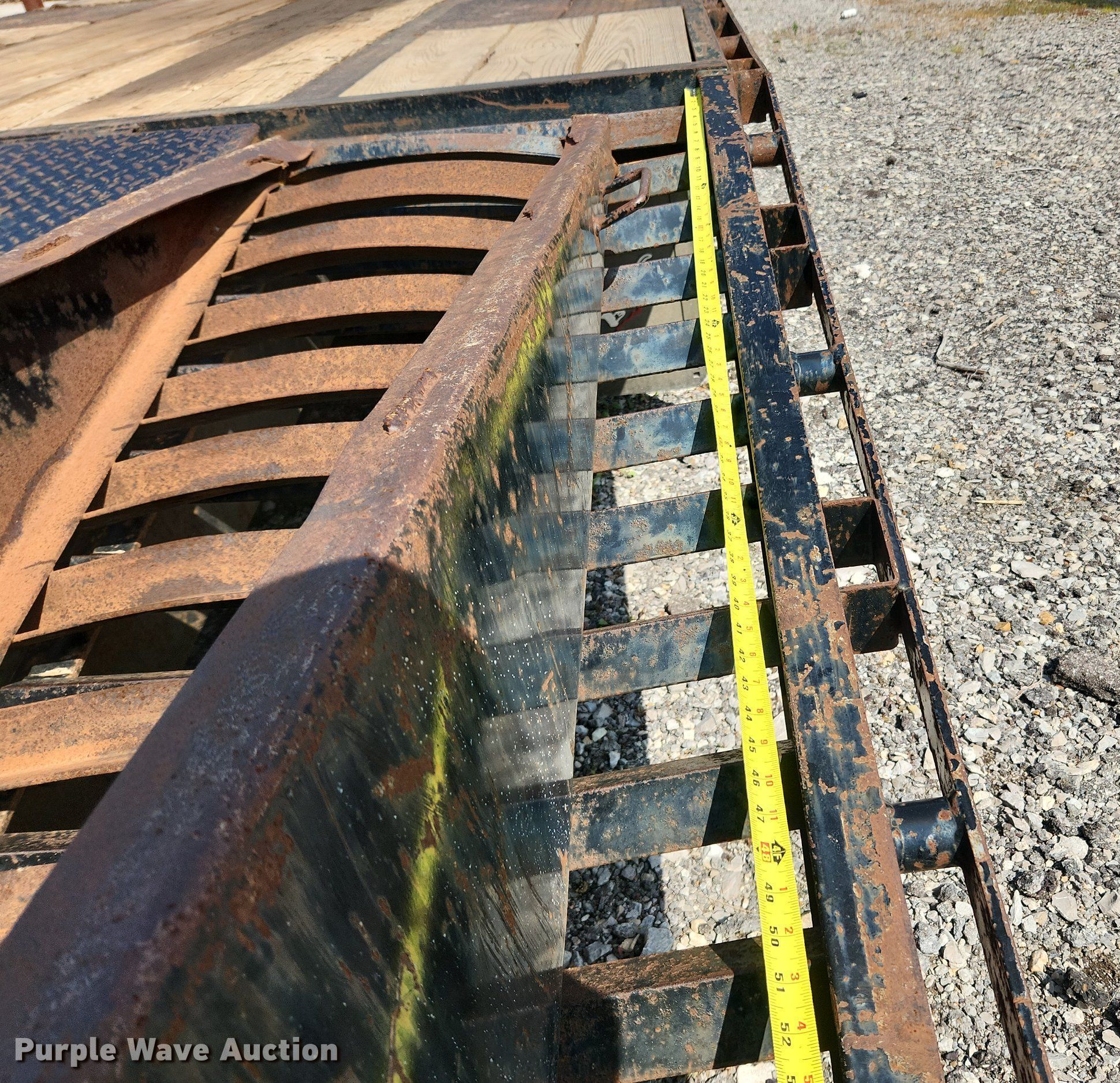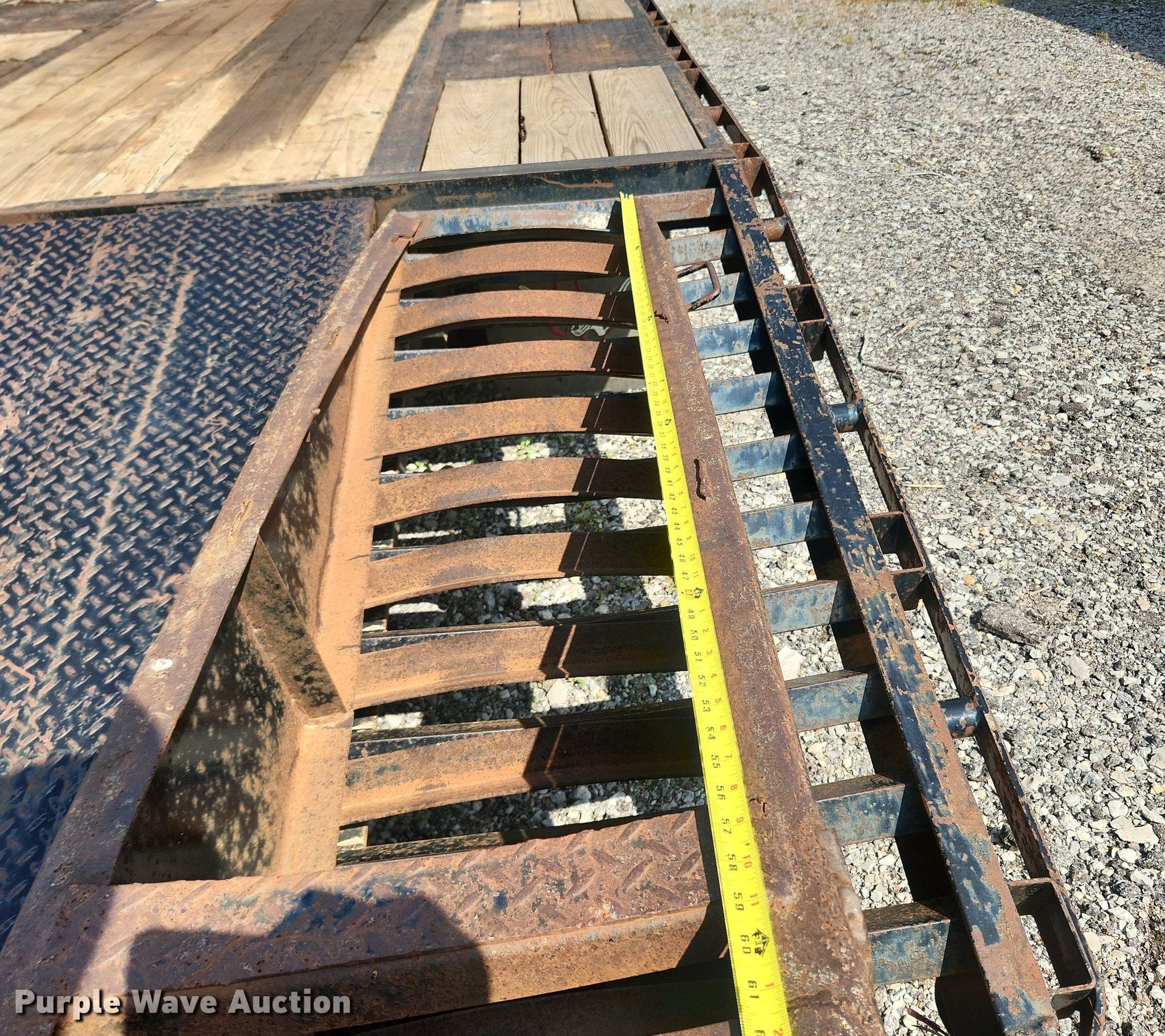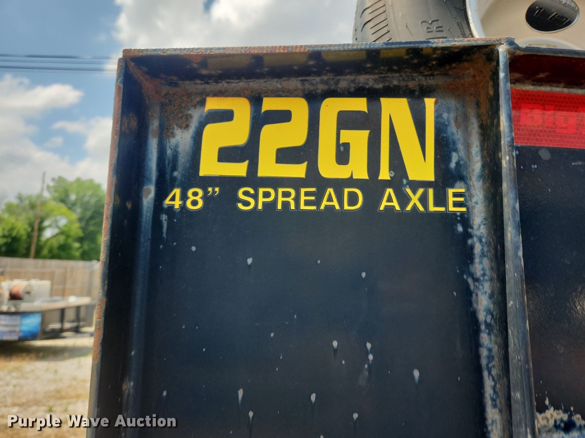 2013 Big Tex 22GN-28BK+5CP equipment trailer. VIN: 16VGX2824D2691978. Dimensions Overall: 42' L x 102" W, Deck: 28' L x 97" W, Tail length: 5', Ramps: Manual Length: 5'. Features Deck type: Wood. Chassis Hitch: Gooseneck, Landing gear: Dual, Suspension: Spring, Brakes: Electric, Axles: Tandem, GVWR: 22,500 lbs, GAWR: 10,000 lbs. Tires Steel wheels, Size: 225/90R16. Missouri title. Title distribution may be delayed up to 14 days from verification of funds. Excel Utility Contractors, LLC. Pacific, MO 63069