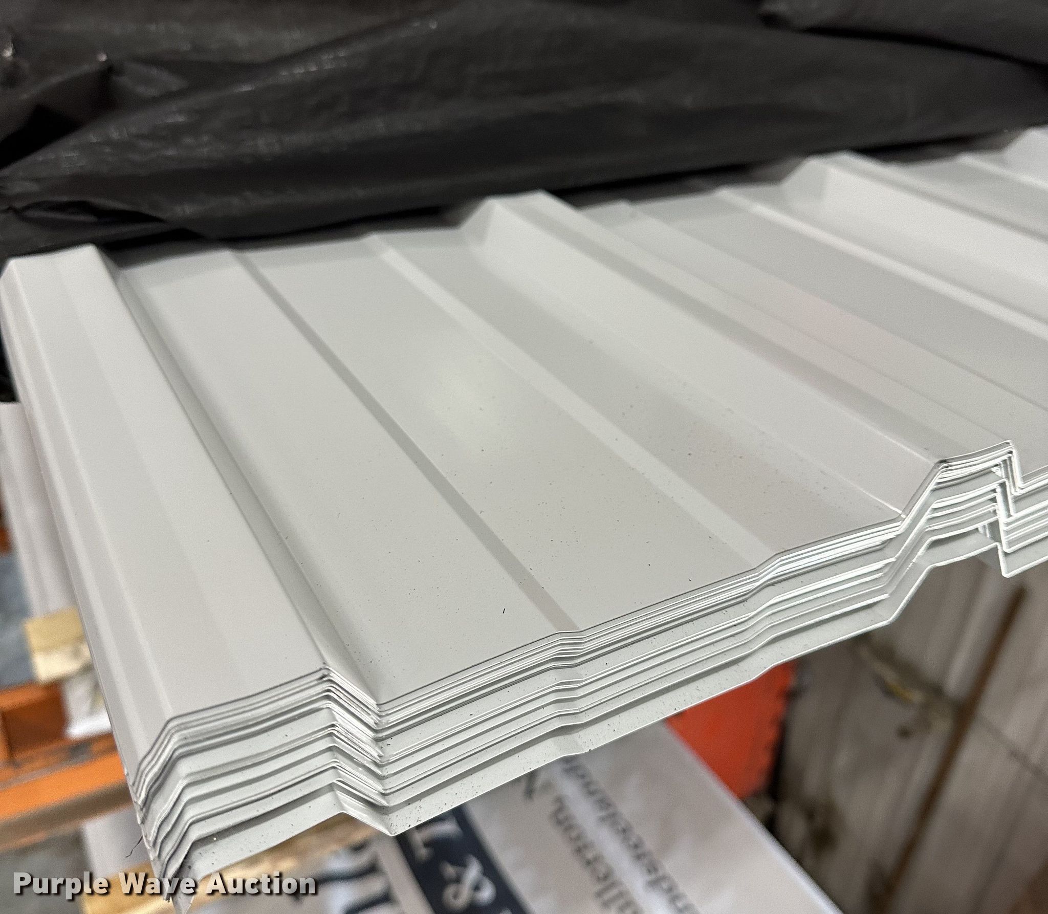 Purple Wave is selling a used Building Materials in North Dakota. This item is a (57) sheets of metal siding/roofing with the following: 19' 2" L x 36" W, (2) 18' 2" L x 36" W, (2) 17' 2" L x 36" W, (2) 16' 2" L x 36" W, (2) 15' 2" L x 36" W, (2) 14' 2" L x 36" W, (2) 13' 2" L x 36" W, (2) 12' 2" L x 36" W, (12) 11' 2" L x 36" W, (30) 3' 2" L x 36" W, A-Panels, 29 gauge, Color: White, Possible blemishes