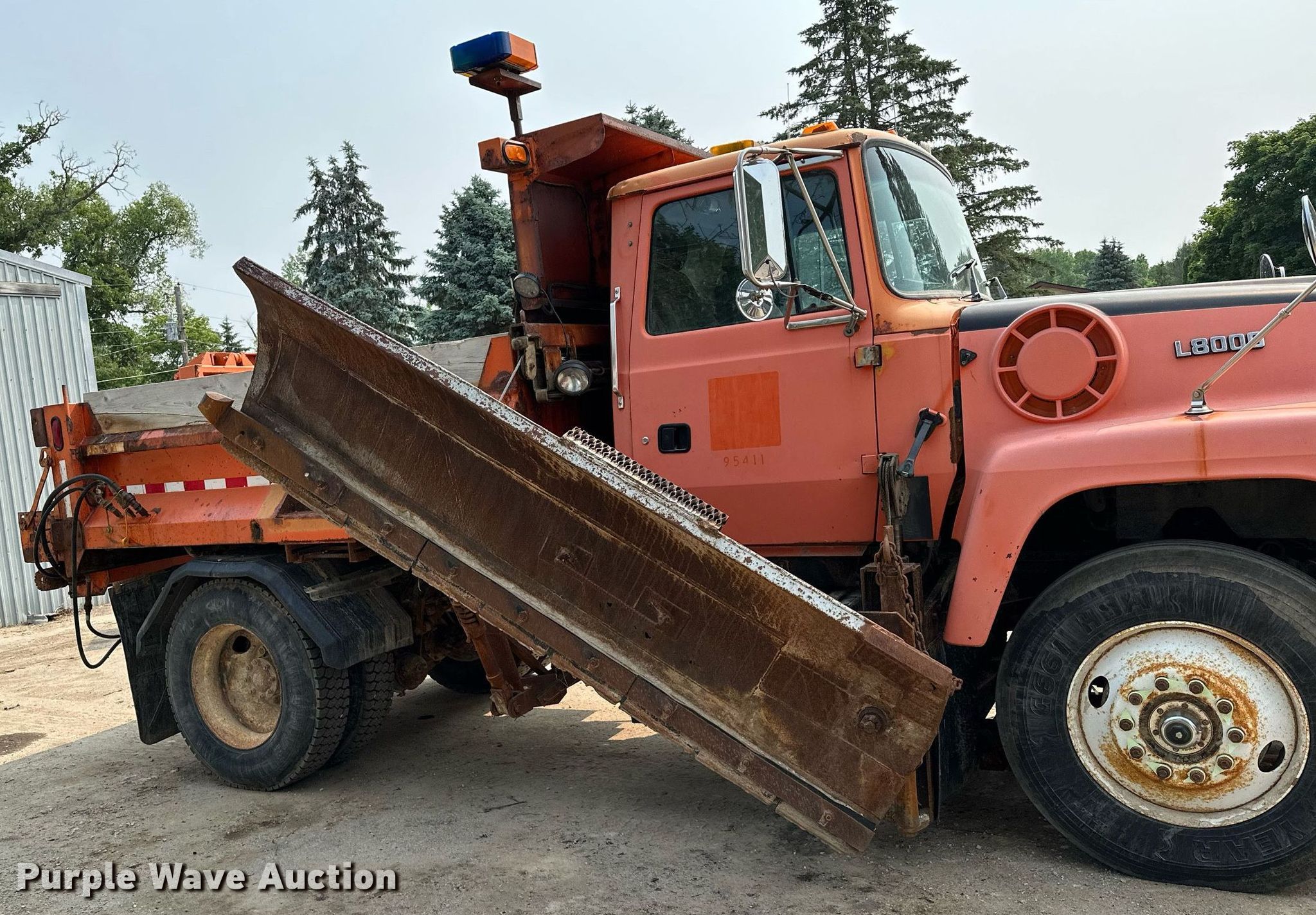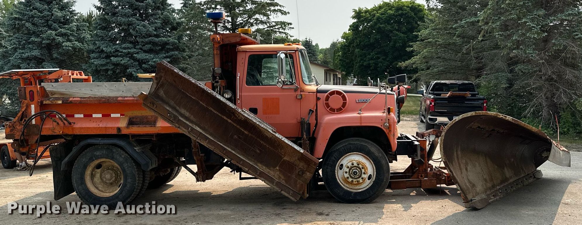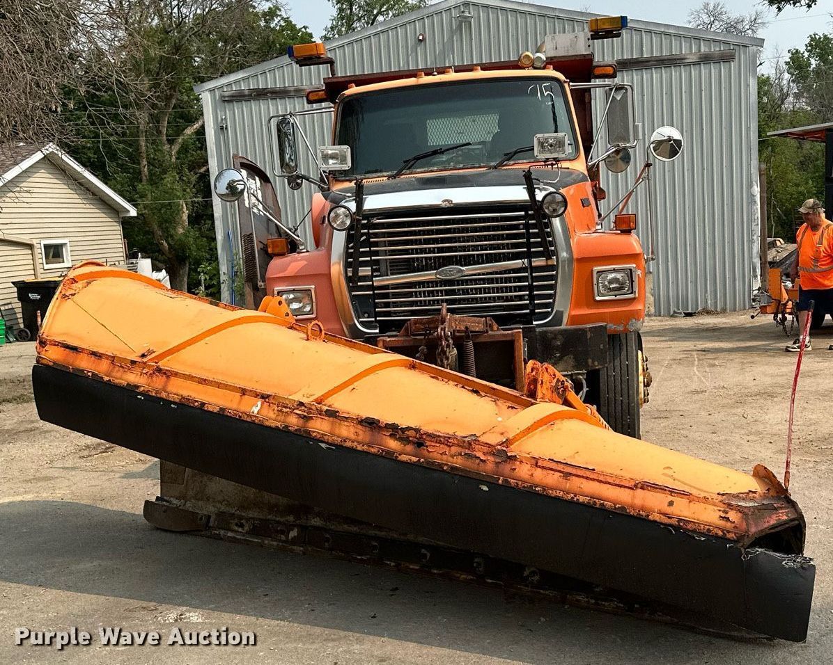 1995 Ford L8000 dump truck. Miles: 212,140 on odometer, Hours: 3,913 on meter, VIN: 1FDYK82E2SVA71500. Engine Cummins , Displacement: 8.3L, Cylinders: 6, Fuel type: Diesel, HP: 250. Transmission Automatic. Chassis Axles: Single, Differential lock: Inter-axle, Suspension: Spring, Brakes: Air, PTO, Front mount PTO, GVWR: 36,620 lbs FAWR: 14,060 lbs, RAWR: 22,560 lbs, Wheelbase: 162". Interior AC, Heat, Heated mirrors, Brake controller. Features Dump bed J-Craft, 10' L x 8' W, Side height: 24", Side board height: 10", Bed type: Steel, Ram: Single , End gate: Manual, Spreader Dickey john, Plow Falls, Width: 144", Wing plow Width: 108". Tires Size: 11R24.5. Minnesota title. Title distribution may be delayed up to 30 days from verification of funds. 4703 17th Street Southeast. Rochester, MN 55904