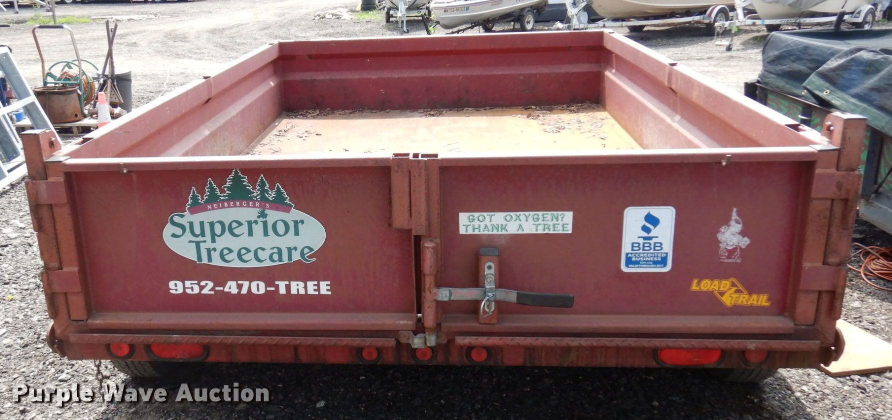 2007 Load Trail dump trailer. Dimensions. Overall: 14' 4" L x 96" W, Body: 10' L x 78' W, Side height: 1' 10", Ramps: 5'. Features Body type: Steel, Ram: Single, End gate: Manual, Trailer controls. Chassis Ball hitch: 2", Landing gear: Single, Suspension: Spring, Brakes: Electric, Axles: Tandem. Tires Steel wheels, Size: ST205/75R15. Minnesota title. 5540 County road 151. Mound , MN 55364