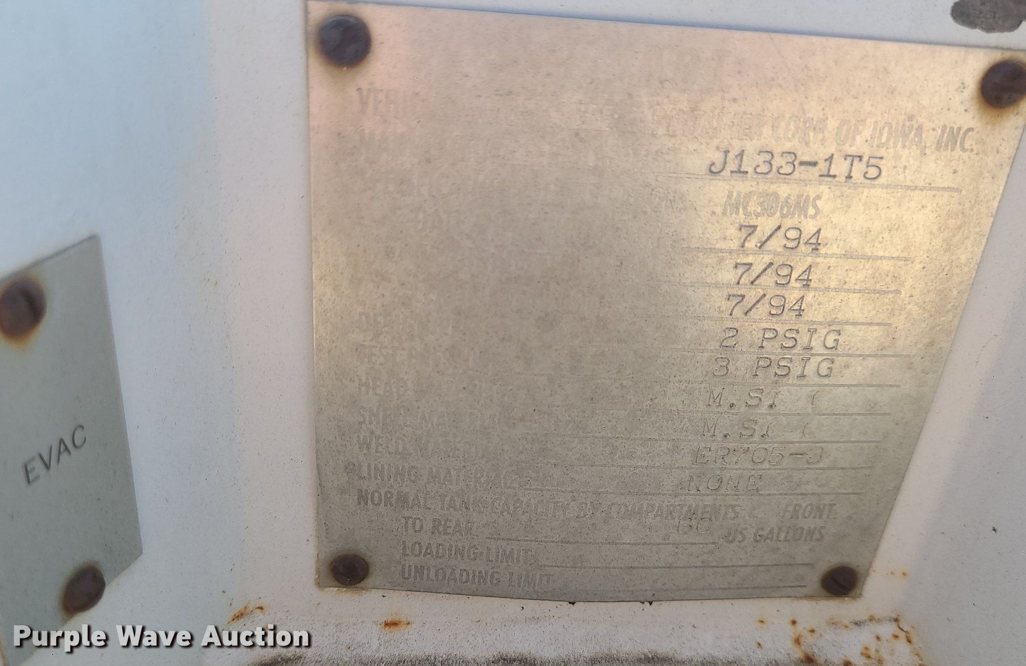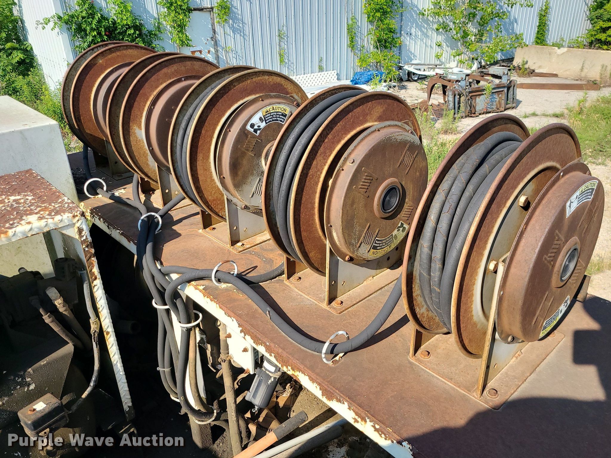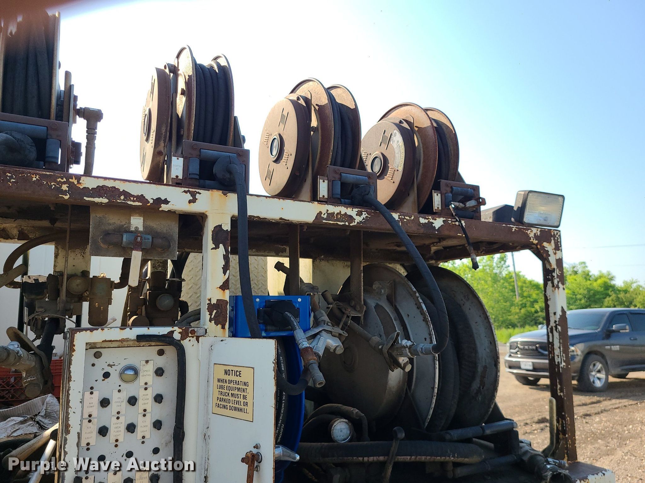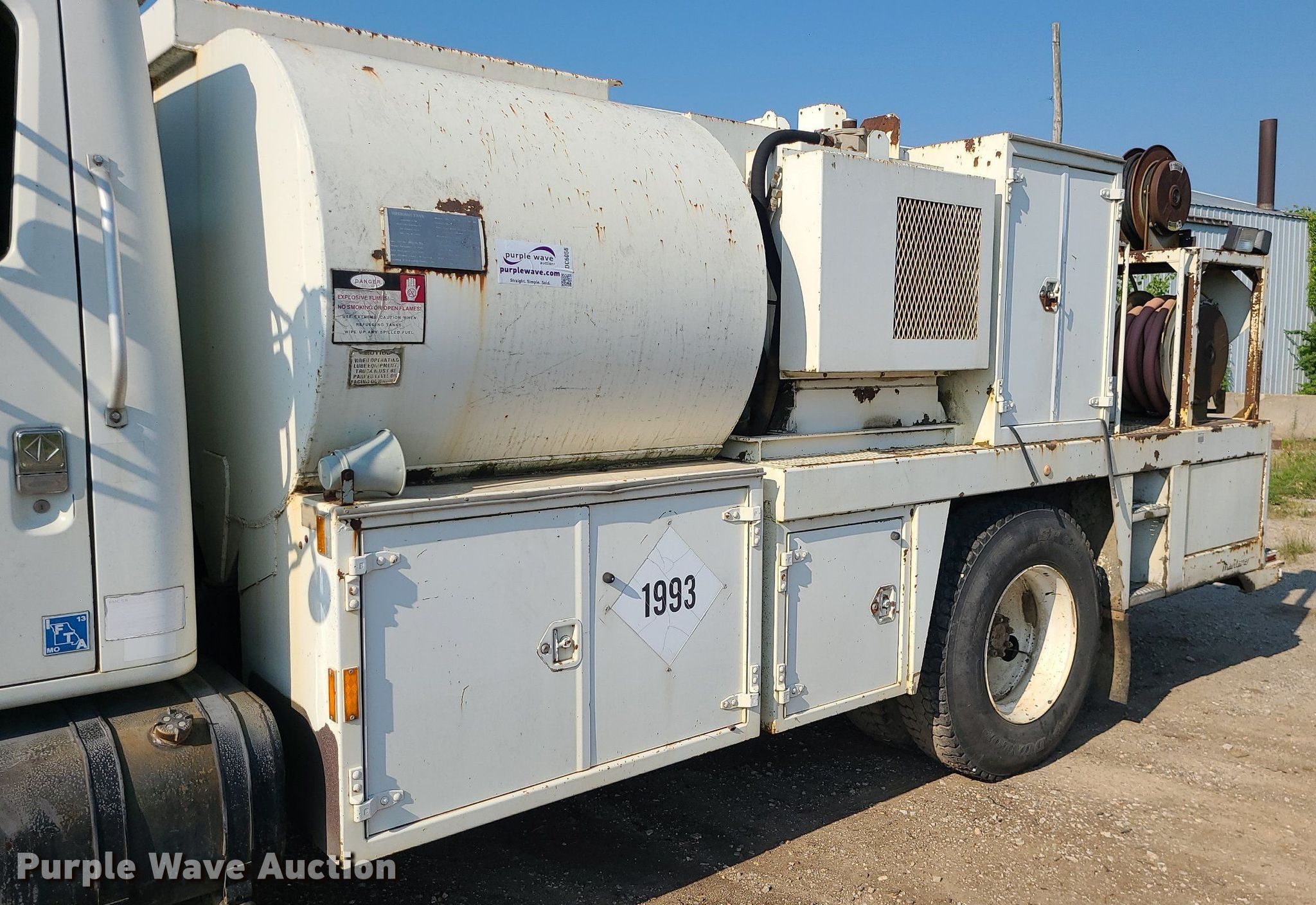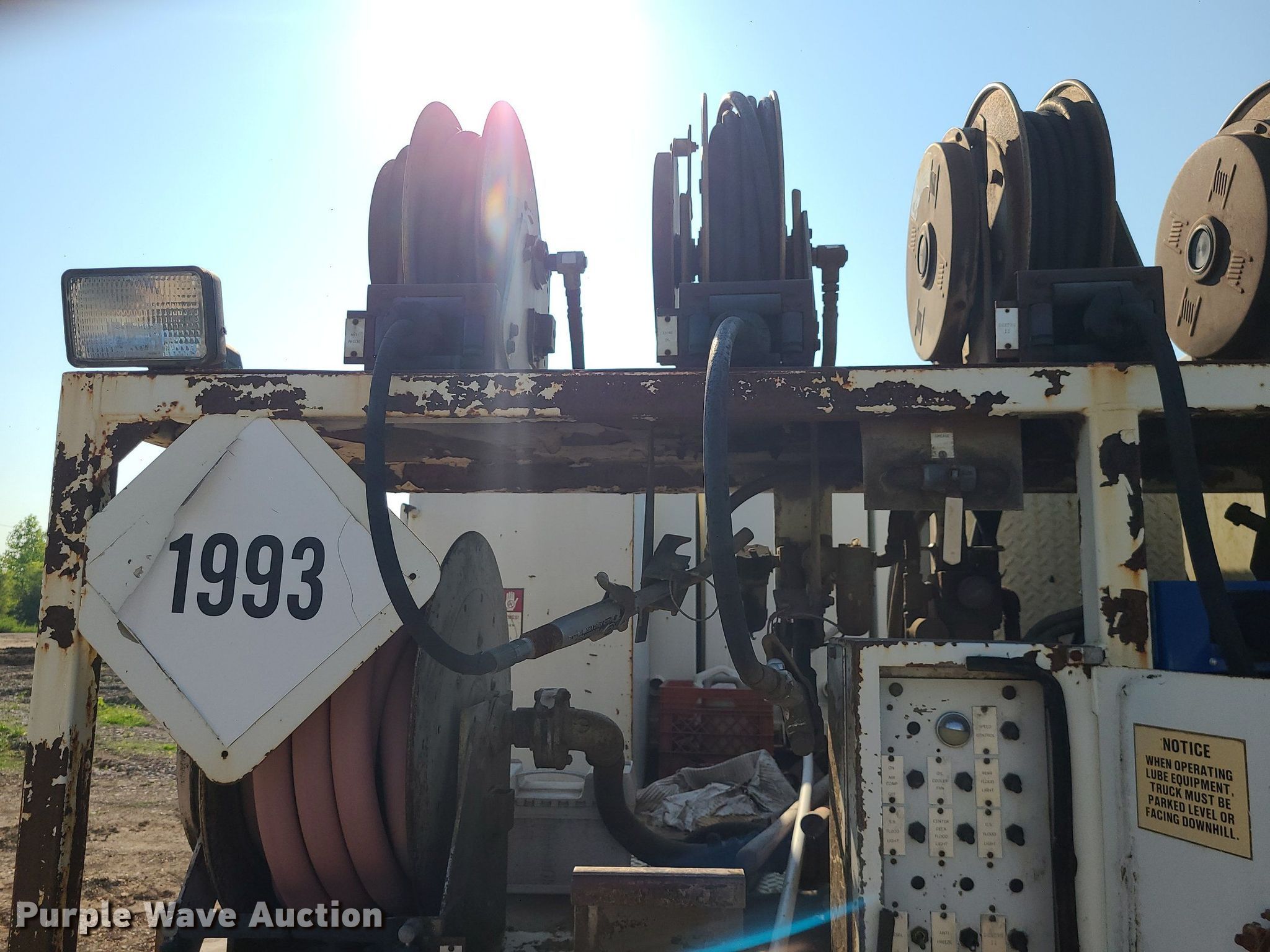 1991 International 4900 fuel truck. Miles: 109,570 on odometer, VIN: 1HTSDZ7NXMH353536. Engine International DT466, Displacement: 7.6L, Cylinders: 6, Fuel type: Diesel. Transmission Manual. Chassis Axles: Single, Suspension: Spring, Brakes: Air, PTO. Interior AC, Heat. Features Bed / tank Maintainer, 15' L x 96" W, Hose reels: 8, Nozzles, Oil/lube reservoirs Hydraulic fluid, Grease, Motor oil, Used oil, Air compressor. Tires Size: 11R22.5. Notes Dead battery, Non-operational PTO pump, Non-operational AC. Missouri title. Title distribution may be delayed up to 14 days from verification of funds. Pink Hill Acres. 3500 Northwest Highway 7. Blue Springs, MO 64014