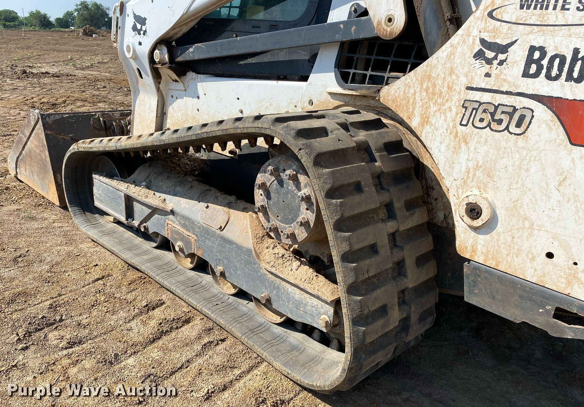 Purple Wave is selling a used Tracked Skid Steer Loader in Oklahoma. This item is a 2017 Bobcat T650 tracked skid steer loader with the following: Hours: 2,717 on meter, Serial: ALJG20907