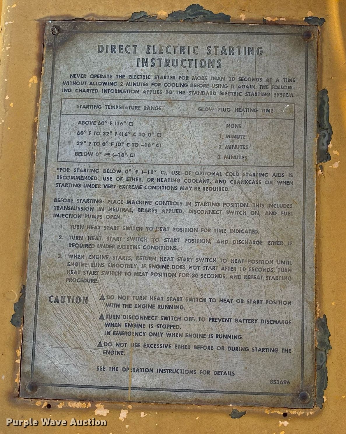 1973 Caterpillar D7F dozer. Serial: 94N5278. Engine Caterpillar 3306, Serial: 3N1273, Cylinders: 6, Fuel type: Diesel. Transmission Direct-drive. Operators station Canopy, Steering: Clutch brake. Features Screen guards, Sweeps, Dozer blade Type: Straight, Dual-tilt, Width: 154" W, Attachments Winch Caterpillar 1P7526, Cable: 1", Serial: 29U351.. Tracks Width: 20", Grouser pads: Single. Notes Non-operational unit. IUOE Local 627 Training Fund. Stroud, OK 74079