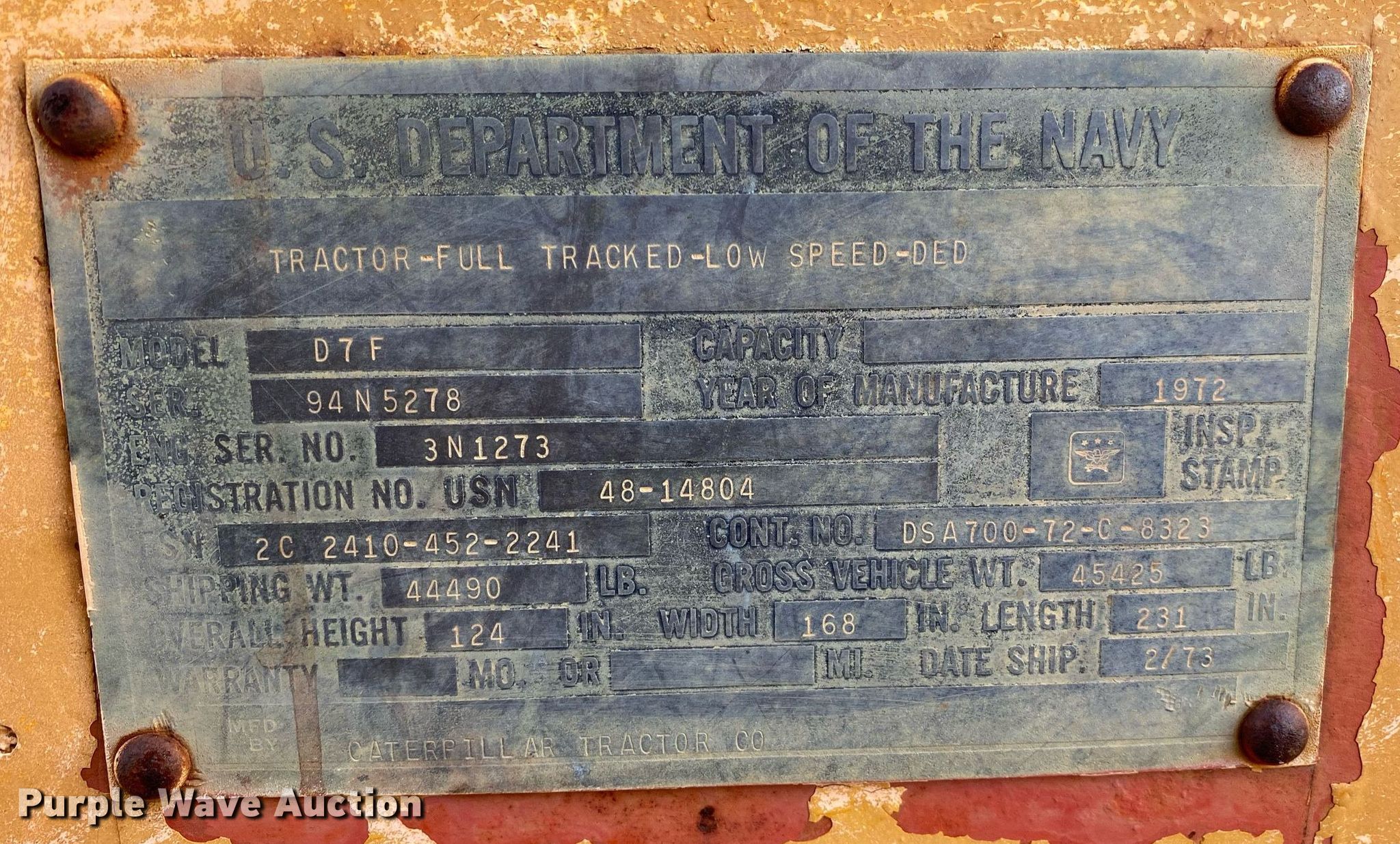 Purple Wave is selling a used Crawler Dozer in Oklahoma. This item is a 1973 Caterpillar D7F dozer with the following: Serial: 94N5278