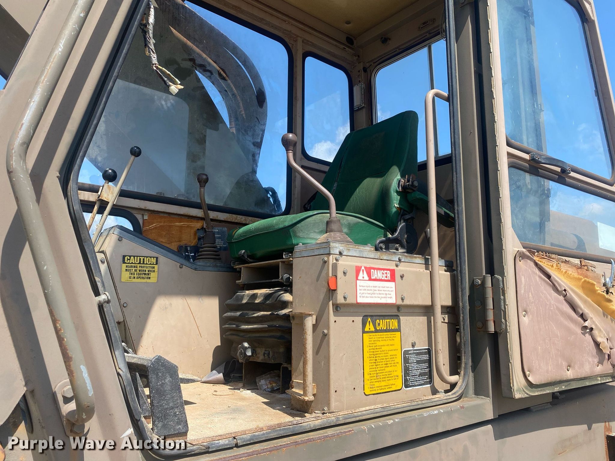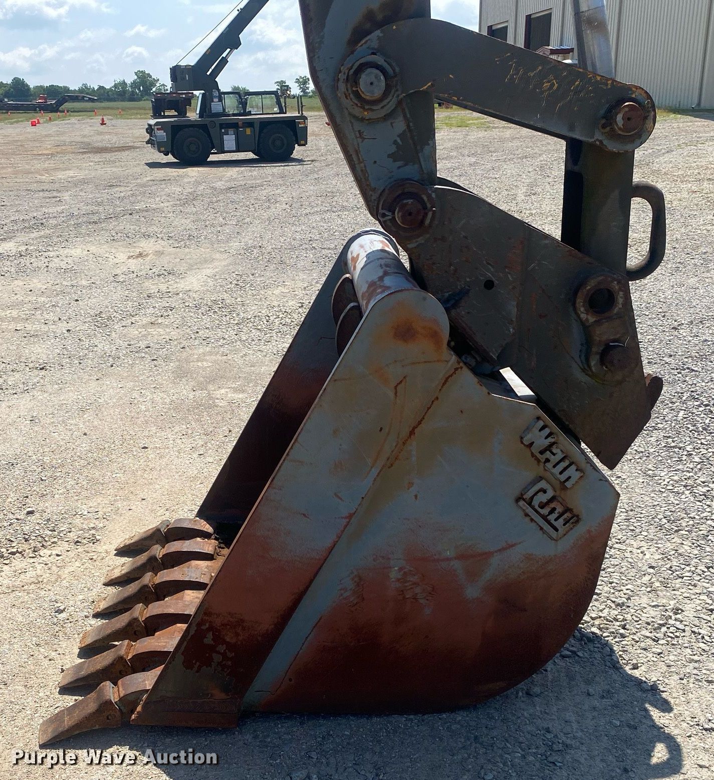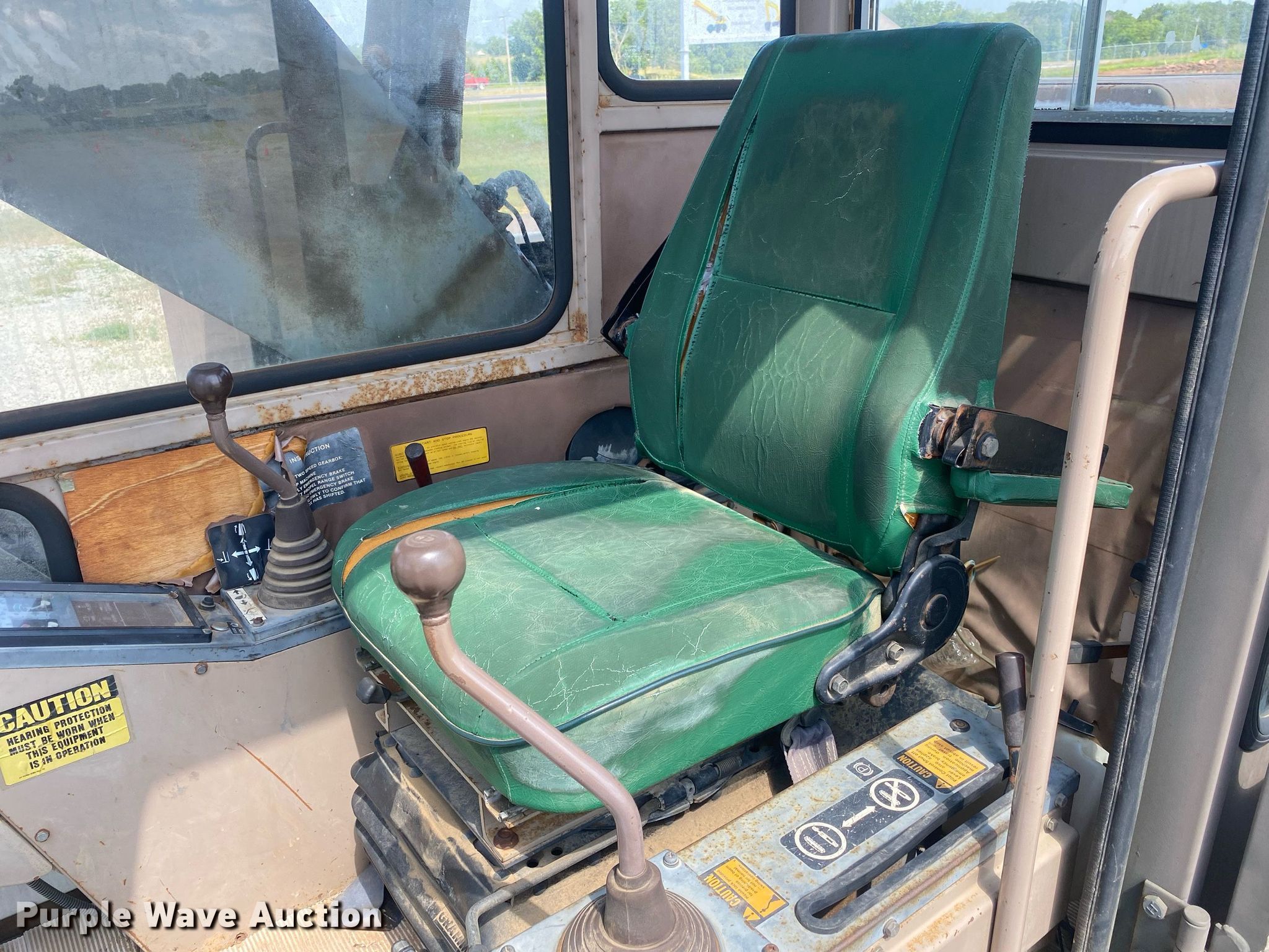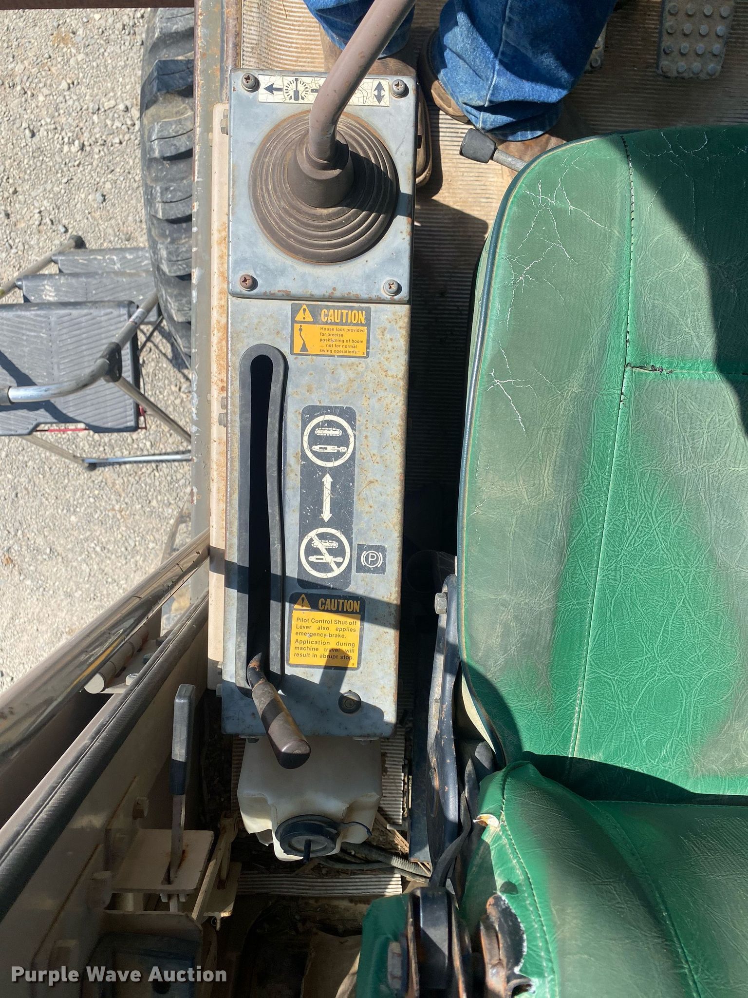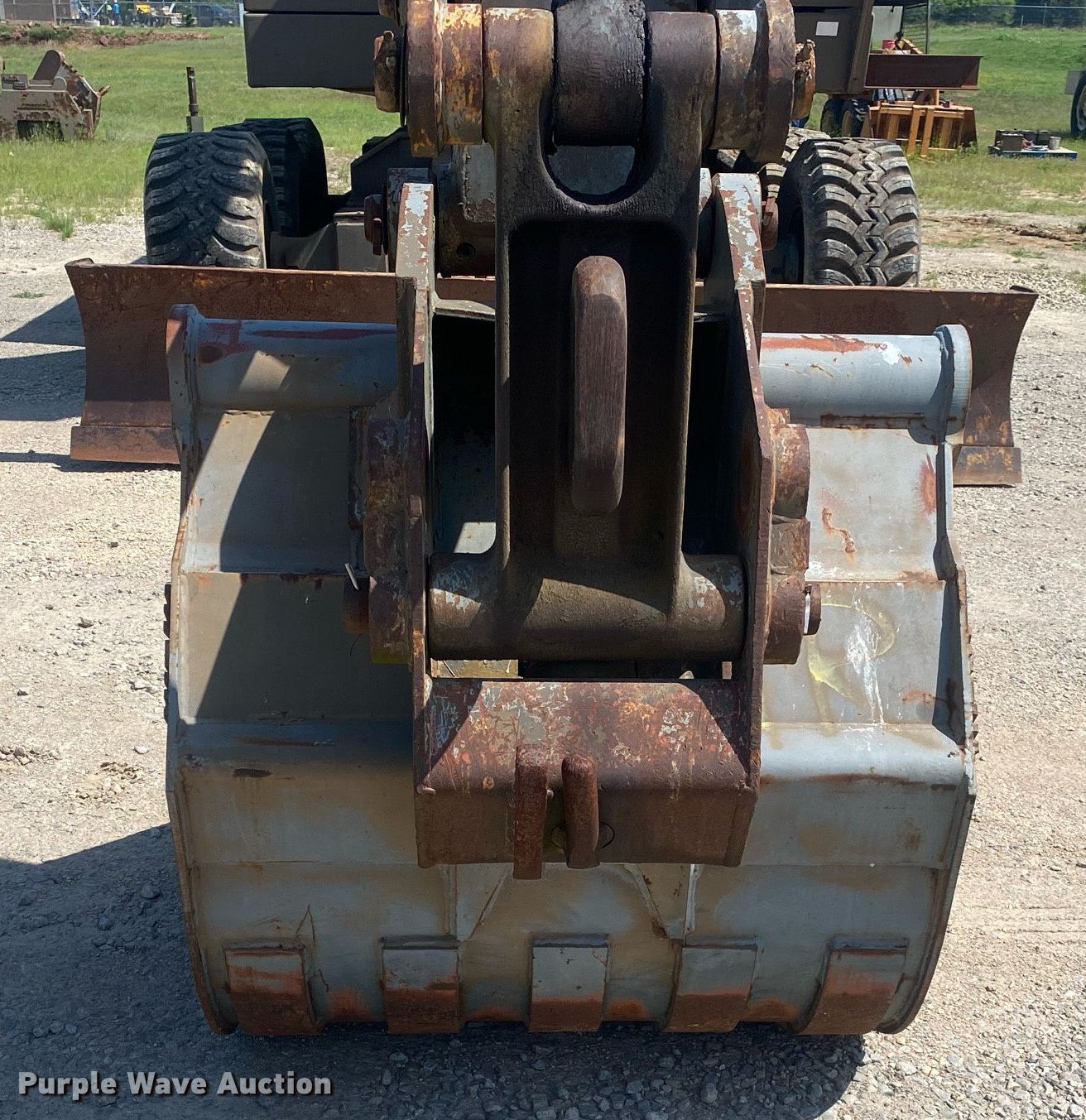 1987 John Deere 690CR wheeled excavator. Hours: 1,999 on meter, Serial: DW690CR513921. Engine John Deere 466TT-02, Serial: R66466T318312, Cylinders: 6, Fuel type: Diesel. Transmission Hydrostatic. Operators station Enclosed cab. Features Auxiliary hydraulics, Backfill blade Width: 128", Boom Standard, Stick Stick length: 95", Bucket Wain Ray, Width: 43", Teeth: 6, Bucket Wain Ray , Width: 26", Teeth: 4, Breaker Wain Ray, Bit: 17" L, Tamper Wain Ray, Plate width: 34". Tires Size: 18-19.5. Notes Flat tires, Unknown operating condition. IUOE Local 627 Training Fund. Stroud, OK 74079