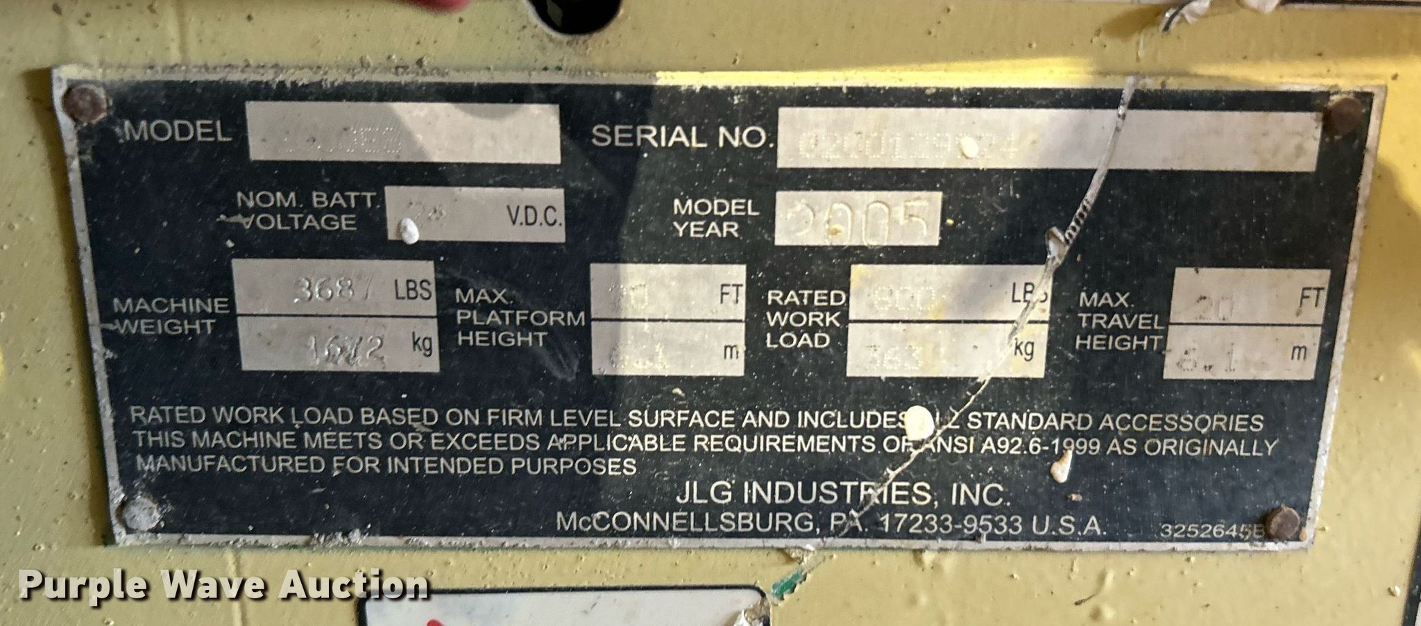 Purple Wave is selling a used Scissor or Vertical Lift in Oklahoma. This item is a 2005 JLG 2030ES scissor lift with the following: Hours: 377 on meter, Serial: 0200129924