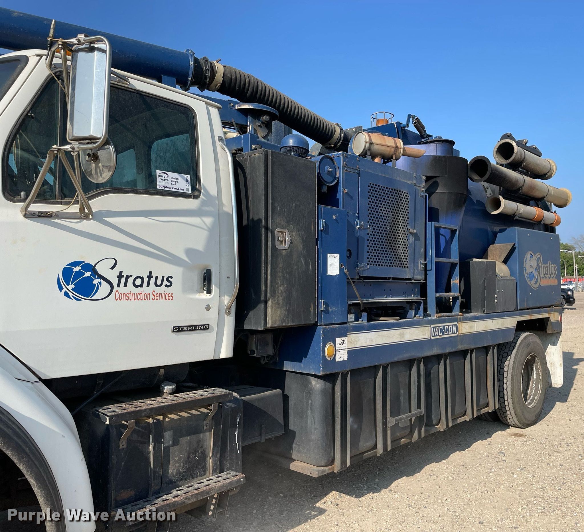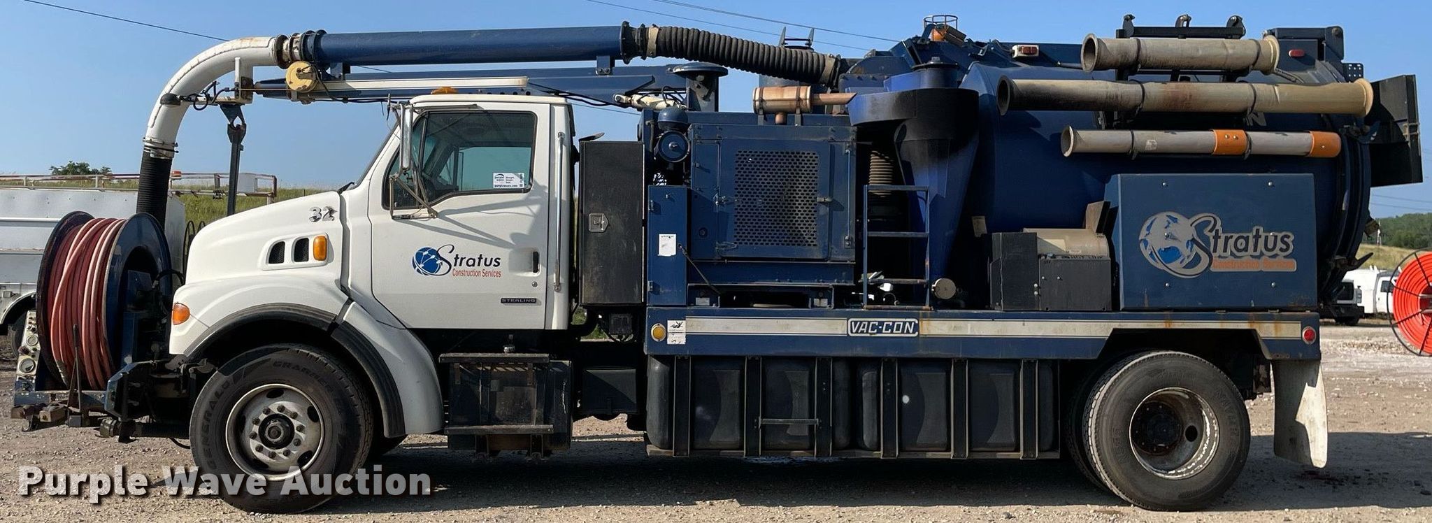 2003 Sterling L7500 vacuum truck. Miles: 106,077 on odometer, Hours: 12,454 on meter, VIN: 2FZAATAKX3AL90880, Unit #: 32. Engine Caterpillar 3126, Displacement: 7.2L, Cylinders: 6, Fuel type: Diesel. Transmission Automatic. Chassis Axles: Single, Suspension: Spring, Brakes: Air, PTO, GVWR: 41,000 lbs. Interior AC, Heat, Cruise control. Features Tank bed Vac Con PD3690LHA, Serial: 08033477, Rear outlet: 6", Engine Cummins , Cylinders: 4, Fuel type: Diesel, Vacuum pump Roots 824RCS, Water heater Hydrotek CPHL5DC, PSI: 4000, Hose reel Front, Hydraulic, Diameter: 1", Length: 600', Telescopic boom Diameter: 8", Remote control. Tires Front: 385/65/R22.5, Rear: 11R22.5. Notes Radiator leak. Illinois title. Title distribution may be delayed up to 14 days from verification of funds. Stratus Construction Services. 4319 North Main Street Access Road 8. East Peoria, IL 61611