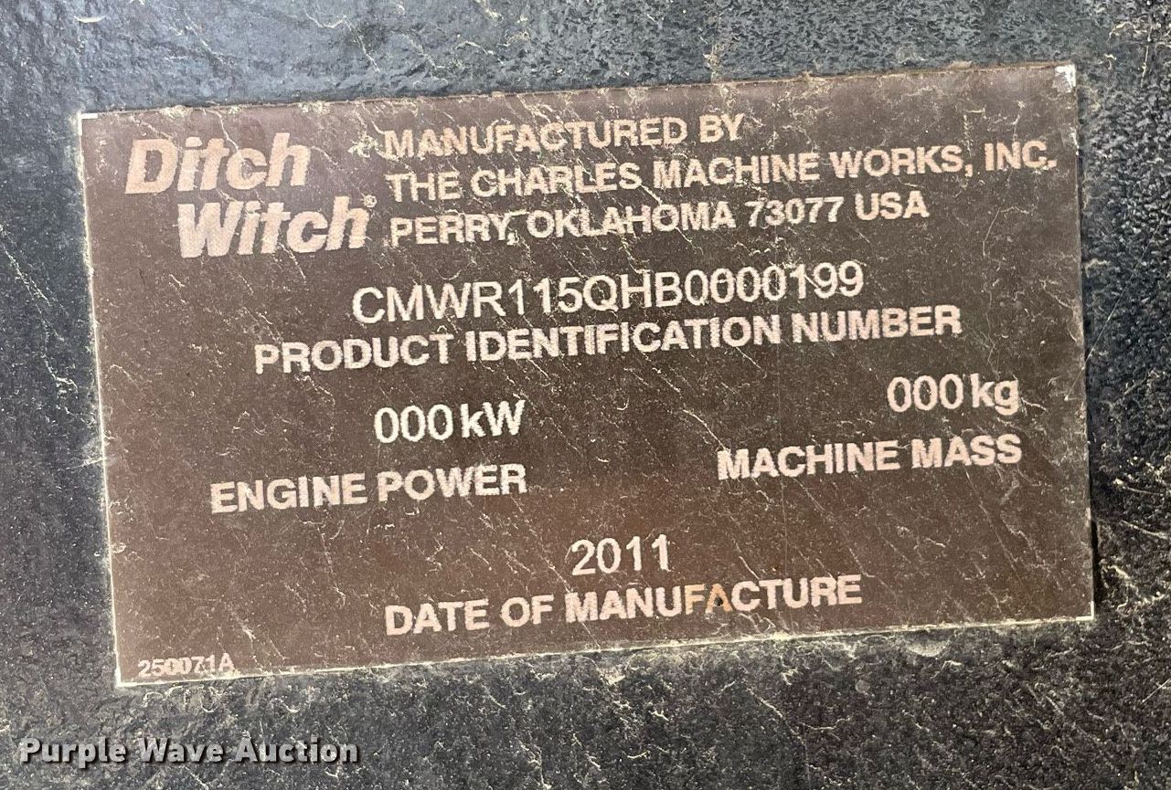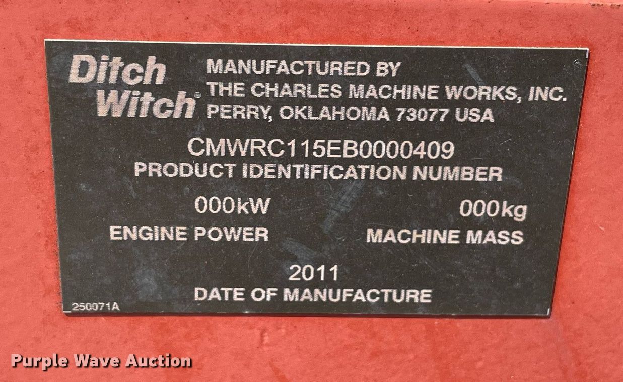 Purple Wave is selling a used Cable Plow in Illinois. This item is a 2011 Ditch Witch RT115 Quad vibratory cable plow with the following: Hours: 64 on meter, Serial: CMWR115QHB0000199, Unit #: TR5110