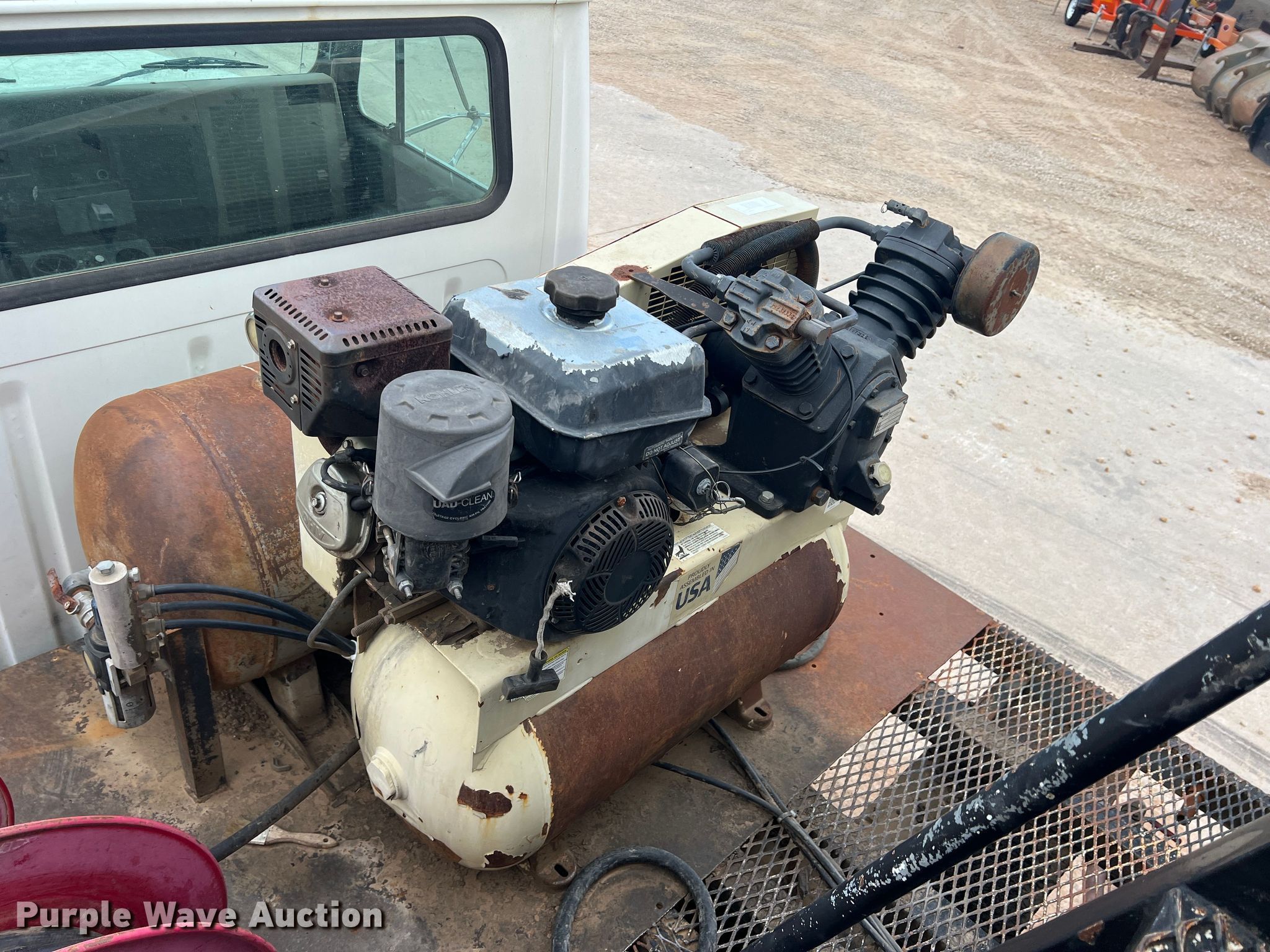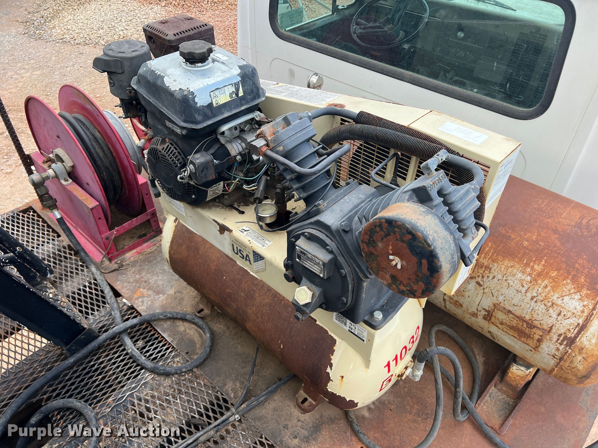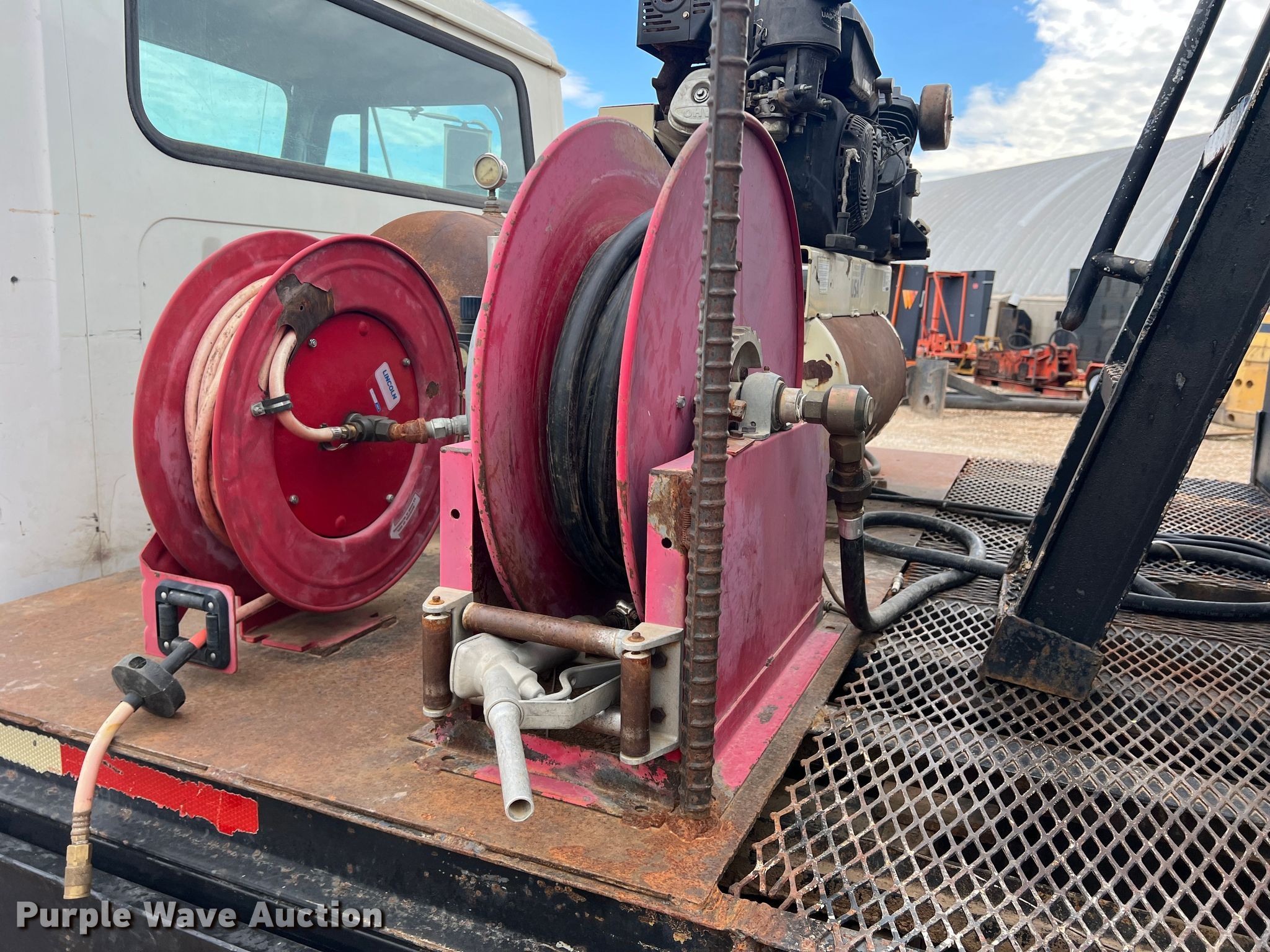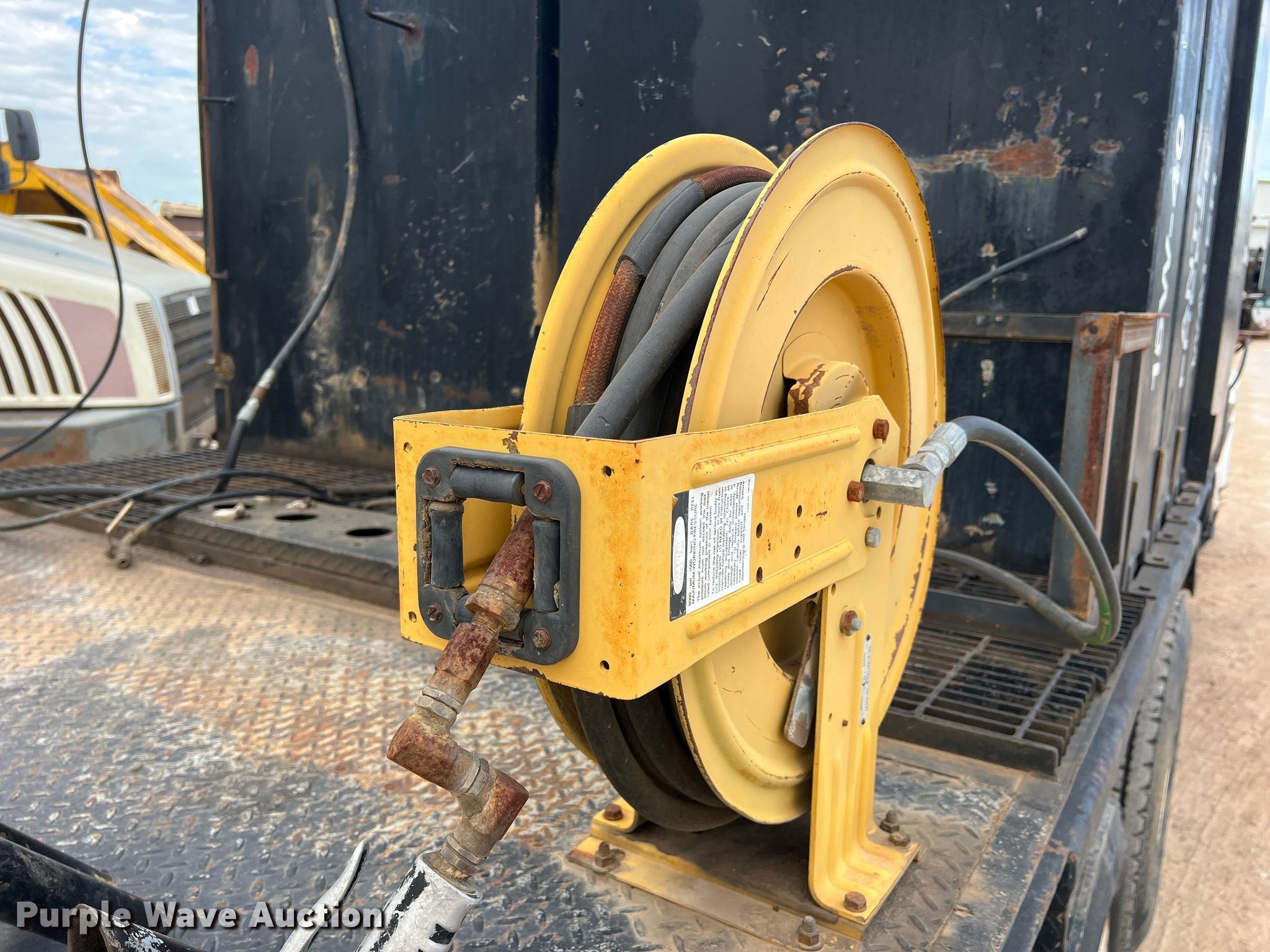 1995 International 4900 fuel / lube truck. Miles: 314,715 on odometer, VIN: 1HTSDAAN3SH671389, Unit #: 3253. Engine Cylinders: 6, Fuel type: Diesel. Transmission Automatic. Chassis Axles: Tandem, Differential lock: Inter-axle, Suspension: Spring, Brakes: Air. Interior AC, Heat. Features Bed / tank 22' L x 8' W, Compartments: 7, Hose reels: 4, Nozzles, Oil/lube reservoirs Motor oil, Used oil, Water, Antifreeze, Diesel Capacity: Approx. 1000 gallons, Ingersoll Rand 2475 air compressor Capacity: 30 gallons , Reserve tank capacity: Approx. 100 gallons, Kohler engine Cylinder: Single, Fuel type: Gas. Tires Front: 11R22.5, Rear: 295/75R22.5. Texas title. Title distribution may be delayed up to 14 days from verification of funds. Earth Builders, L.P.. 134 Farm To Market Rd 2264. Decatur, TX 76234