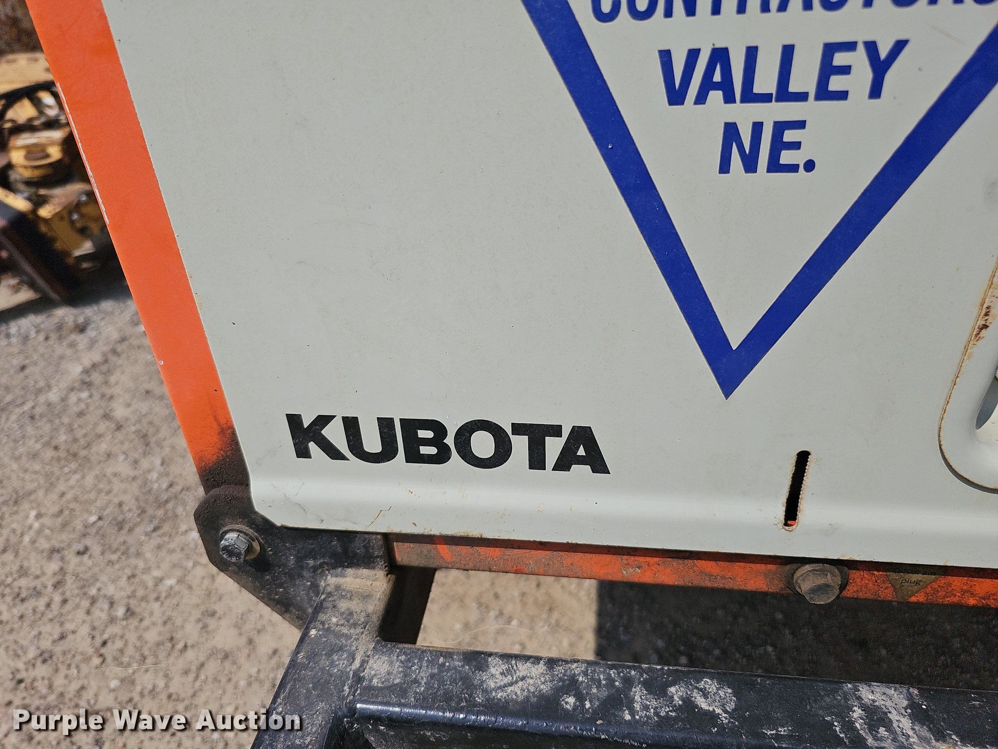 Kubota GL-6500S generator. Serial: 5222963. Engine Low-Boy ZB600-GL-S, Cylinders: 2, Fuel type: Diesel. Features Generator Electric start, Fuel tank, (3) 120v plugs, (2) 240v plugs. Trailer Suspension: Spring, Axles: Single, Tire size: 175/80R13. Notes Engine issues, weak, Non-operational hour meter , Non-operational unit. Transfer of ownership documentation will be a bill of sale. Valley Corp. 28001 Ida Circle. Valley, NE 68064