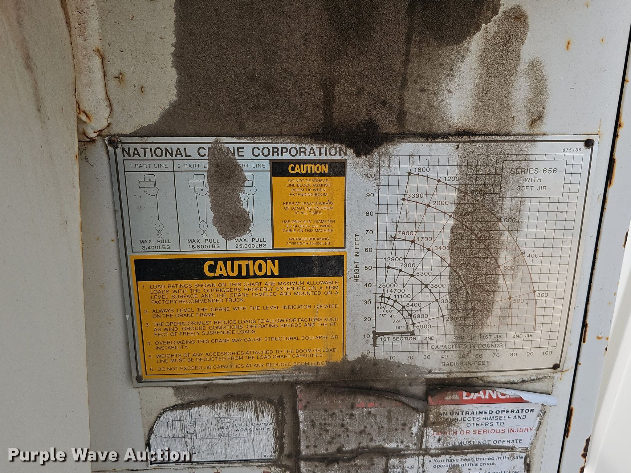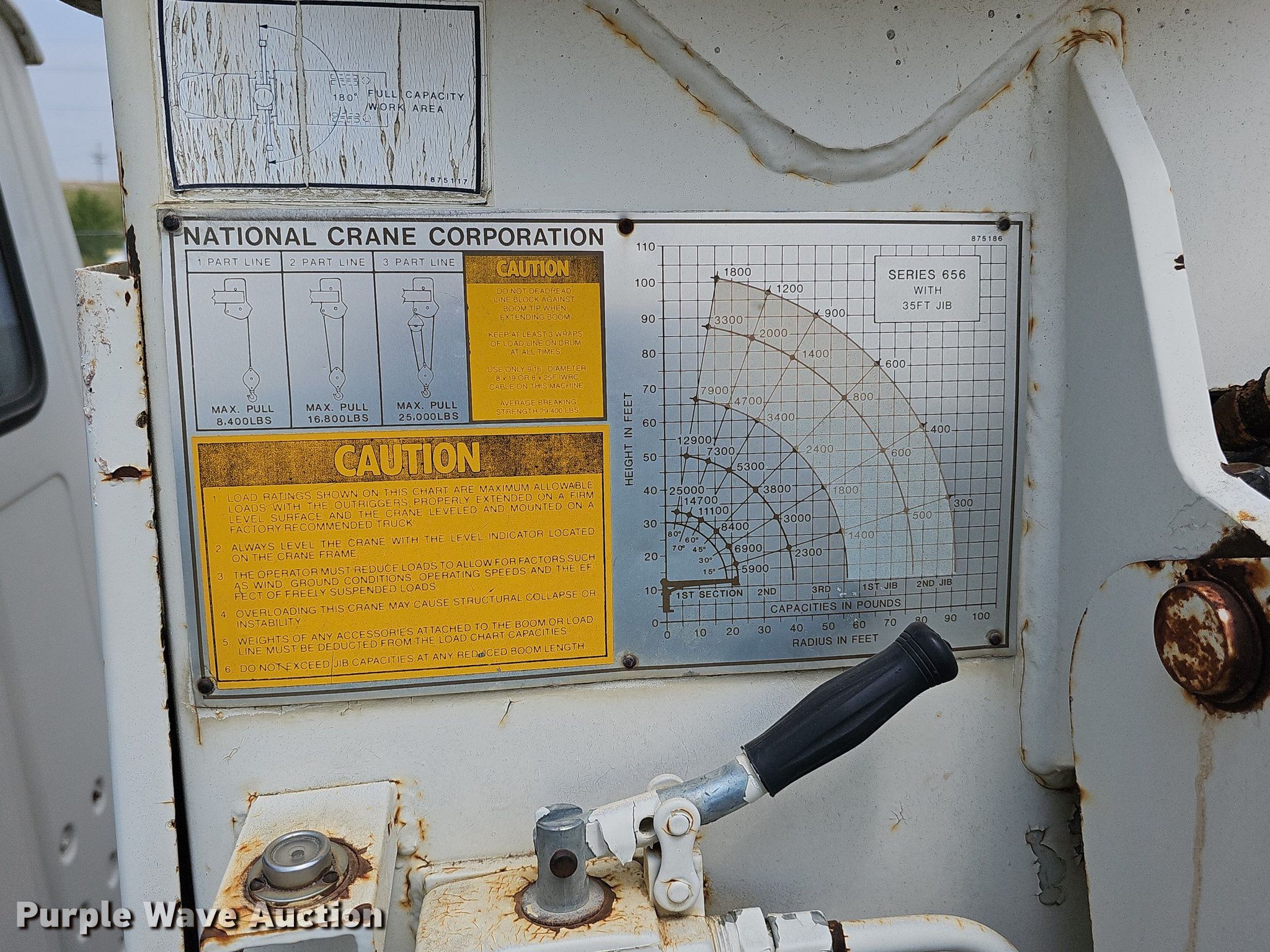1982 Ford 8000 crane truck. Miles: 38,230 on odometer, Hours: 2,902 on meter, VIN: 1FDYW80U3CVA47657. Engine Caterpillar 3208, Displacement: 10.4L, Cylinders: 8, Fuel type: Diesel. Transmission Model: Roadranger, Manual, Speed: 13. Chassis Axles: Tandem, Suspension: Spring over walking beam, Brakes: Air, GVWR: 50,000 lbs, Wheelbase: 226". Interior Heat. Features Flatbed 18' L x 96" W, Crane National 656, Telescopic, Maximum boom length: 90' Sections: 3, Maximum lift capacity: 3,300 lbs, Jib: 20', Boom controls Ground, Remote control, Crane block Sheaves: 1, Capacity: 16,000 lbs, Lift chart. Tires Size: 11.00R20. Nebraska title. Valley Corp. 28001 Ida Circle. Valley, NE 68064