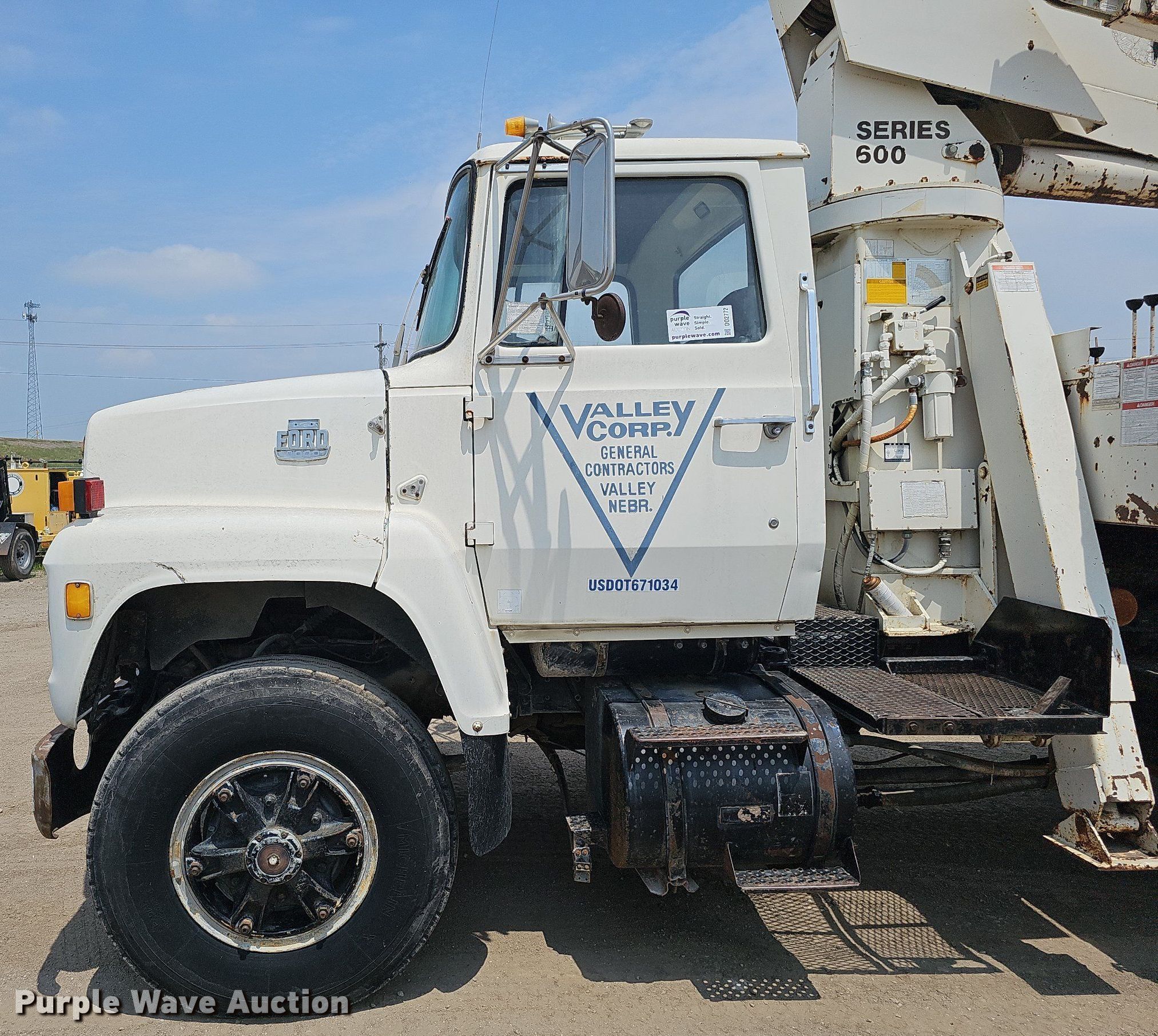 Purple Wave is selling a used Crane Truck in Nebraska. This item is a 1982 Ford 8000 crane truck with the following: Miles: 38,230 on odometer, Hours: 2,902 on meter, VIN: 1FDYW80U3CVA47657