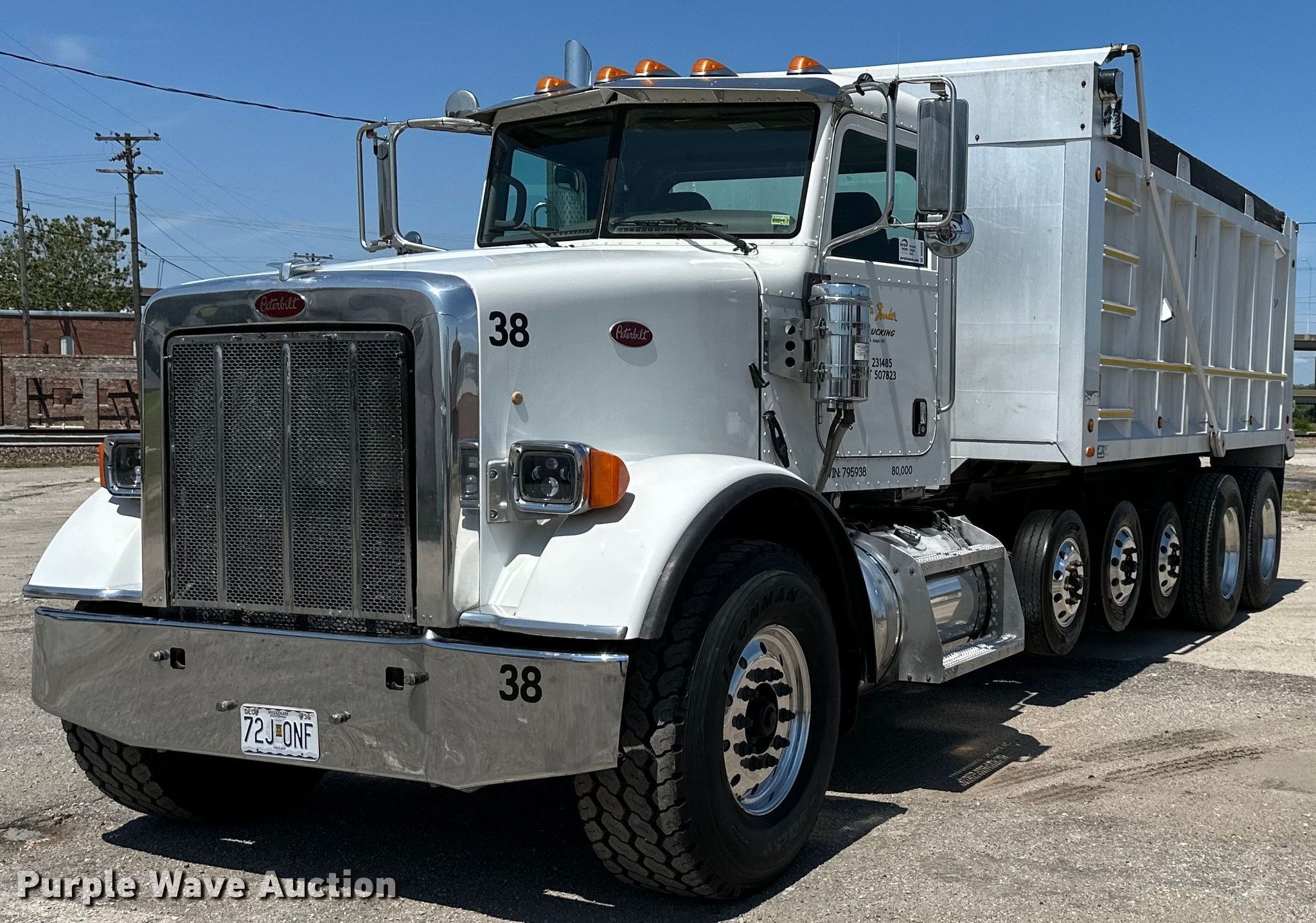 Purple Wave is selling a used Construction Dump Truck in Missouri. This item is a 2010 Peterbilt 365 dump truck with the following: Miles: 337,389 on odometer, Hours: 16,907 on meter, VIN: 1NPSXUEX5AD795938