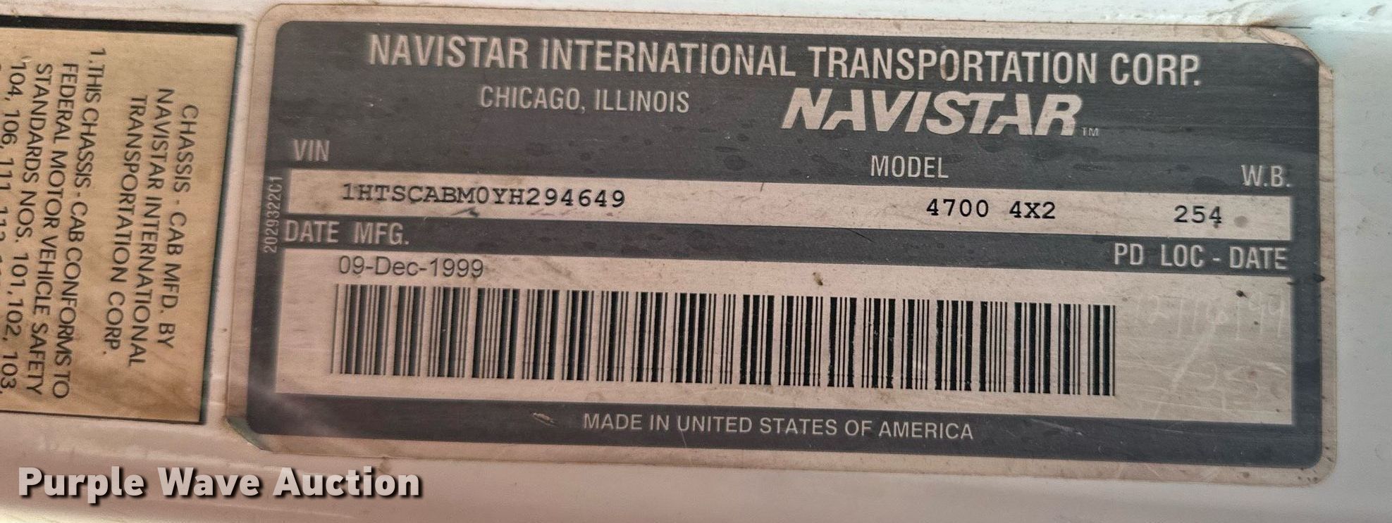 Purple Wave is selling a used Flat Bed Truck in Kansas. This item is a 2000 International 4700 flatbed truck with the following: Miles: 239,724 on odometer, VIN: 1HTSCABM0YH294649