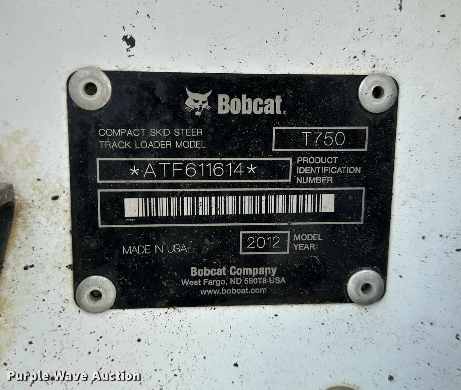 Purple Wave is selling a used Tracked Skid Steer Loader in Kansas. This item is a 2012 Bobcat T750 tracked skid steer loader with the following: Hours: 4,828 on meter, Serial: ATF611614