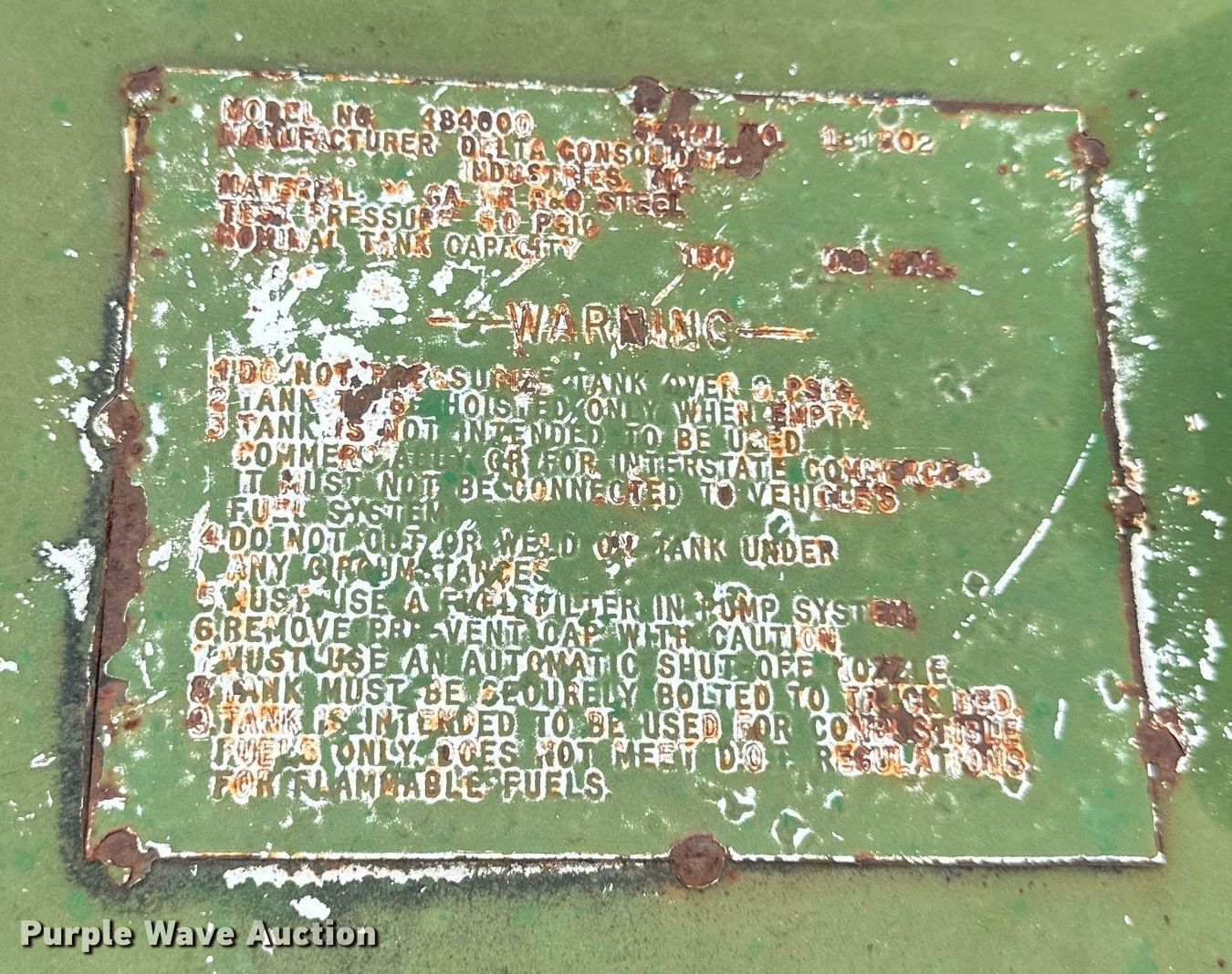 100 gallon fuel tank with containment has sold in Topeka, Kansas for $165. Item DO5067 sold on July 20th, 2023.