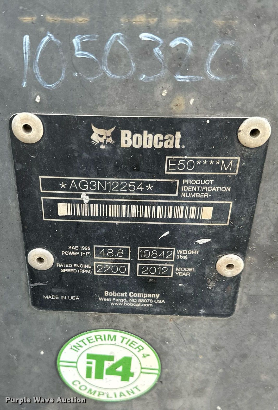 Purple Wave is selling a used Mini Excavator in Kansas. This item is a 2012 Bobcat E50 mini excavator with the following: Hours: 4,540 on meter, Serial: AG3N12254