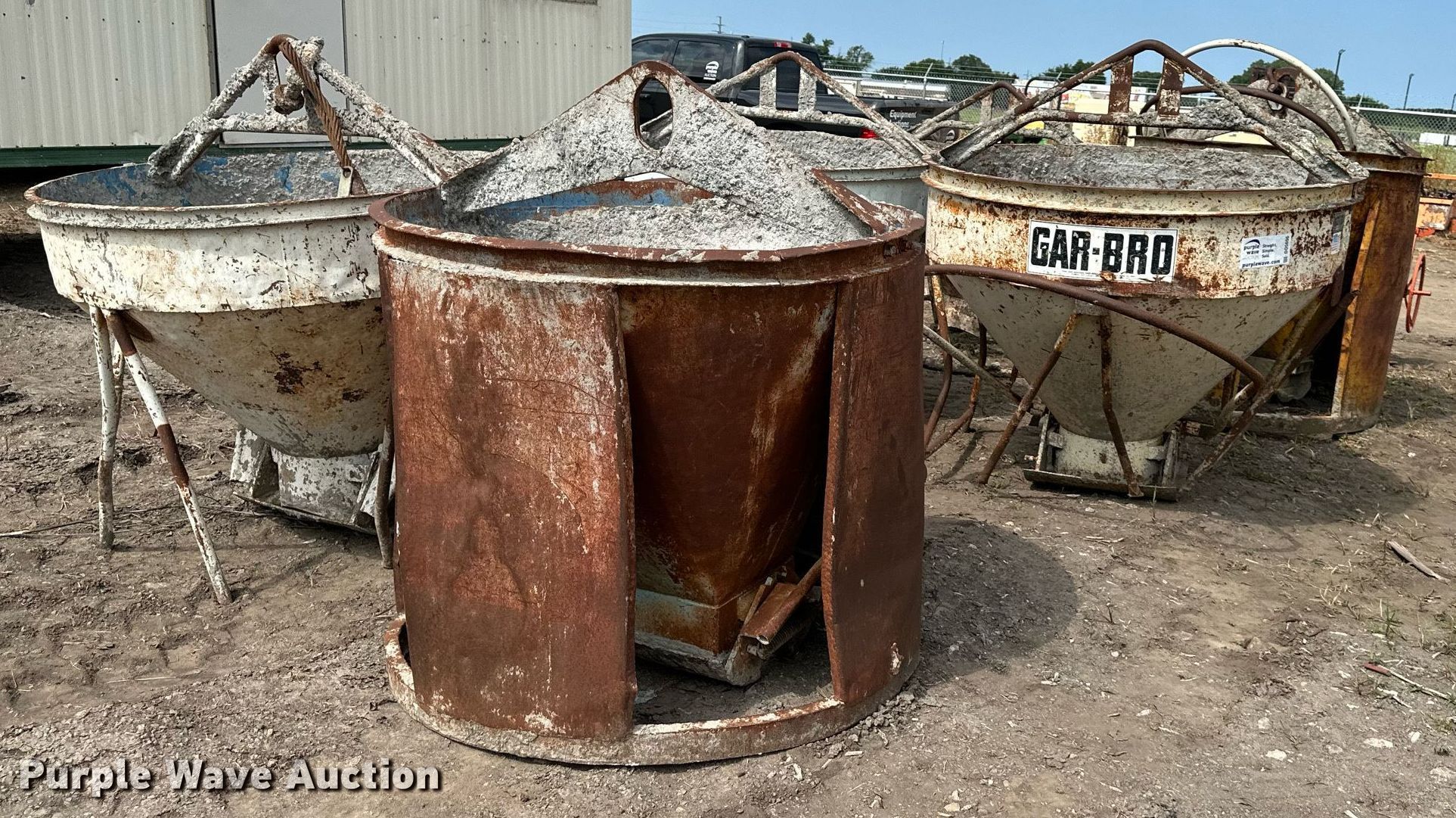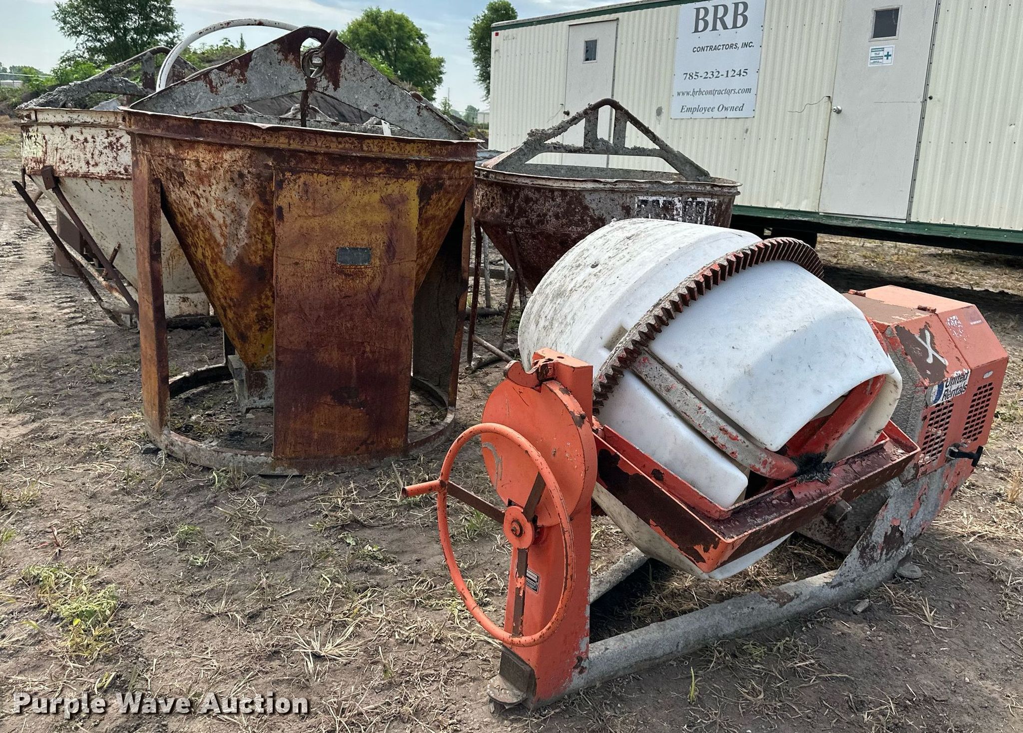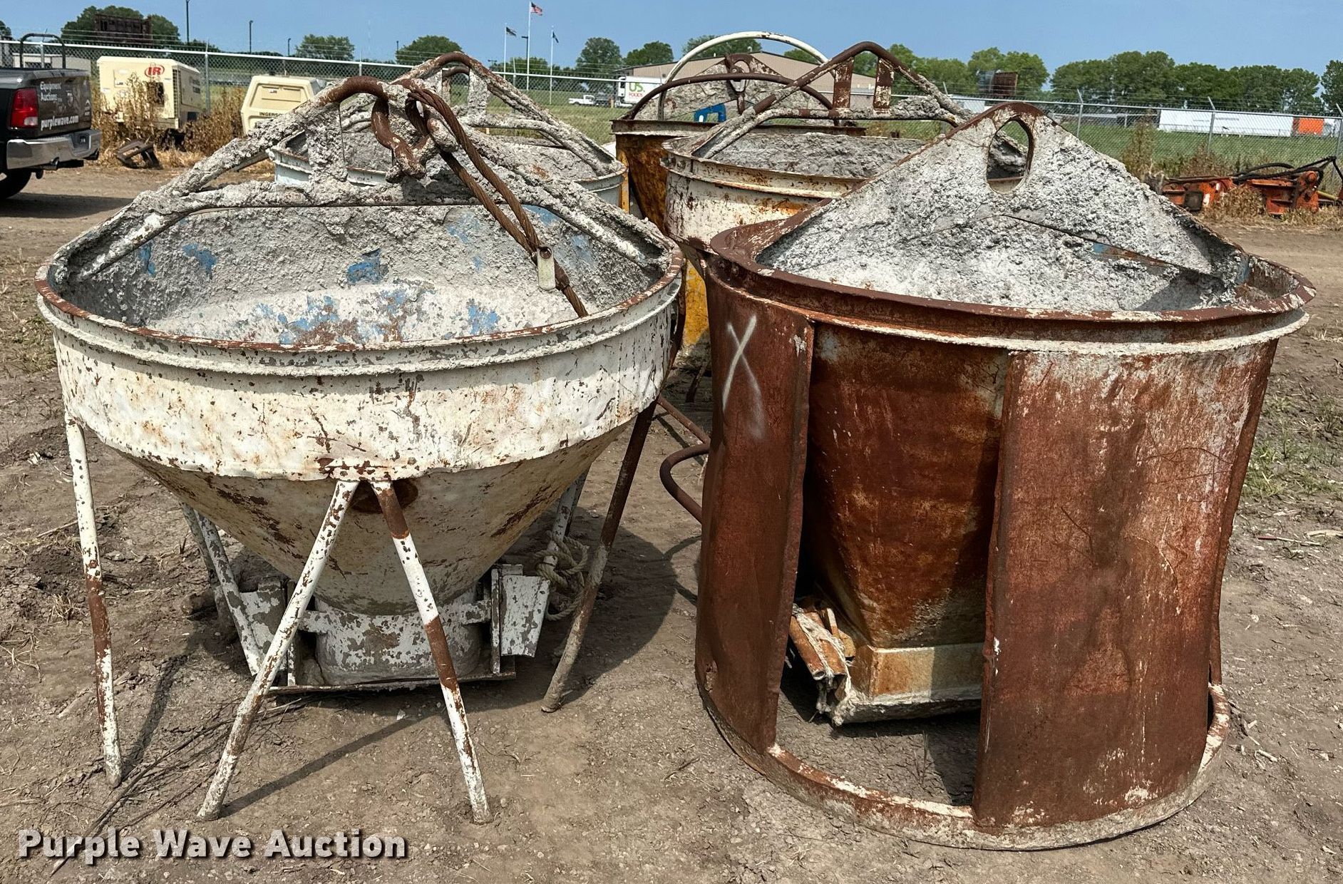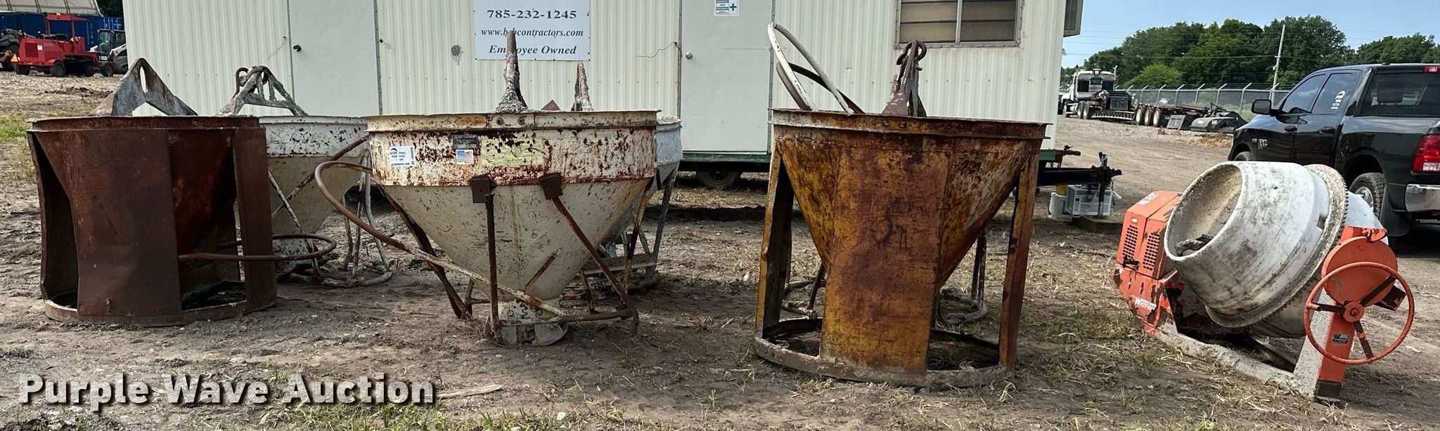 Purple Wave is selling a used Concrete Equip. or Acces. in Kansas. This item is a Concrete equipment with the following: (6) concrete buckets, Concrete mixer, Unknown operating conditions