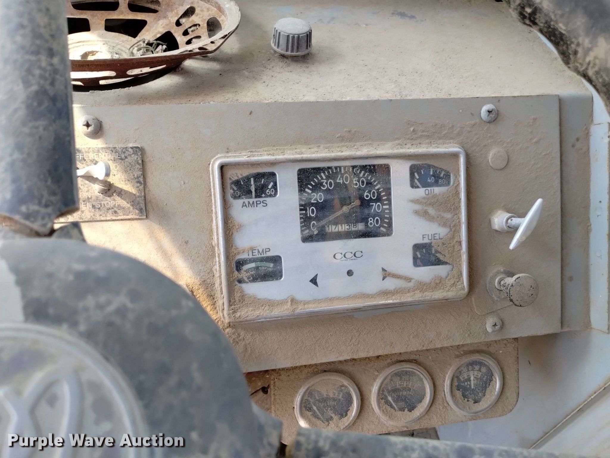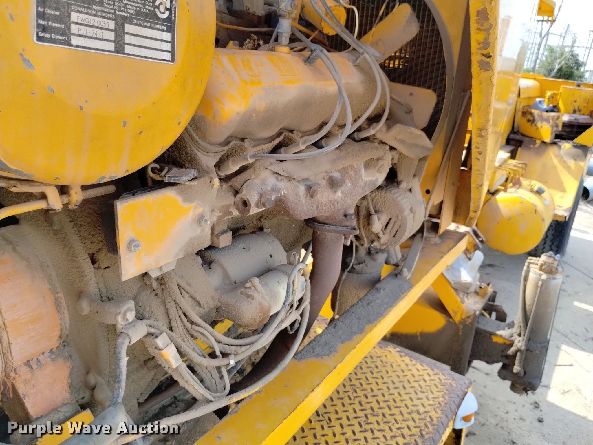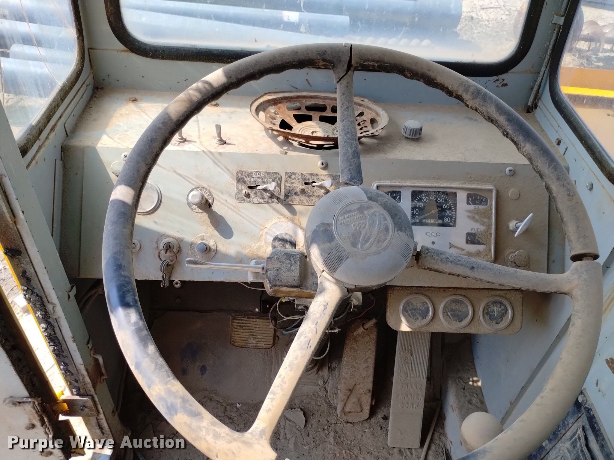 Galion 150T crane. Miles: 17,138 on odometer, Hours: 4,493 on meter, Serial: 266711. Engine Cylinders: 6, Fuel type: Gas. Second engine Cylinders: 8, Fuel type: Gas. Transmission Manual, Speed: 5. Chassis Axles: Tandem, Suspension: Spring, Brakes: Air. Operators station Enclosed cab, Upper interior Crane controls: Stick. Features Boom Telescopic, Maximum boom length: 64' Sections: 3, Maximum lift capacity: 30,000 lbs, Boom controls In-cab, Crane block, Crane ball & hook, Lift chart. Tires Front: 385/65R22.5, Rear: 9.00-20. Notes Glass cracked, No battery , Non-operational unit. Woofter Construction & Irrigation. 1965 Thielen Avenue. Colby, KS 67701