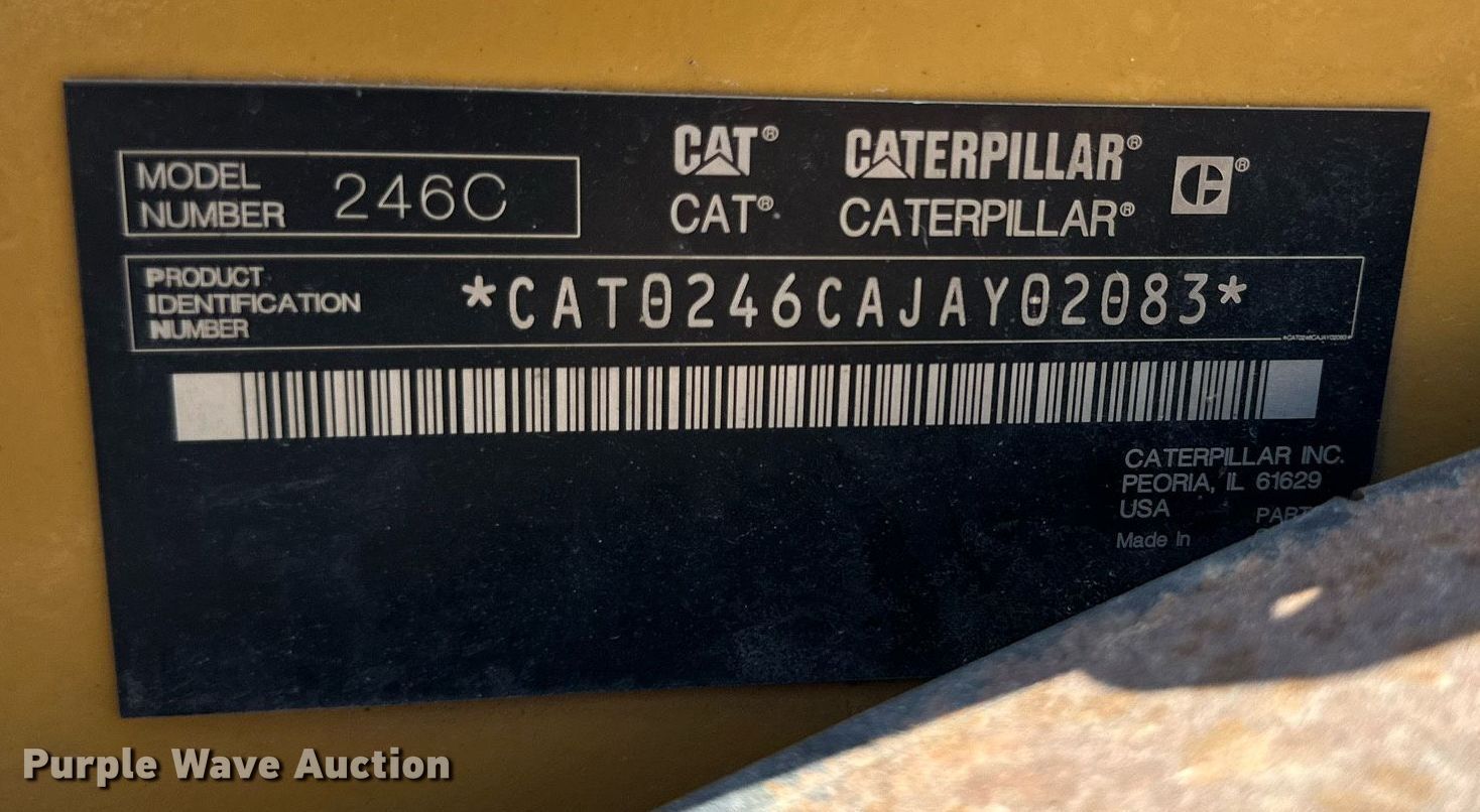 Purple Wave is selling a used Skid Steer Loader in Texas. This item is a 2008 Caterpillar 246C skid steer loader with the following: Hours: 6,020 on meter, Serial: CAT0246CAJAY02083