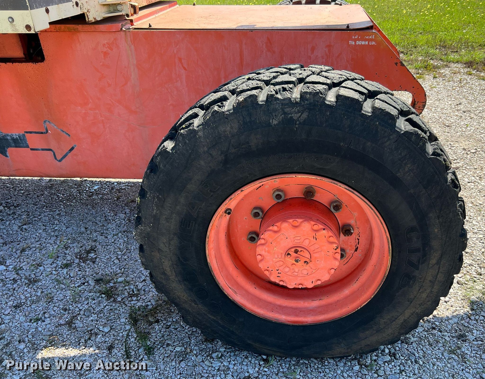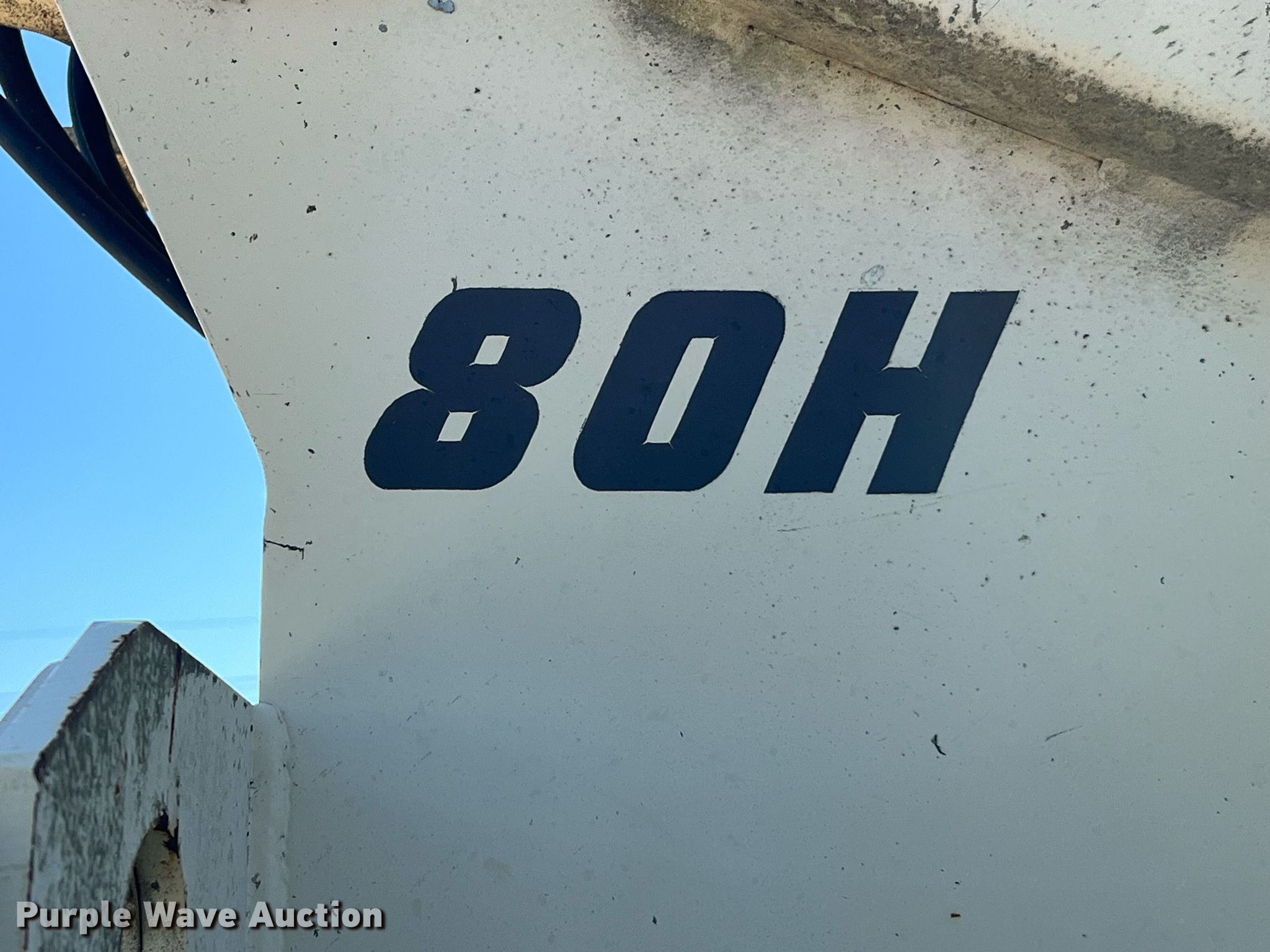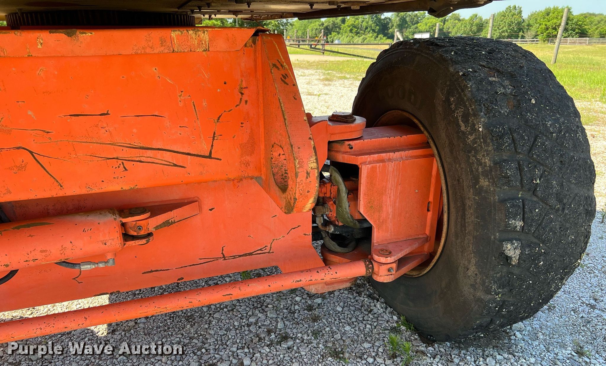 1997 JLG 80H boom lift. Serial: 056751030031768. Engine Deutz, Cylinders: 4, Fuel type: Diesel. Features Articulating boom, Rough terrain, Maximum lift capacity: 1,000 lbs, Platform: 36" L x 96" W, AC power outlet, Controls: Platform, Ground, Platform rotation: Hydraulic. Tires Tire size: 385/65R22.5, Foam filled. Notes Hydraulic leak. 15431 Highway 6. Navasota, TX 77868