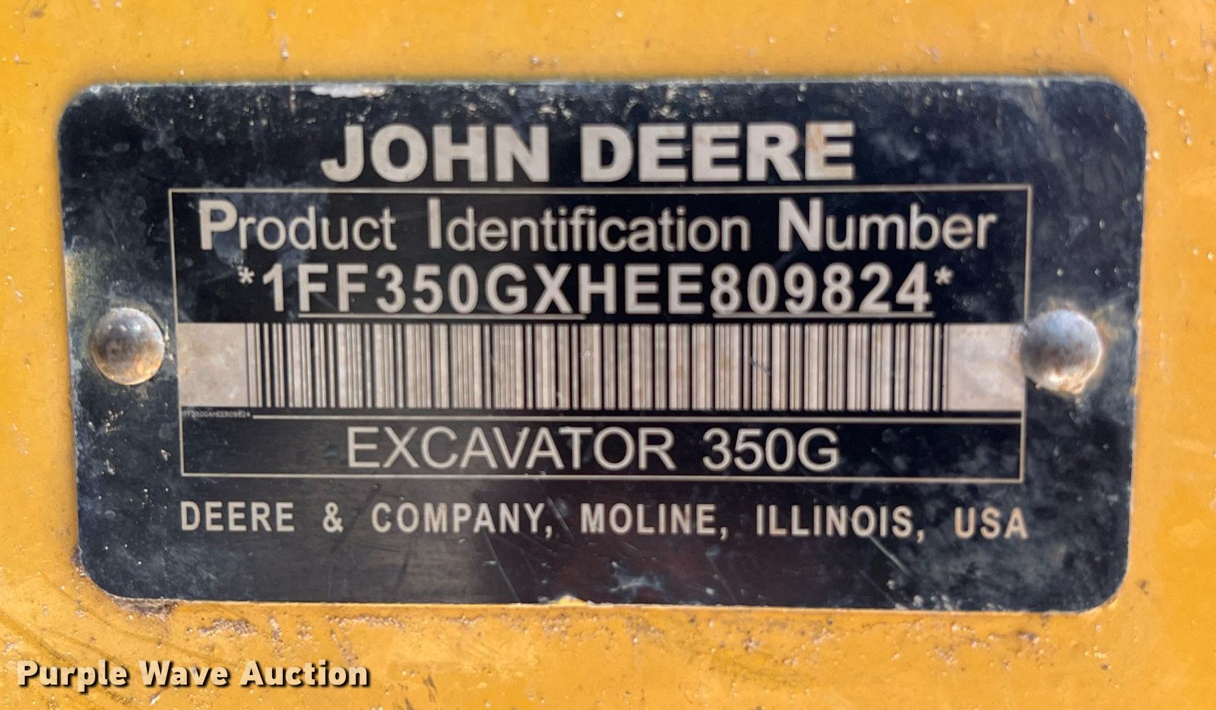 Purple Wave is selling a used Hydraulic Excavator in Texas. This item is a 2014 John Deere 350G LC excavator with the following: Hours: 9,884 on meter, Serial: 1FF350GXHEE809824