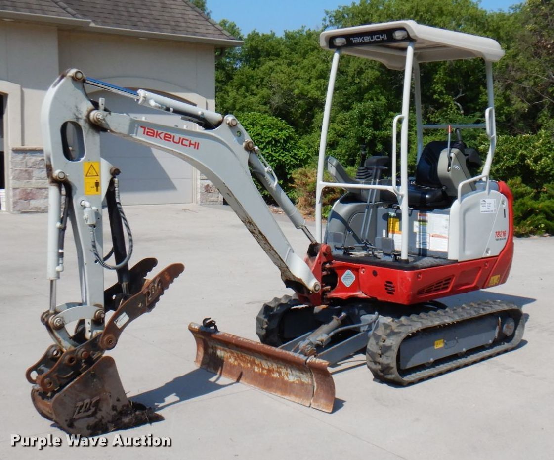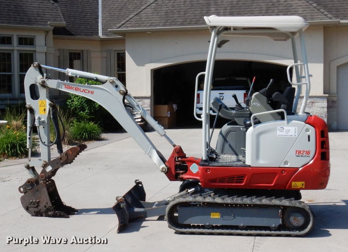 Purple Wave is selling a used Mini Excavator in Minnesota. This item is a 2019 Takeuchi TB216 mini excavator with the following: Hours: 338 on meter, Serial: 216102021