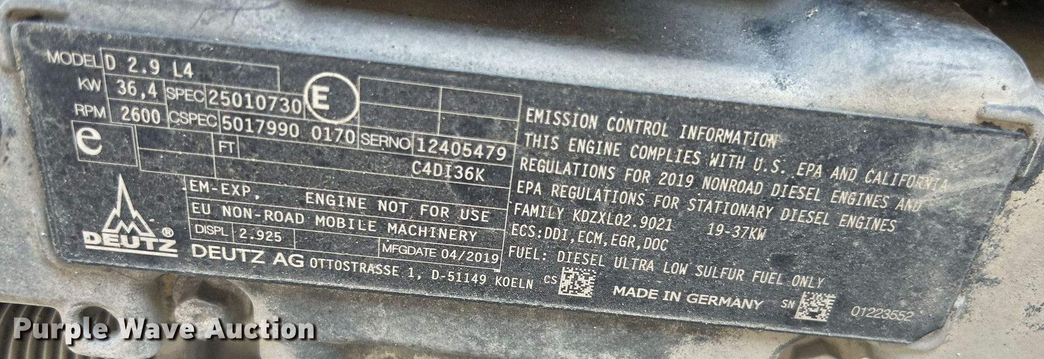 Sullivan-palatek D185UDZW air compressor. Hours: 1,834 on meter, Serial: 20AP000896, Unit #: 217. Engine Deutz D2.9 L4, Cylinders: 4, Fuel type: Diesel. Features Air compressor Sullivan-Palatek 00501170-1258, PSI: 110, Skid mounted. 2118 B Ave. Victor, IA 52347