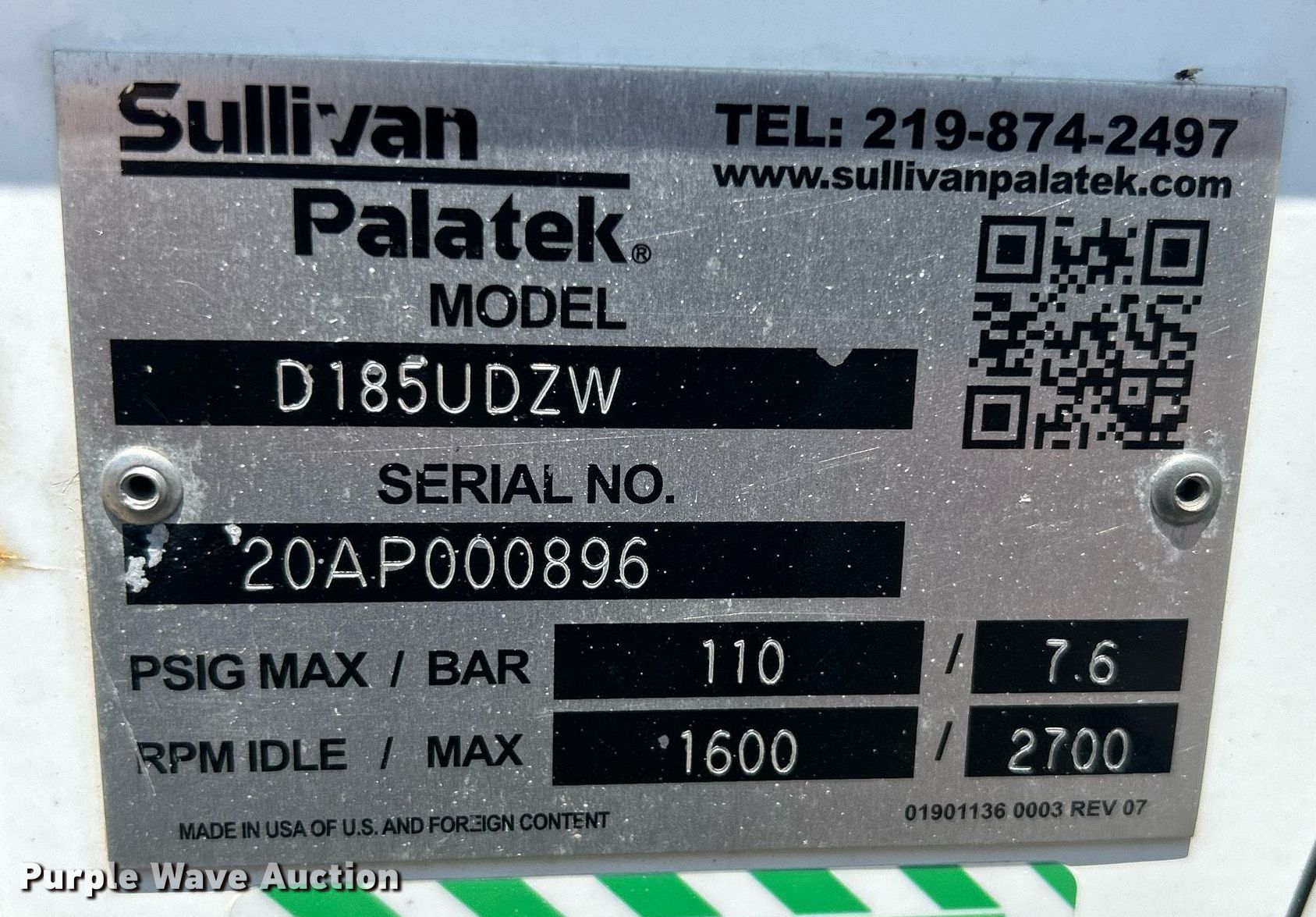 Purple Wave is selling a used Air Compressor in Iowa. This item is a Sullivan-palatek D185UDZW air compressor with the following: Hours: 1,834 on meter, Serial: 20AP000896, Unit #: 217