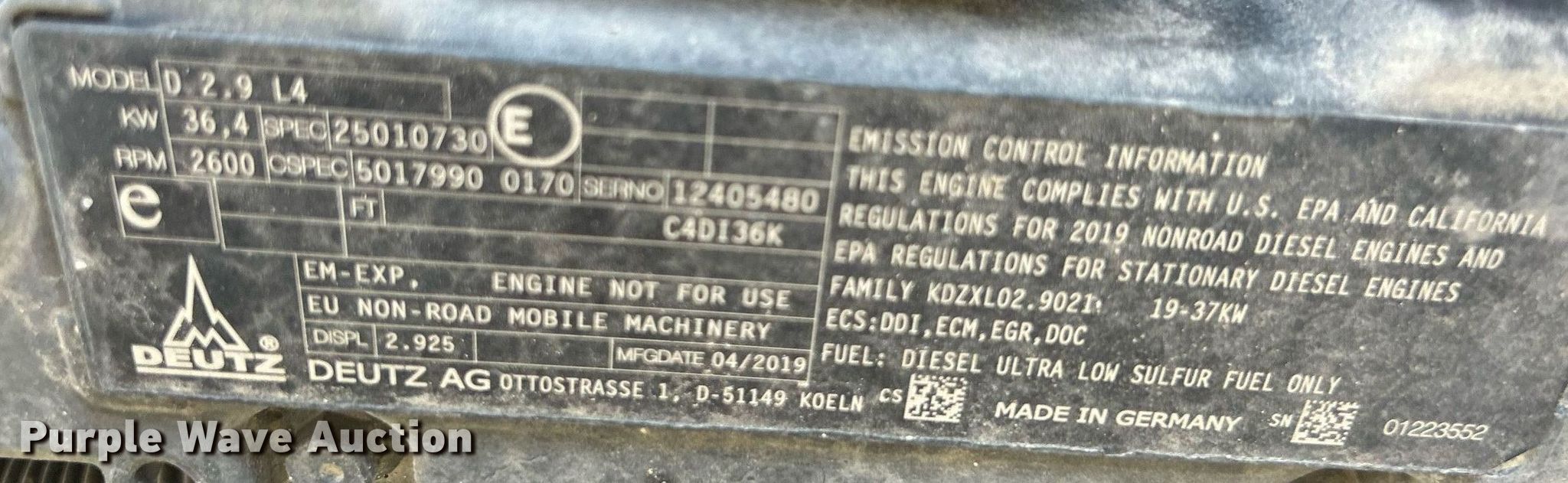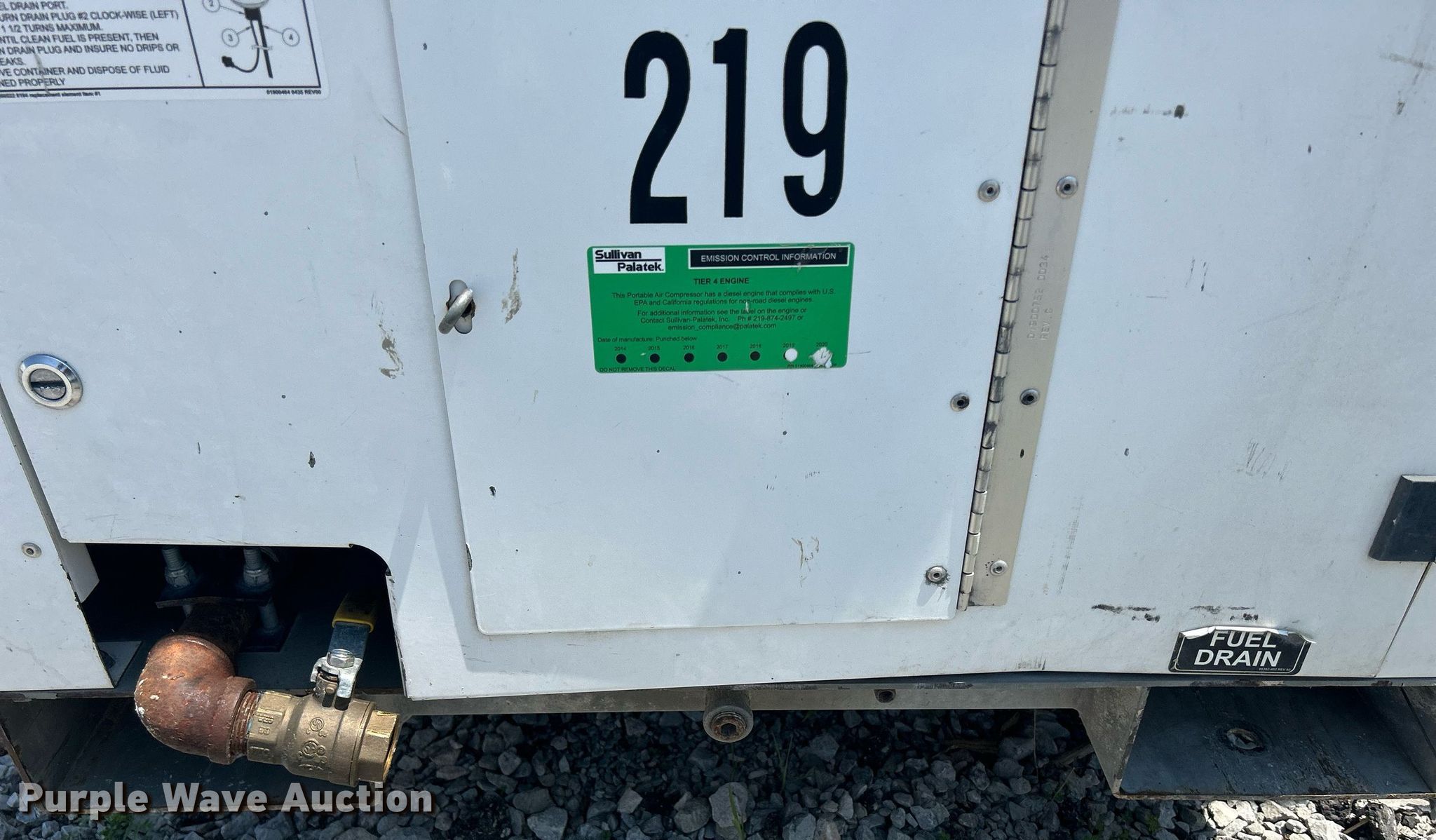 Sullivan-palatek D185UDZ air compressor. Hours: 1,437 on meter, Serial: 20AP000899, Unit #: 219. Engine Deutz D 2.9 L4, Cylinders: 4, Fuel type: Diesel. Features Air compressor Sullivan-Palatek 00501170-1258, PSI: 110, Skid mounted. 2118 B Ave. Victor, IA 52347