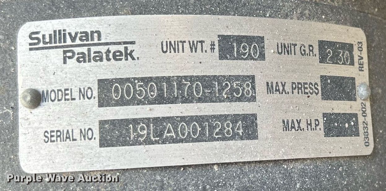 Purple Wave is selling a used Air Compressor in Iowa. This item is a Sullivan-palatek D185UDZ air compressor with the following: Hours: 1,437 on meter, Serial: 20AP000899, Unit #: 219